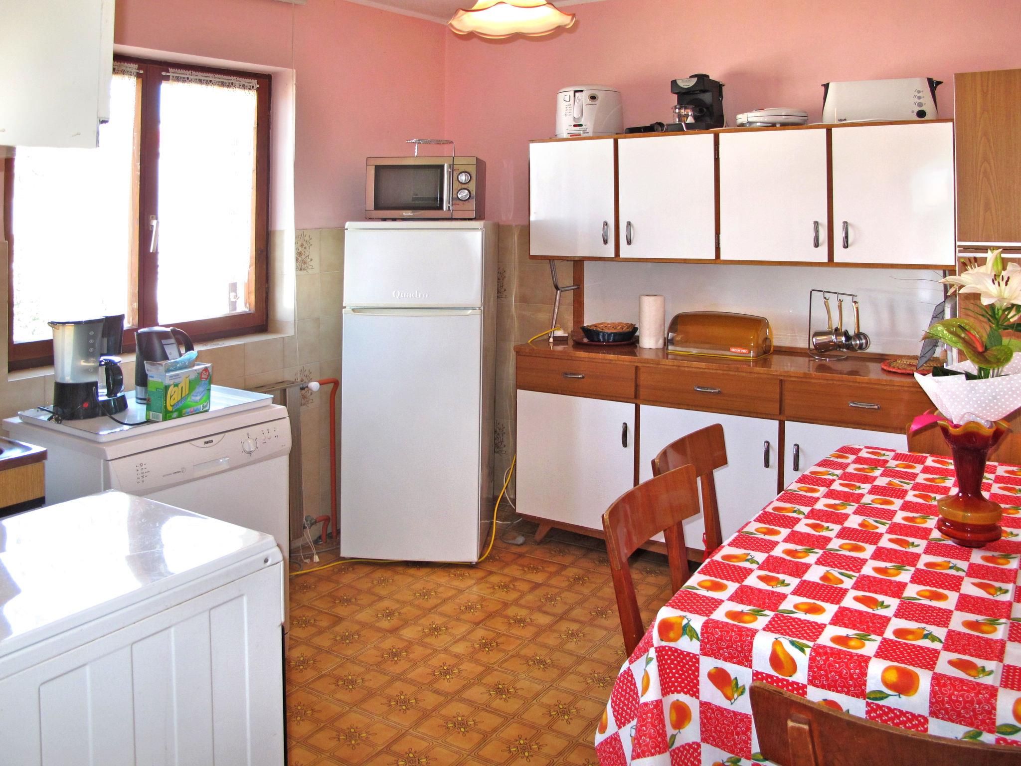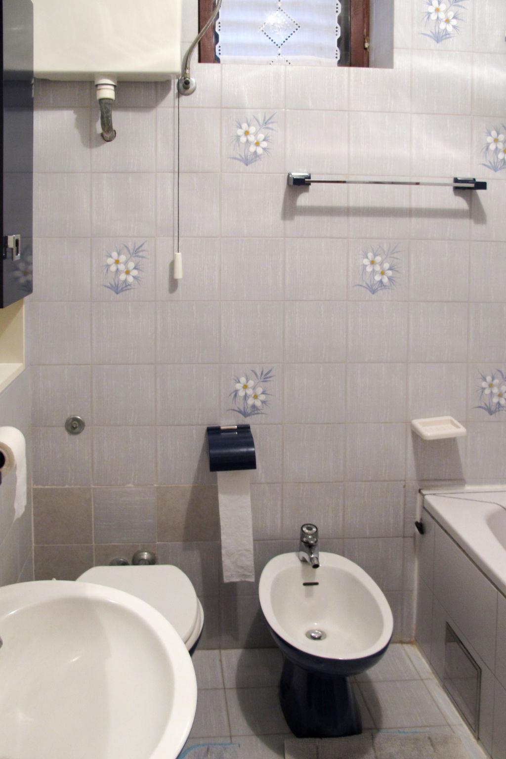 3-room apartment 80 m2 on 2nd floor. Living/dining room with satellite TV and air conditioning. Exit to the balcony. 1 room with 2 beds. 1 room with 1 double beds. Open kitchen (4 hot plates, oven, dishwasher, toaster, kettle, microwave, freezer, electric coffee machine). Bath/bidet/WC. Air-conditioning (extra). No heating option. Balcony 12 m2, terrace 30 m2, roofed. Terrace furniture, balcony furniture, barbecue (portable). Facilities: washing machine. Internet (WiFi, extra). Please note: non-smoking house.