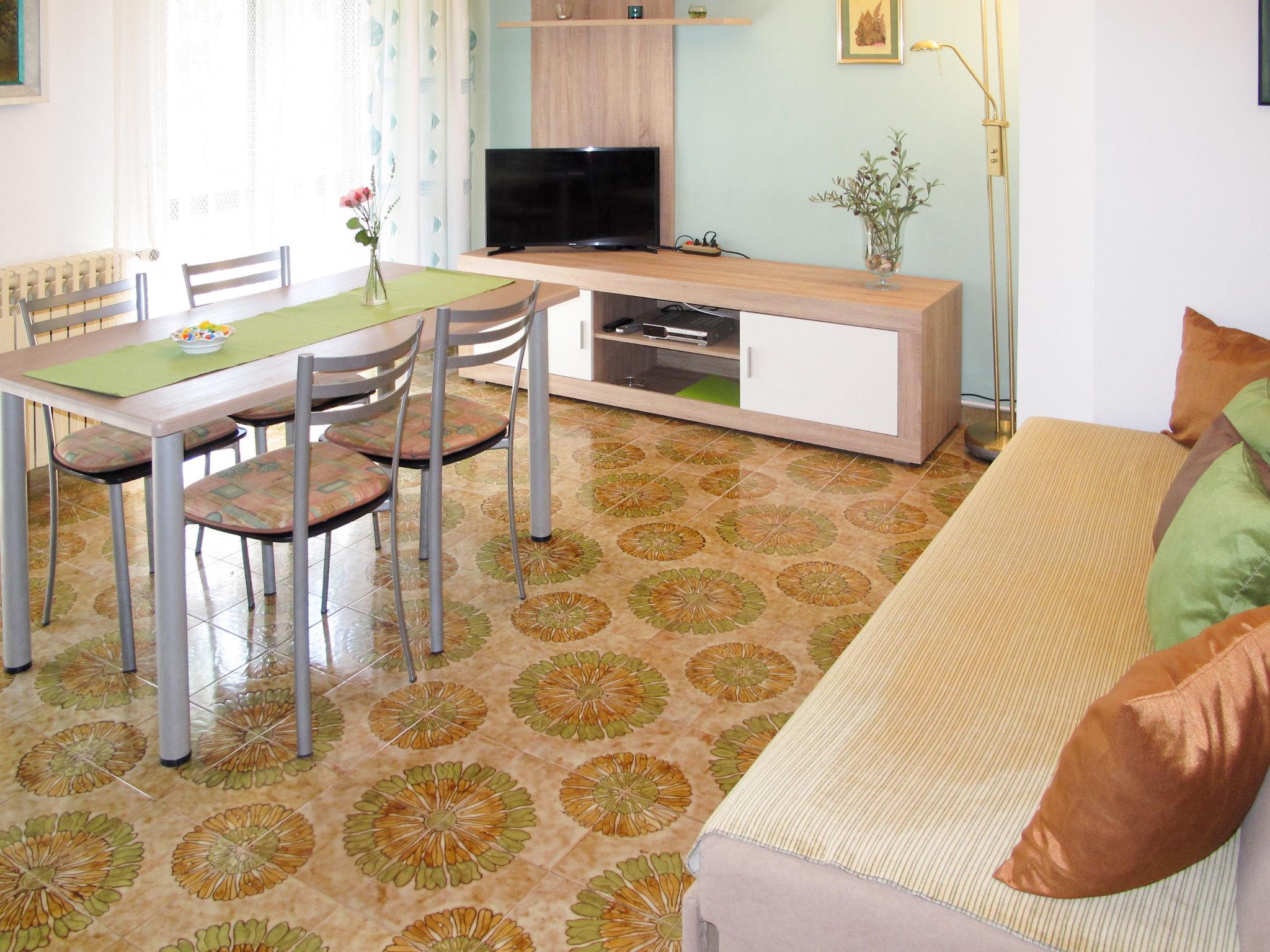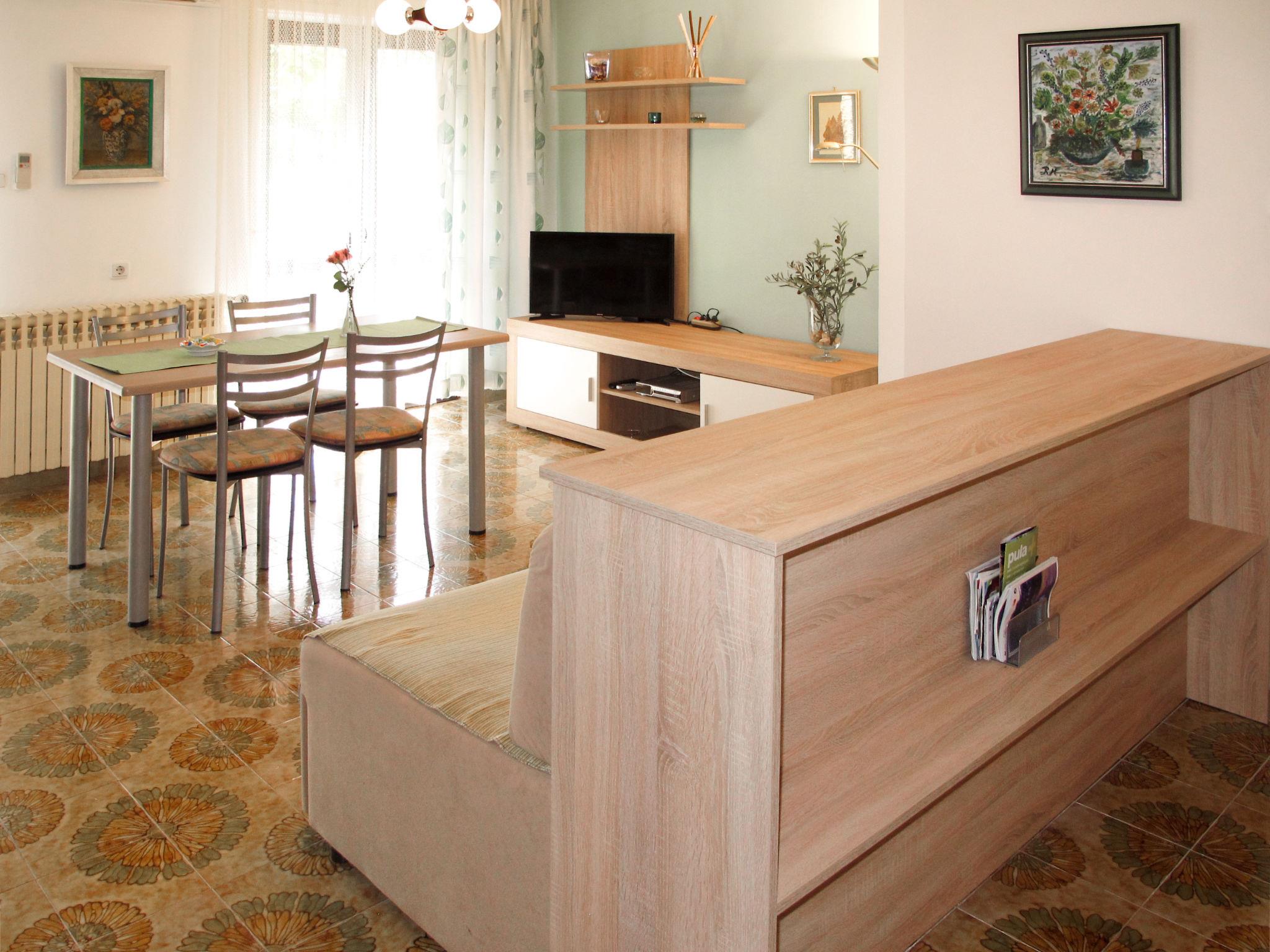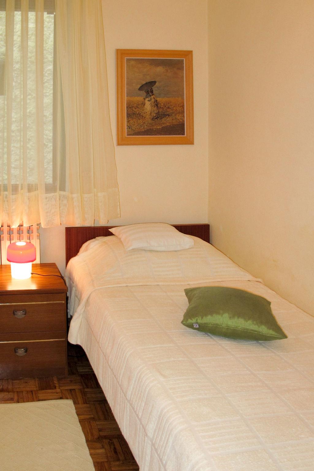 3-room apartment 52 m2, on the ground floor. Living/dining room with 1 double sofabed (160 cm, length 190 cm), satellite TV and air conditioning. Exit to the terrace. 1 room with 1 double bed. 1 room with 1 bed. Open kitchen (1 hot plate, oven, Gas stove, 3 gas rings, toaster, kettle, microwave, freezer, electric coffee machine). Bath/WC. Gas heating, air-conditioning (extra). Terrace 10 m2. Terrace furniture, barbecue (portable), deck chairs (2). Facilities: washing machine, safe. Internet (WiFi, free). Please note: non-smoking house. Private entrance.