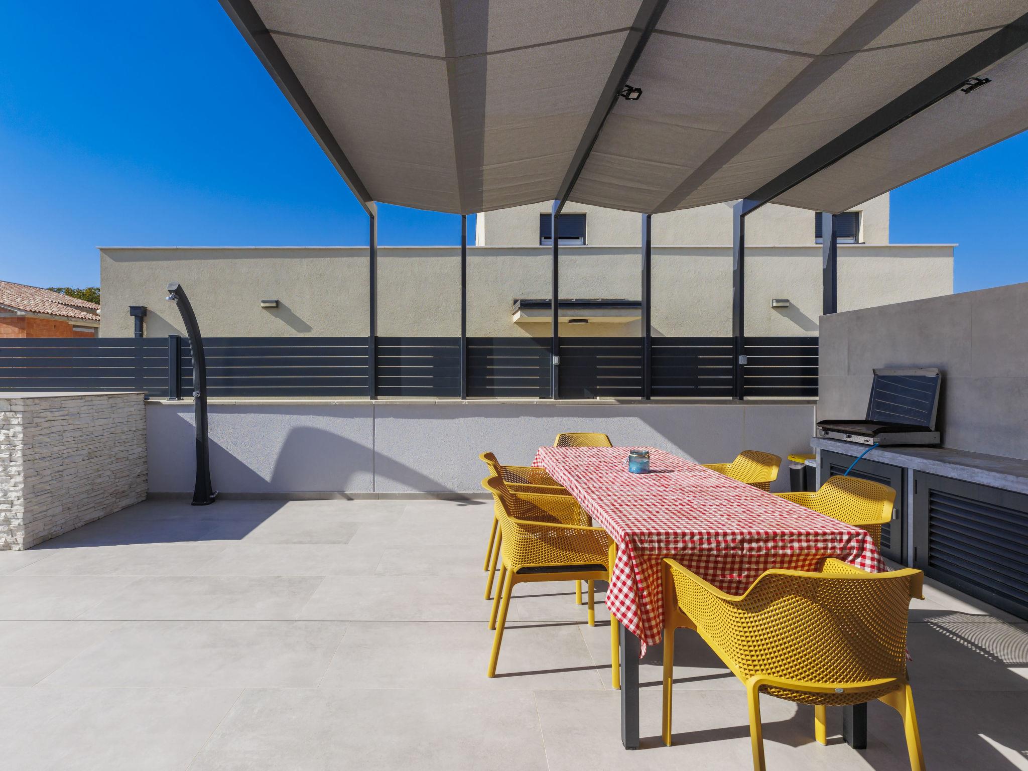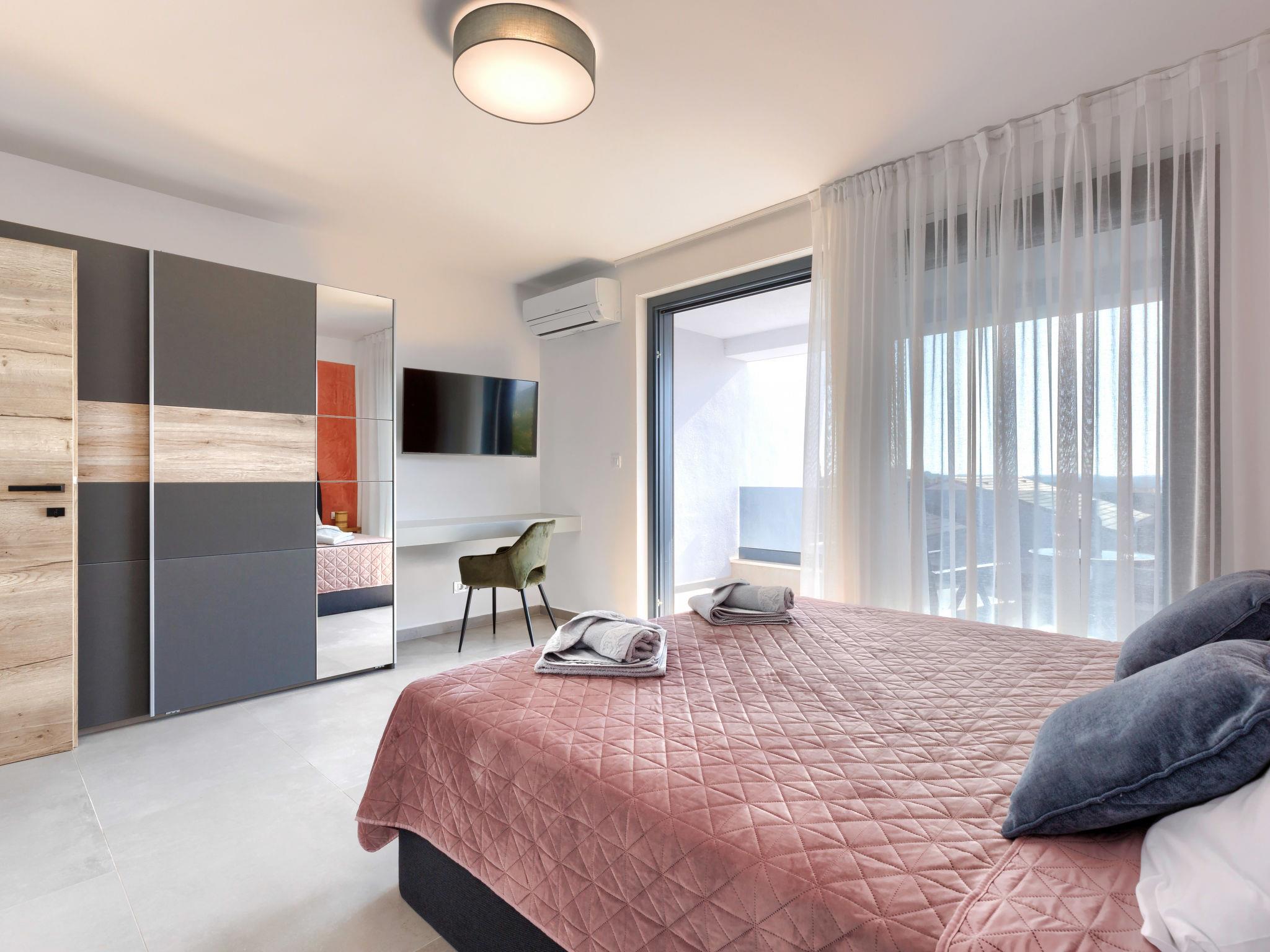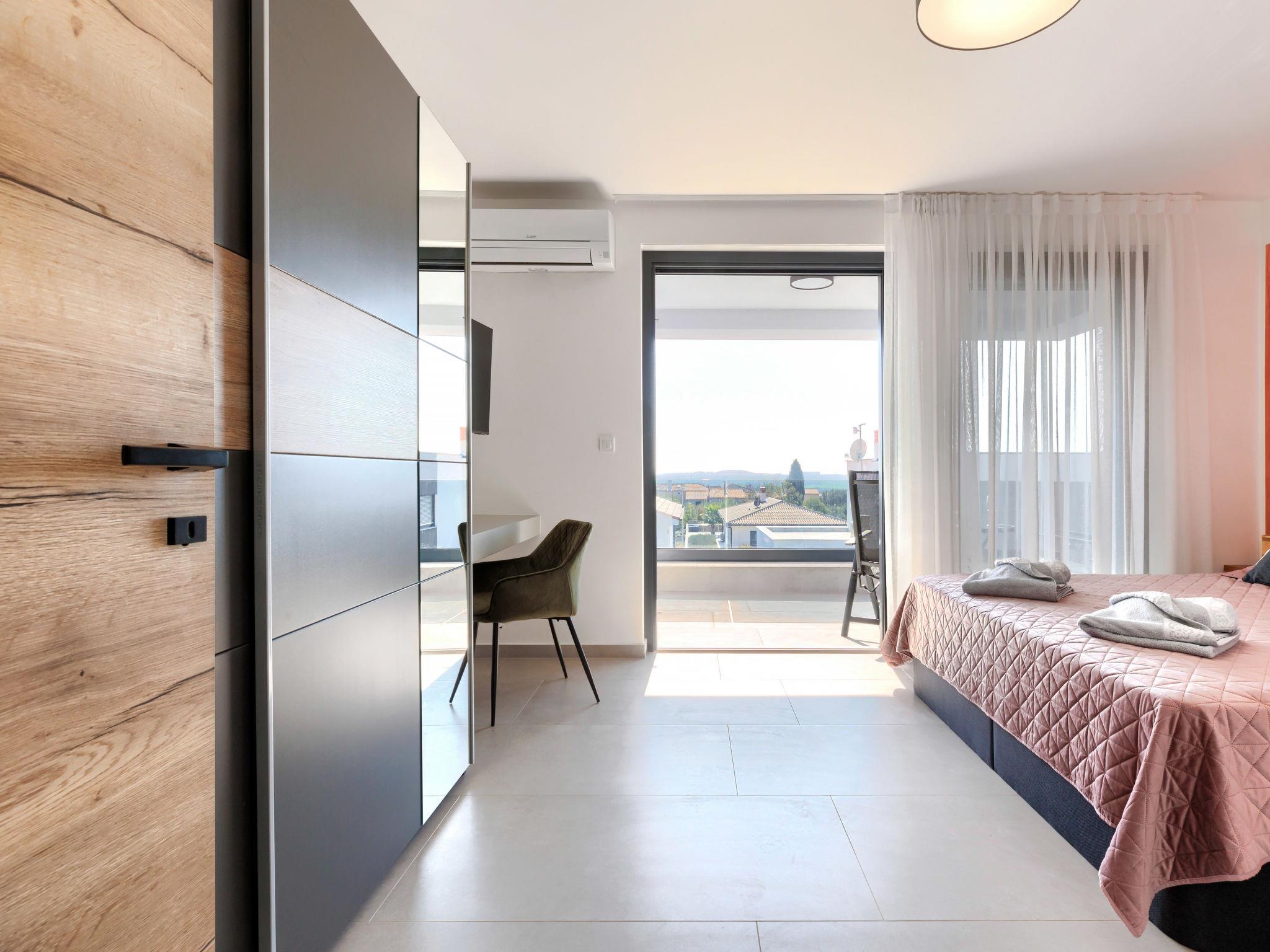Modern, luxurious semi-detached house "Villa MI", 2 storeys. 5 km from the centre of Pula, 5 km from the sea, 5 km from the beach. Private: property 400 m2 (fenced), swimming pool angular (8 x 3 m, 28 m2, depth 135 cm, seasonal availability: 01.Apr. - 01.Nov.) with internal staircase and salt-electrolysis pool-cleaning system. Outdoor shower, hot tub, terrace (20 m2), garden furniture, barbecue. In the house: internet access, air conditioning, washing machine. Parking (for 2 cars) at the house on the premises. Shop 1 km, shopping centre 3 km, restaurant 3 km, bus stop 350 m, pebble beach 5 km, shingle beach 5 km, rocky beach 5 km. The owner does not accept any youth groups. Please note: airfield 5 km from the property.