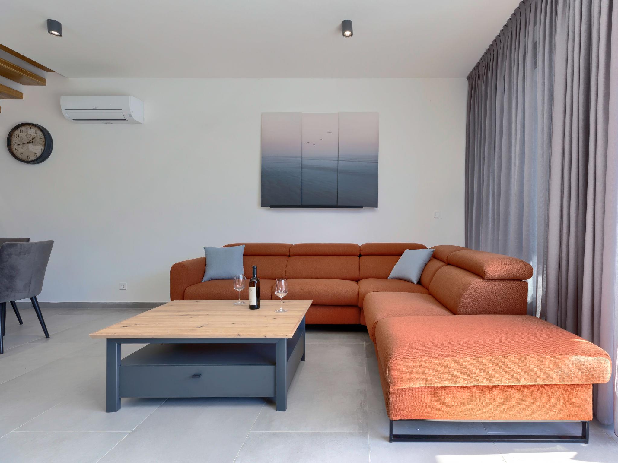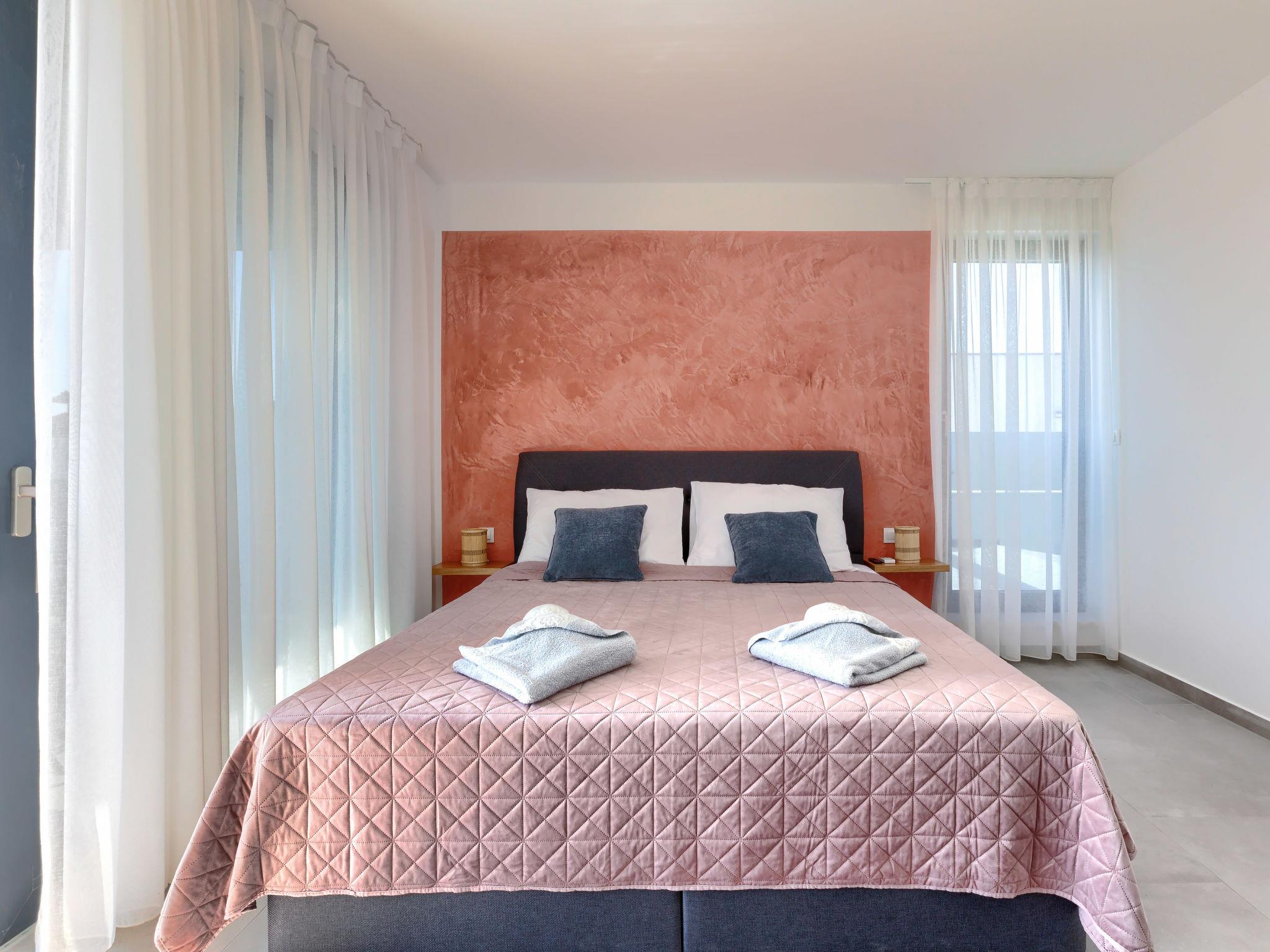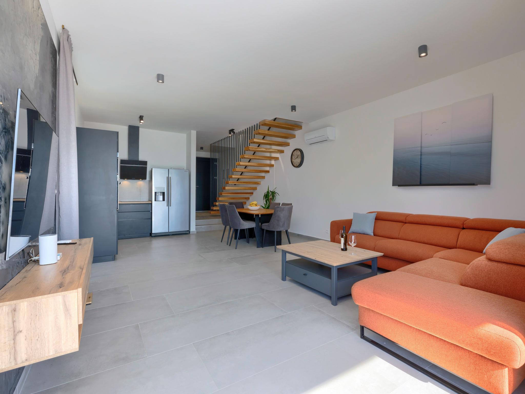 Modern, luxurious semi-detached house "Villa MI", 2 storeys. 5 km from the centre of Pula, 5 km from the sea, 5 km from the beach. Private: property 400 m2 (fenced), swimming pool angular (8 x 3 m, 28 m2, depth 135 cm, seasonal availability: 01.Apr. - 01.Nov.) with internal staircase and salt-electrolysis pool-cleaning system. Outdoor shower, hot tub, terrace (20 m2), garden furniture, barbecue. In the house: internet access, air conditioning, washing machine. Parking (for 2 cars) at the house on the premises. Shop 1 km, shopping centre 3 km, restaurant 3 km, bus stop 350 m, pebble beach 5 km, shingle beach 5 km, rocky beach 5 km. The owner does not accept any youth groups. Please note: airfield 5 km from the property.