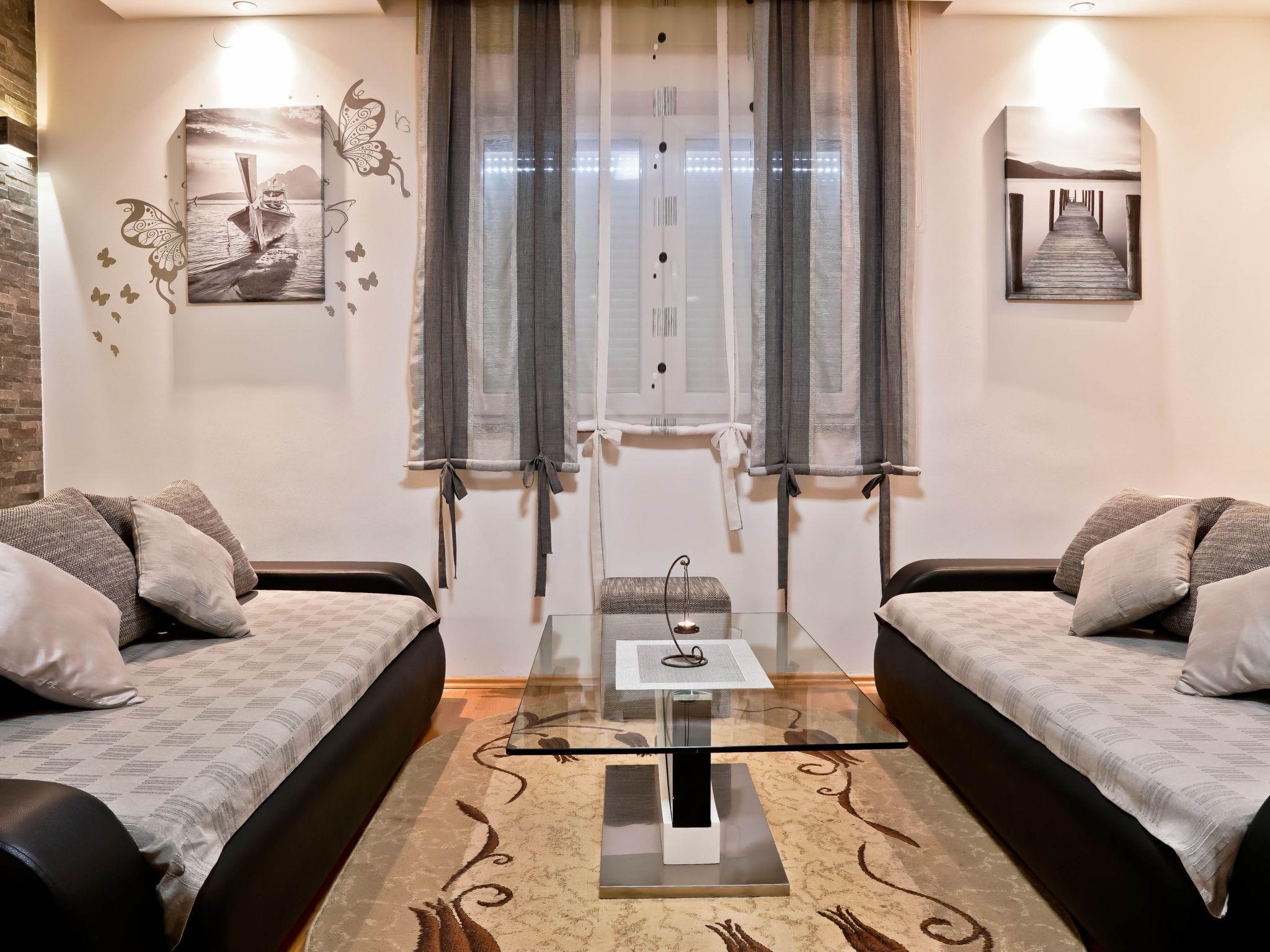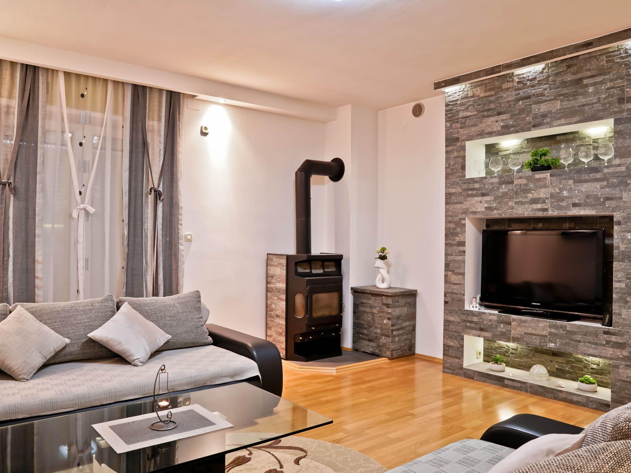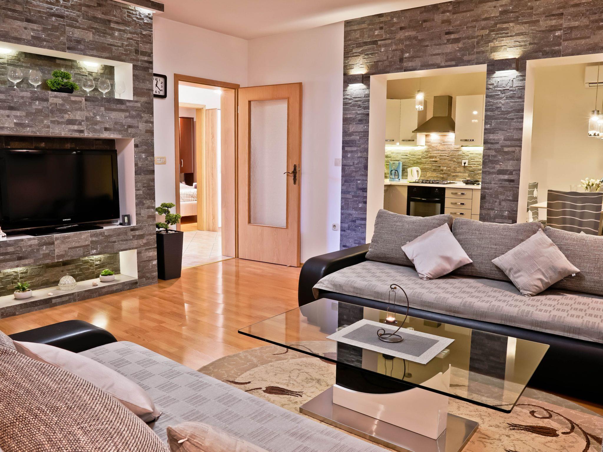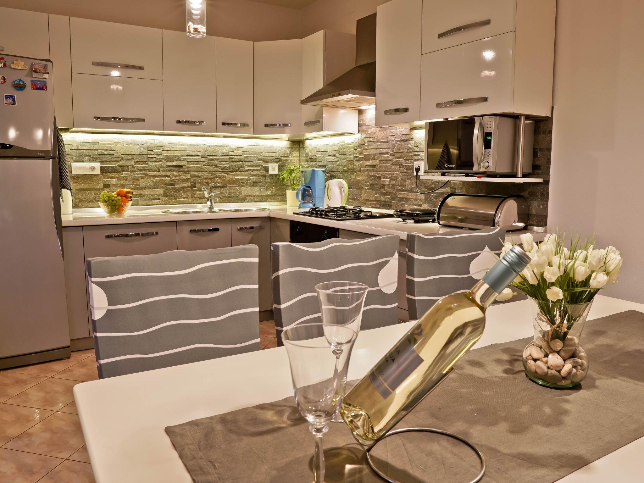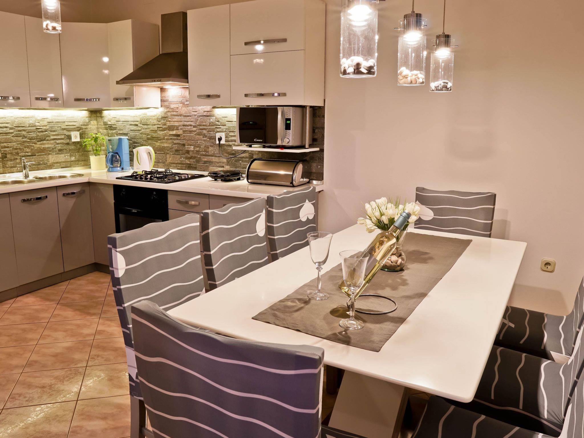 The interior of Apartment Suncica is thoughtfully designed to cater to your every need, ensuring a comfortable and hassle-free stay. Equipped with essential amenities such as air conditioning throughout, a dishwasher for your convenience, and a washing machine for sole use within the property, everything is set up to make your stay as comfortable as possible. With three cozy bedrooms and two bathrooms equipped with showers, the apartment provides ample space and privacy for families or groups of friends. The kitchen is fully fitted with a gas cooker, electric kettle, filter coffee machine, and a dishwasher, making meal preparation a breeze.