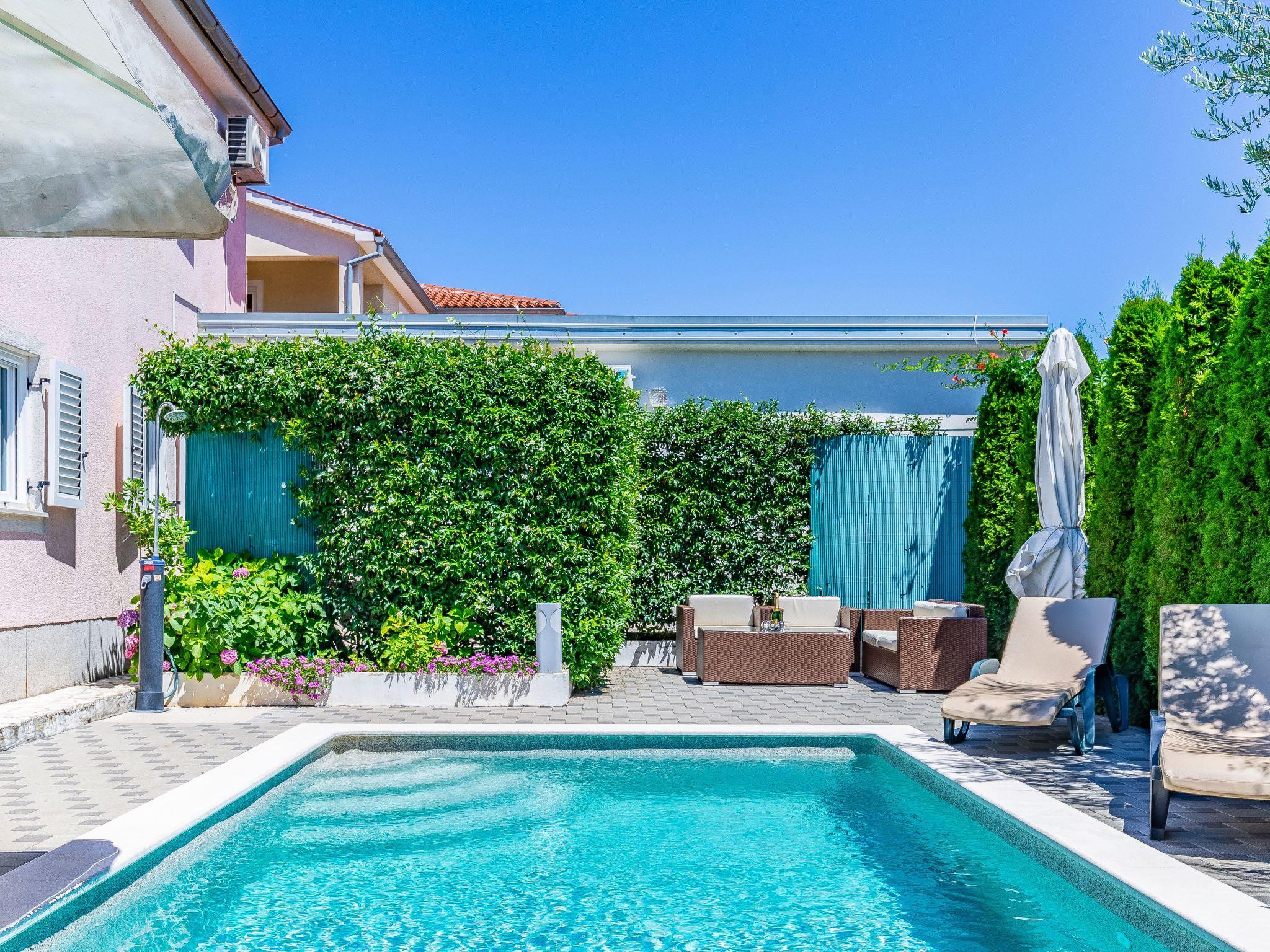 The holiday house is located in a residential area of Stinjan, a quiet suburb of Pula. The nearest beach is only about 700 metres away.