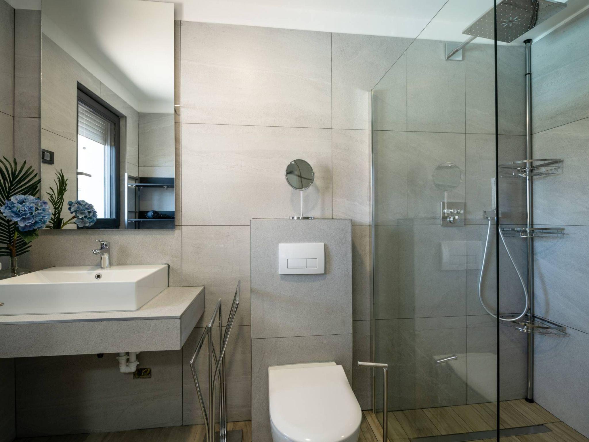 Inside, Villa Speranza offers four bedrooms, each with a double bed, private bathroom, and air conditioning. An additional separate toilet is also provided. The living room includes a sofa bed for two guests, while the fully equipped kitchen and dining area contain everything needed for a comfortable and enjoyable stay.