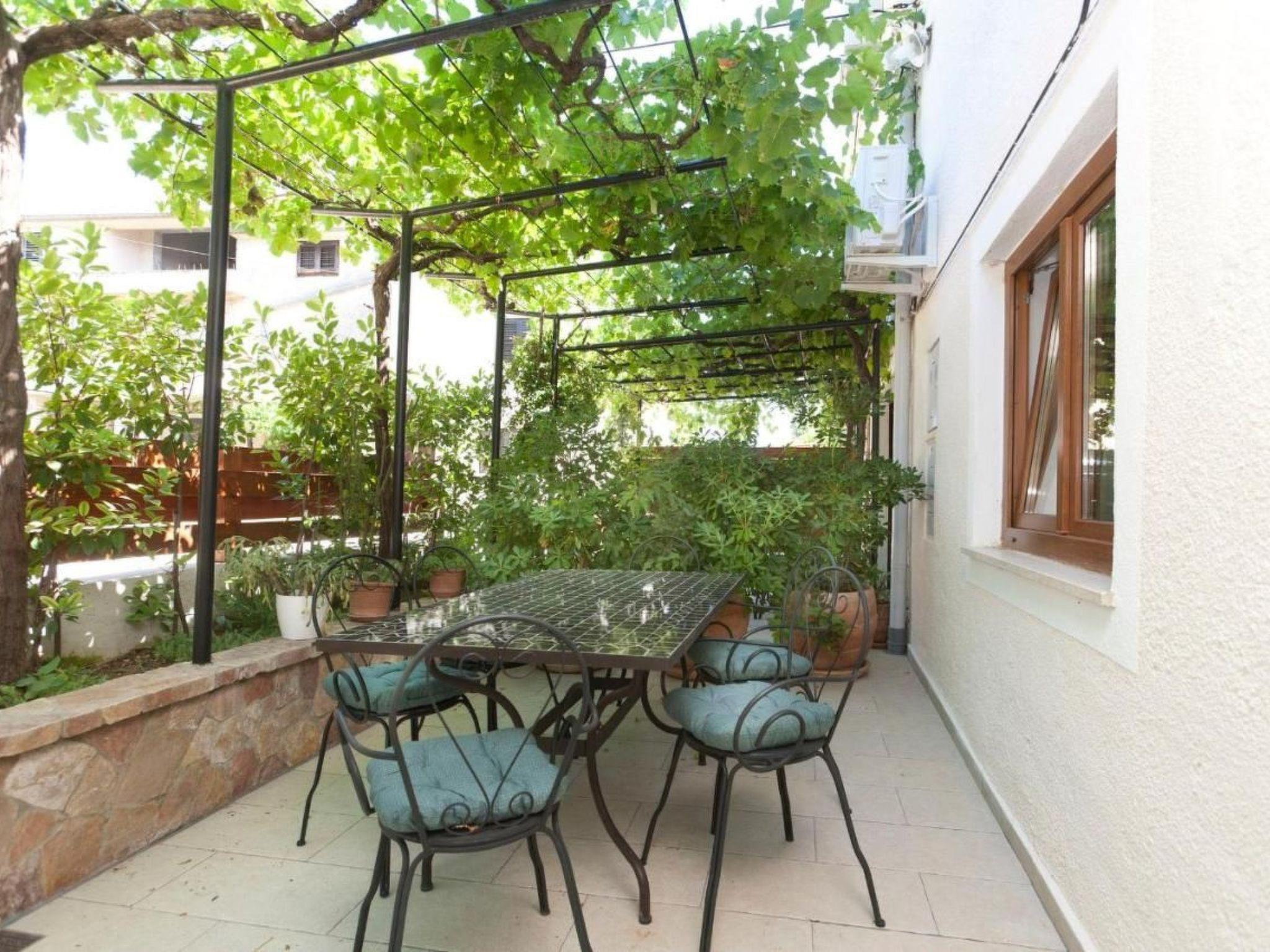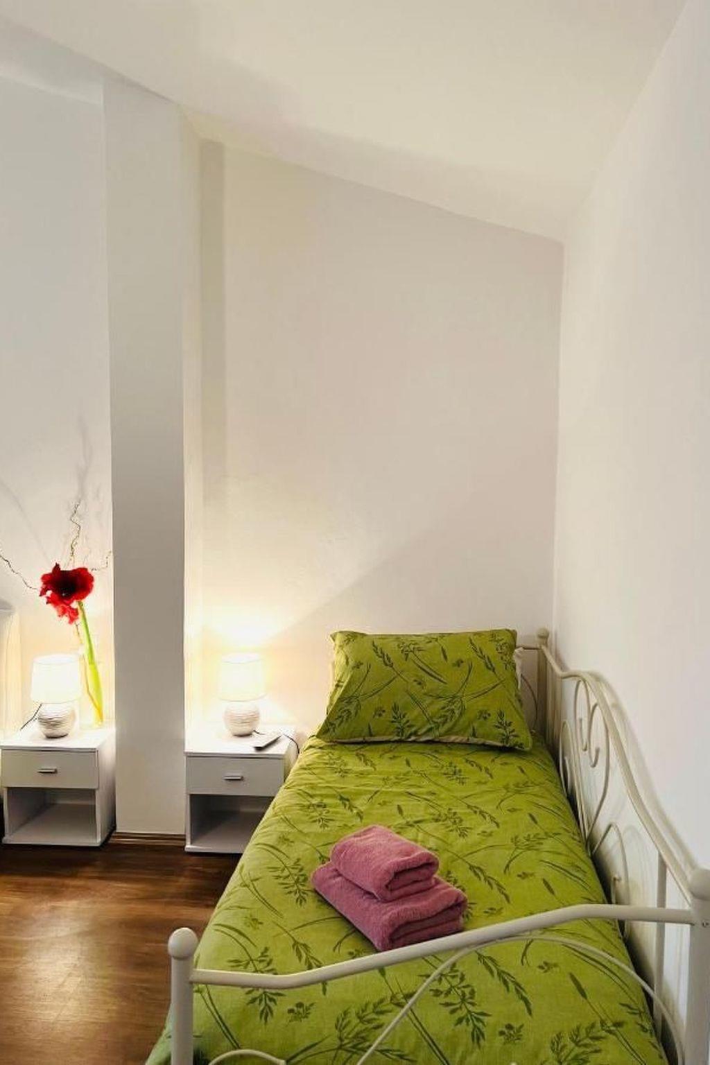 This 2-bedroom apartment with a surface of 90 m2 on the ground floor of a holiday house has its private terrace with garden furniture. A spacious yard of 600 m2 with a pool, a children's corner with swings and a slide is shared with two other apartments in the same house. Fenced yard and private parking provide privacy and security. It is excellently equipped for a carefree and comfortable holiday. The washing machine, dryer, and iron are conveniently located in the shared area. The outdoor grill is shared with guests from the other two apartments.