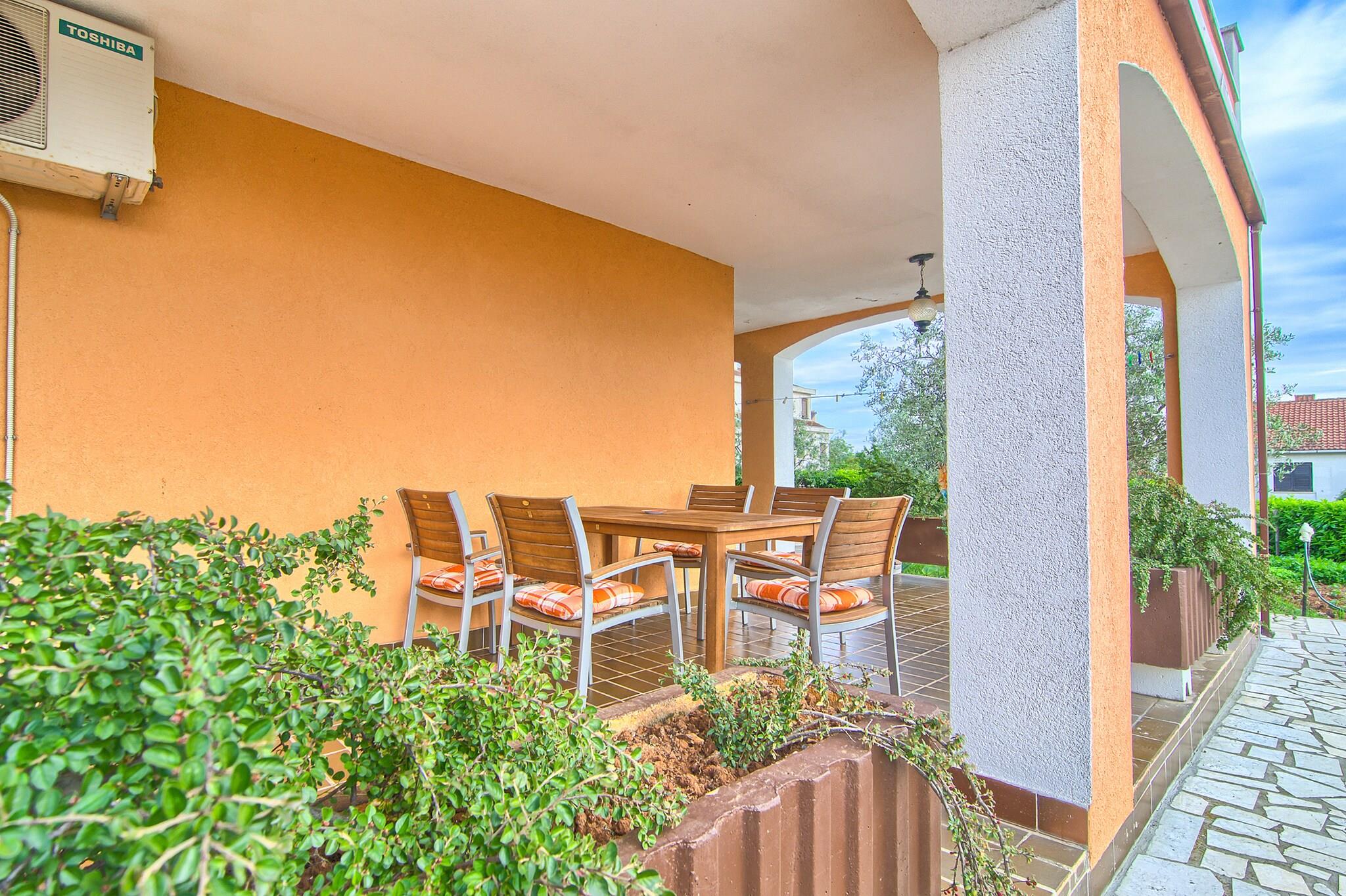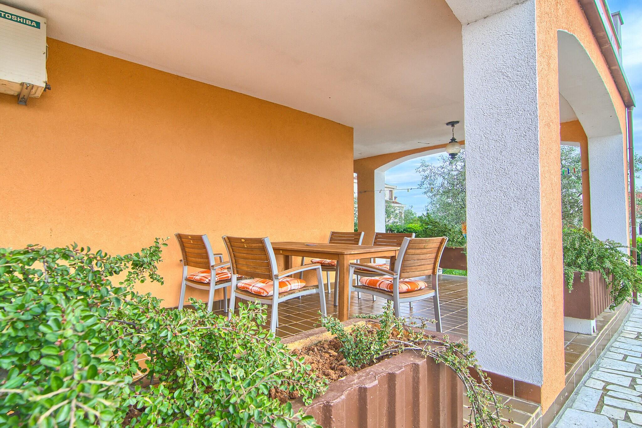 Stueetage: (Stue(dobbeltsovesofa, Fjernsyn(fladskærm, parabol), spisebord, sofahjørne), Køkken(elkedel, komfur, kaffemaskine, ovn, mikrobølgeovn, køle-fryseskab), soveværelse(dobbeltseng(200 x 160 cm)), soveværelse(dobbeltseng(200 x 160 cm)), badeværelse(bruser, håndvask, toilet, vaskemaskine), terrasse(privat)) bruser(deles med andre gæster, udendørs), vaskemaskine, klimaanlæg, terrasse(deles med andre gæster), have(deles med andre gæster), havemøbler, solstole, grill(deles med andre gæster), parkering, Parasol, swimmingpool(deles med andre gæster, 6 x 4 m.), bordtennisbord, bordfodbold, loungemøbler