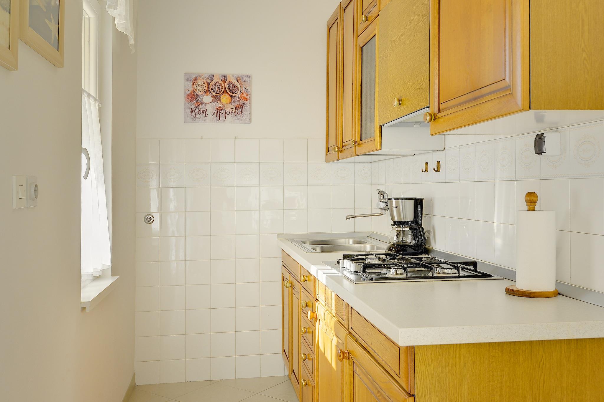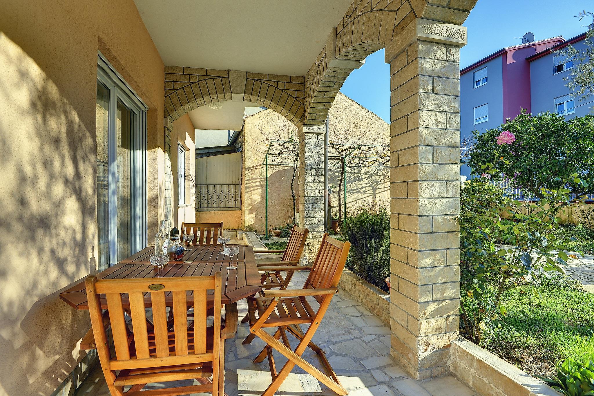 Denne lejlighed i Pula ligger i stueetagen. Det tilbyder en smuk overdækket terrasse, en pæn stue med opholdsområde og spisebord, køkken, to soveværelser og et badeværelse. Du har en fælles lukket have til din rådighed, dejligt, hvis du medbringer dit kæledyr på ferie og en privat parkeringsplads.