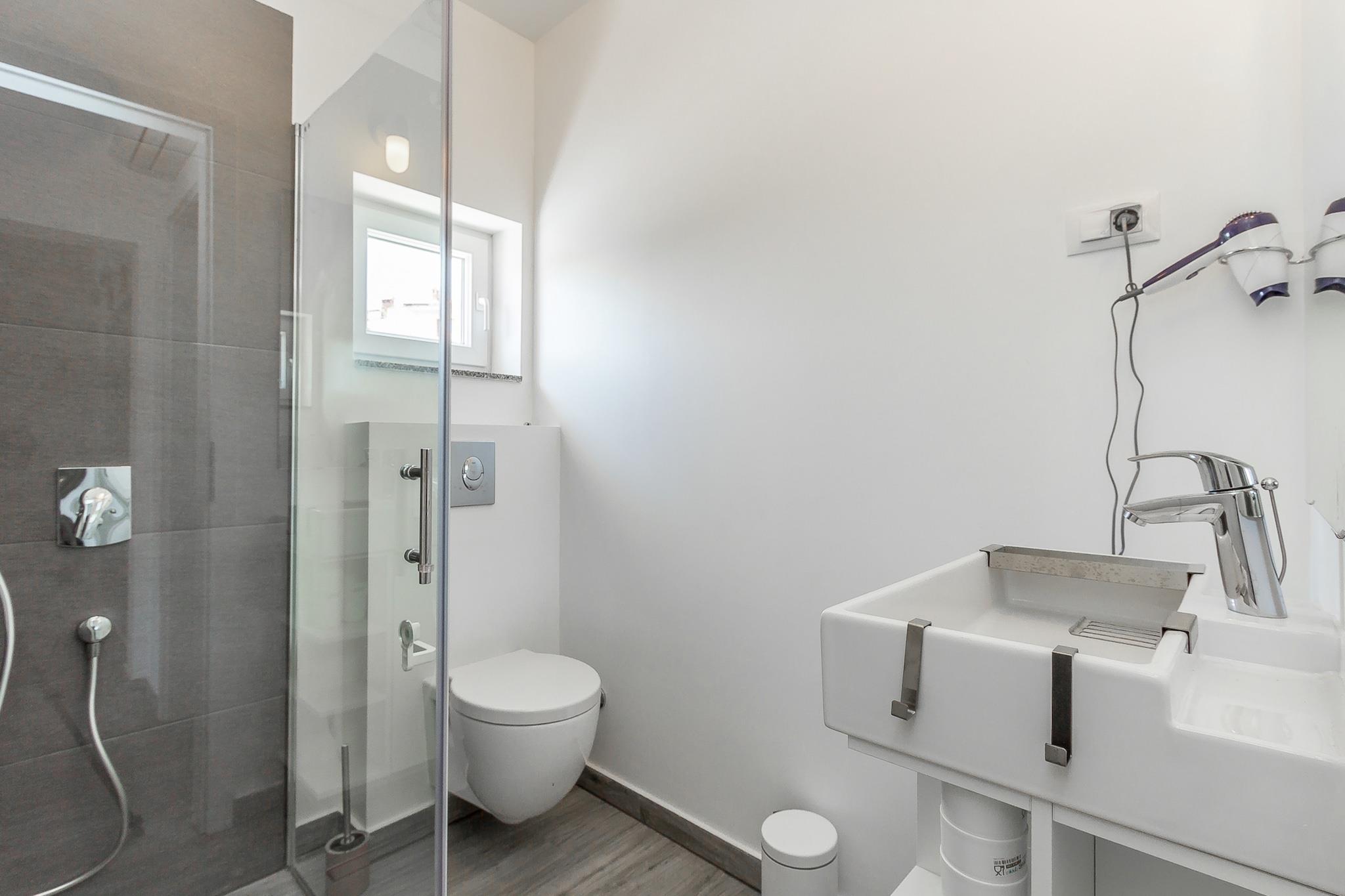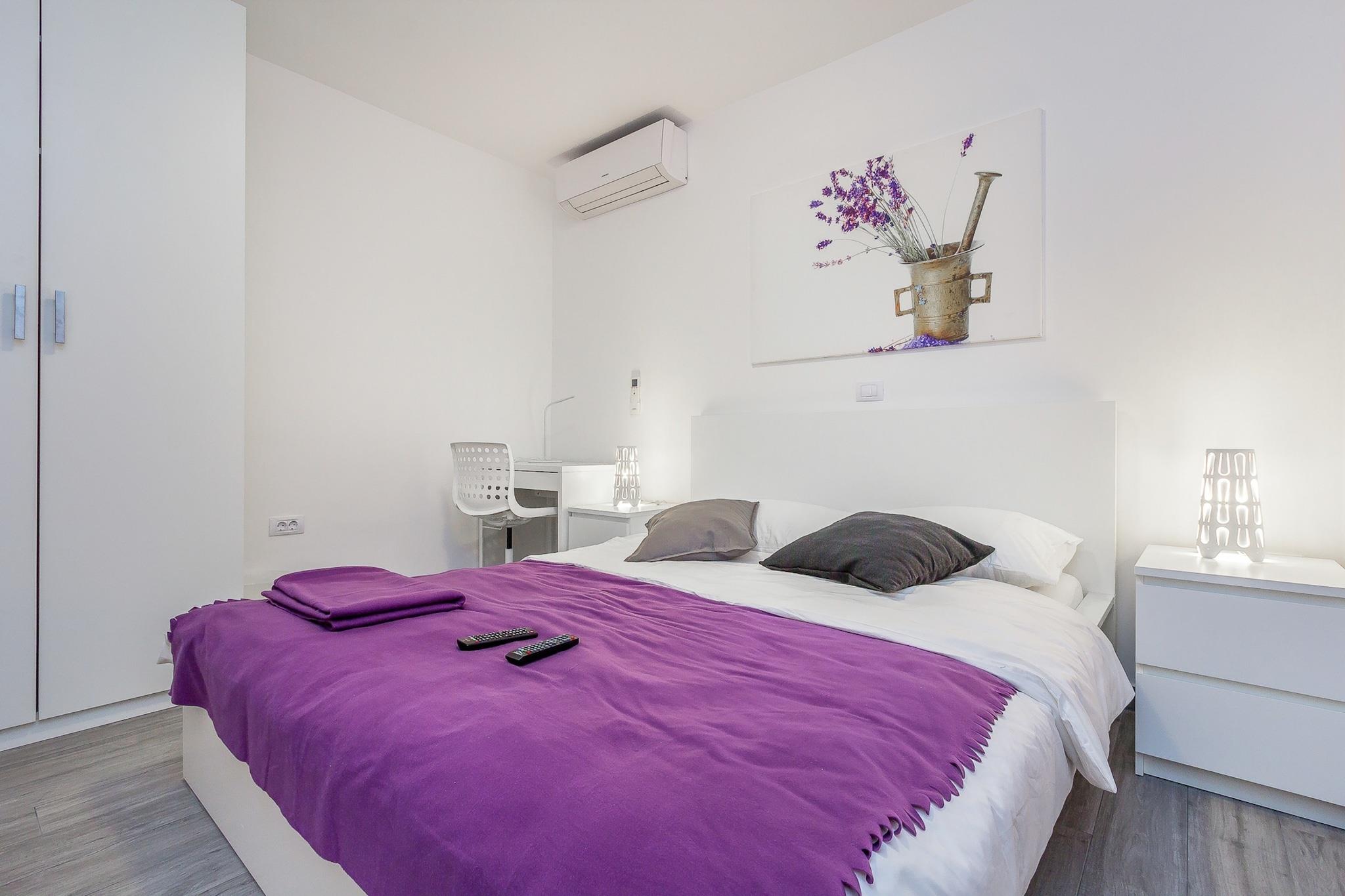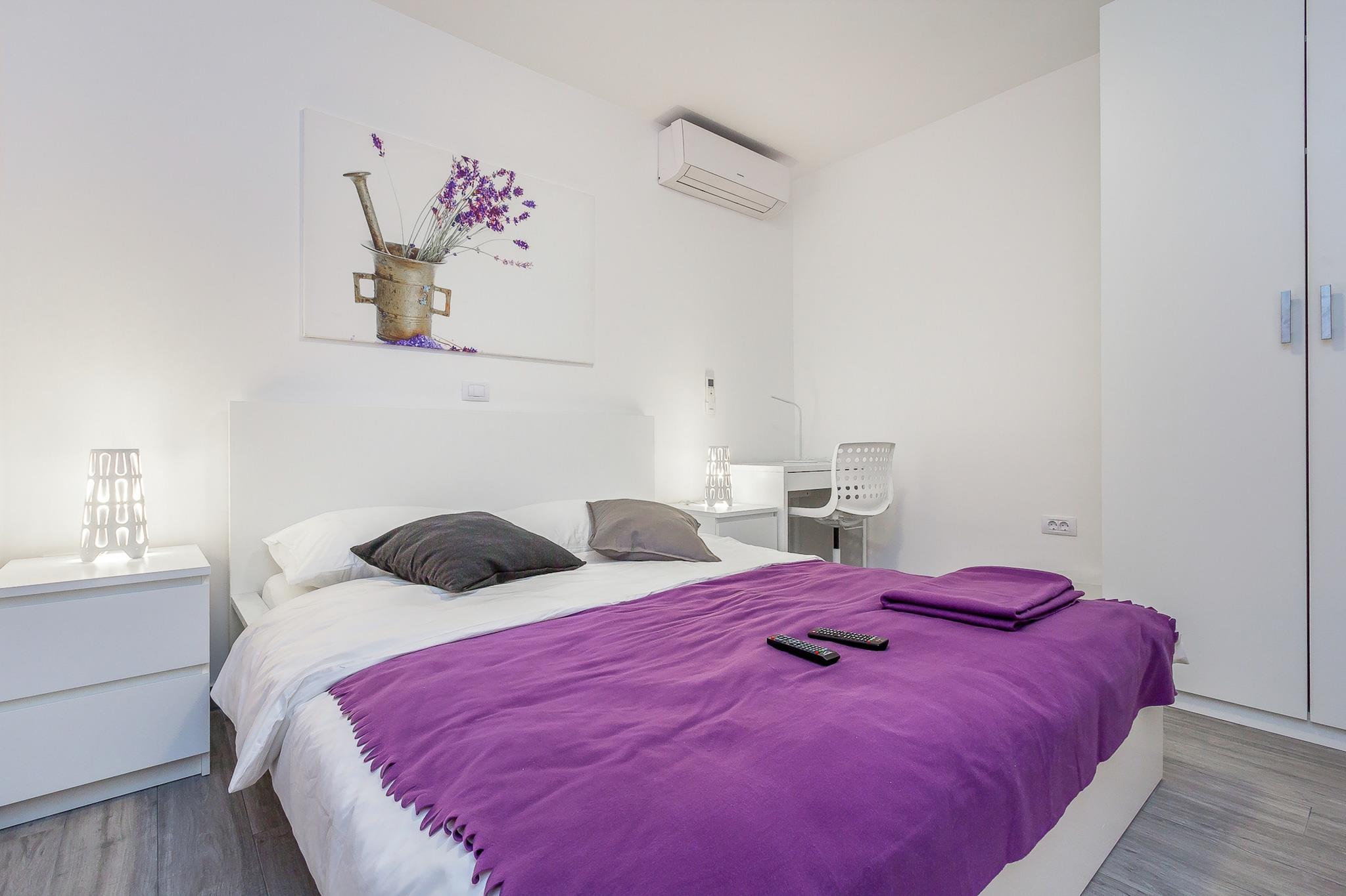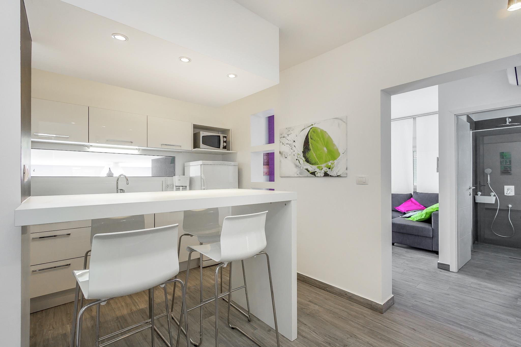 Casa Moderna i Pula ligger kun tre kilometer fra byens centrum. Dette moderne hus med swimmingpool tilbyder indkvartering til op til fire personer. Med en specielt formet swimmingpool, som er helt omgivet af en mur for at sikre en ubekymret ferie uden nysgerrige øjne, har gæsterne også adgang til et separat værelse med træningsudstyr og et legerum til børn. Huset er indrettet i stueetagen, og alle værelser er flisebelagt. Dette moderne hus i Pula skiller sig ud, takket være det dristige design med lige linjer og slående farverige detaljer, såsom de attraktive, bløde liggestole ved poolen.