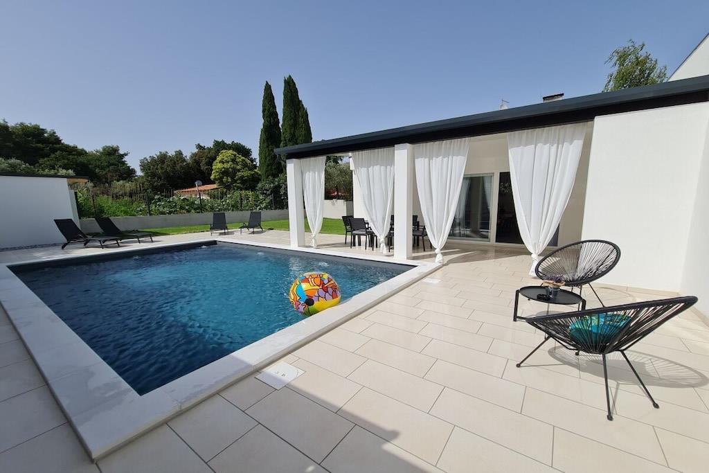 Villa Insieme II har to moderne soveværelser med kingsize-senge, begge med eget badeværelse. Stuen og køkkenet åbner ud til en terrasse med pool og frodig have. Der er tre private parkeringspladser foran huset. Afstanden til Pula centrum er 4,5 km, og stranden er 1,8 km.