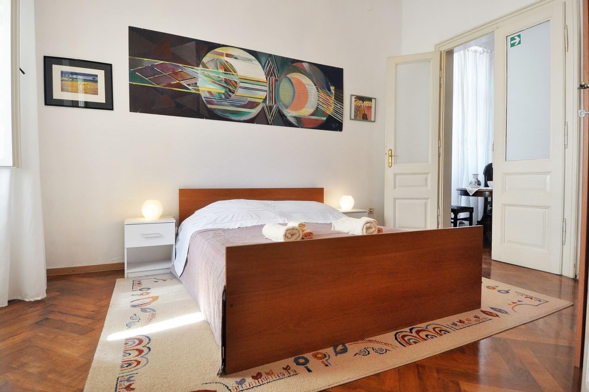 Denne hyggelige lejlighed i hjertet af Pula tilbyder 2 soveværelser og kan komfortabelt rumme op til 6 gæster. Ejendommen strækker sig over 105 m² og tilbyder et fuldt udstyret køkken med både gas- og elektriske apparater, herunder køleskab, mikroovn, ovn, fryser og opvaskemaskine. Yderligere faciliteter omfatter aircondition, Wi-Fi, vaskemaskine, strygejern og balkon. Lejligheden har også et tv med satellitkanaler (engelsksprogede muligheder), hvilket gør det til et fantastisk sted at slappe af efter en dag med at udforske byen. Beliggende i en charmerende zone, er lejligheden ideelt placeret i centrum af Pula, med adskillige bekvemmeligheder i nærheden. Busstationen ligger kun 50 meter væk, og restauranten ligger kun 100 meter fra ejendommen, og der er nem adgang til lokale spisesteder. Supermarkeder og en togstation ligger inden for 300 meter, hvilket sikrer, at gæsterne har alt, hvad de har brug for inden for gåafstand. For strandelskere ligger klippestranden "Valkane" kun 2 km væk, og sandstranden "Bijeca" ligger 7 km fra lejligheden. Derudover ligger Pula Lufthavn 7 km væk, hvilket sikrer bekvem adgang for rejsende. Det uafhængige køkken er veludstyret til at tilberede måltider og inkluderer et komplet udvalg af køkkenudstyr, herunder tallerkener, skåle og redskaber. Gæsterne kan nyde en række faciliteter, herunder en kaffemaskine, brødrister og kedel, som tilbyder alt det nødvendige for et ophold med egen forplejning. Med sin centrale beliggenhed og komfortable faciliteter tilbyder denne lejlighed den perfekte balance mellem bekvemmelighed og afslapning til dit ophold i Pula.