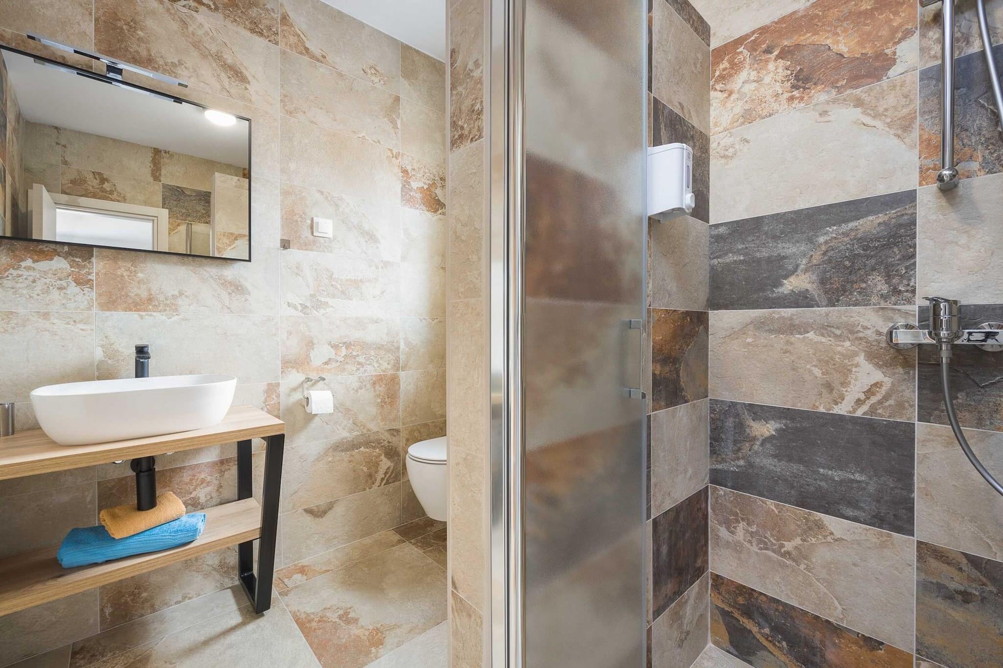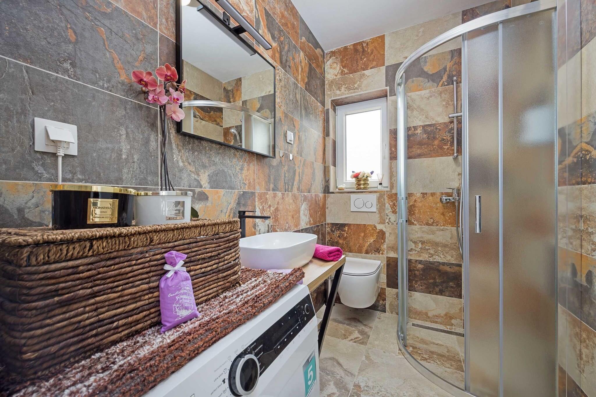 Denne fantastiske villa, beliggende i et roligt område af Pula, tilbyder den perfekte blanding af privatliv og bekvemmelighed. Ejendommen har en privat swimmingpool med jacuzzi, en rummelig terrasse udstyret med flere sæt havemøbler, ideel til afslapning og udendørs spisning. Villaen kan rumme op til 10 personer, med 4 smukt indrettede soveværelser, hver med eget badeværelse. Stuen indeholder også en sovesofa, der giver ekstra soveplads til 2 børn. Yderligere faciliteter omfatter gratis Wi-Fi, aircondition og privat parkering. Børn kan nyde den udendørs gynge, og der er plads til at opbevare cykler i kælderen. Villa Nur Amela er ideelt beliggende nær flere populære destinationer i Istrien-regionen. De nærliggende byer Pula, Fazana, Medulin og Rovinj tilbyder en blanding af kulturelle og rekreative aktiviteter. For strandelskere ligger Hidrobaza-stranden kun 2 km væk, og du kan nyde et måltid på en nærliggende restaurant, kun 200 meter fra villaen. Historieentusiaster vil sætte pris på det nærliggende Fort Punta Christo og fyrtårnet på Stinjans kyst. For en mere eventyrlig dag kan du besøge nationalparken Brijuni, som kan nås med en bådtur fra Fazana, som ligger omkring 6 km væk. Området byder også på cykelstier, herunder den populære rute Adrifort Stinjan. Villaens interiør er designet til maksimal komfort med et veludstyret åbent køkken, der byder på en kombination af gas- og el-tilberedning, sammen med køleskab, ovn, opvaskemaskine og kaffemaskine. Fem badeværelser med bruser sikrer bekvemmelighed for alle gæster.