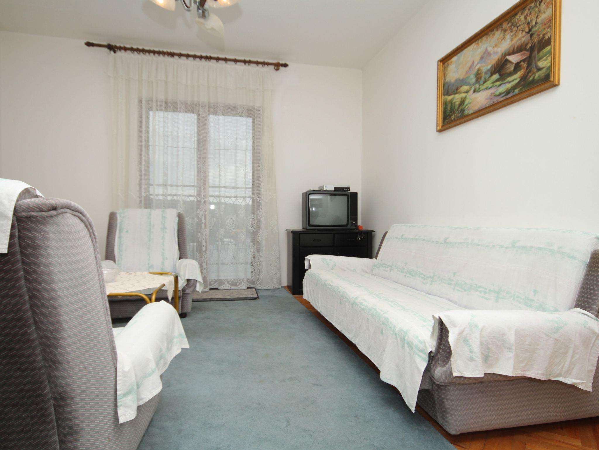Ferienwohnung bietet Platz für 4 Gäste. Die Betten sind in Schlafzimmern, die es 1 gibt, und in Wohnzimmer, innerhalb einer Gesamtfläche von 44m2, angeordnet. Die Gäste haben einen eigenen Balkon zur Verfügung, auf der sie in warmen Sommernächten genießen können. Das Apartment bietet Meerblick. Es ist erlaubt, Speisen auf dem Gemeinschafts-Grill vorzubereiten. In der Unterkunftseinheit besteht die Möglichkeit des Mitbringens von Haustieren gegen Aufpreis. IM PREIS INBEGRIFFEN: Kurtaxe, Endreinigung, Klimatisierung, Parkplatz, Garage, Internet, Bügeleisen, Bügelbrett, Föhn. VERBINDLICHE ZUSÄTZLICHE KOSTEN: Aufzahlung für Kurzaufenthalte (prozentualer Zuschlag pro Nächtigungsanzahl: 30% - 1, 20% - 2, 10% - 3). UNVERBINDLICHE ZUSÄTZLICHE KOSTEN: Haustiere (7,00 € pro Nacht). Die Verfügbarkeit zusätzlicher Dienstleistungen in Ihrem reservierten Termin und die Preise derselben (falls nicht aufgeführt) müssen im Voraus überprüft werden. Zusätzliche Dienstleistungen die in der Zahlungsaufforderung nicht aufgeführt sind werden direkt beim Vermieter bezahlt, angenommen der Gast nutzt auch diese.