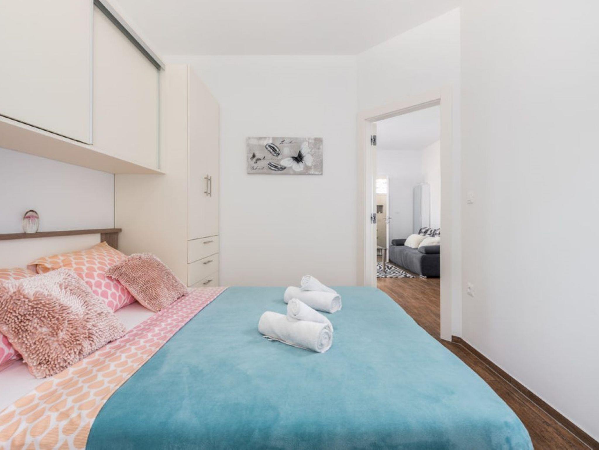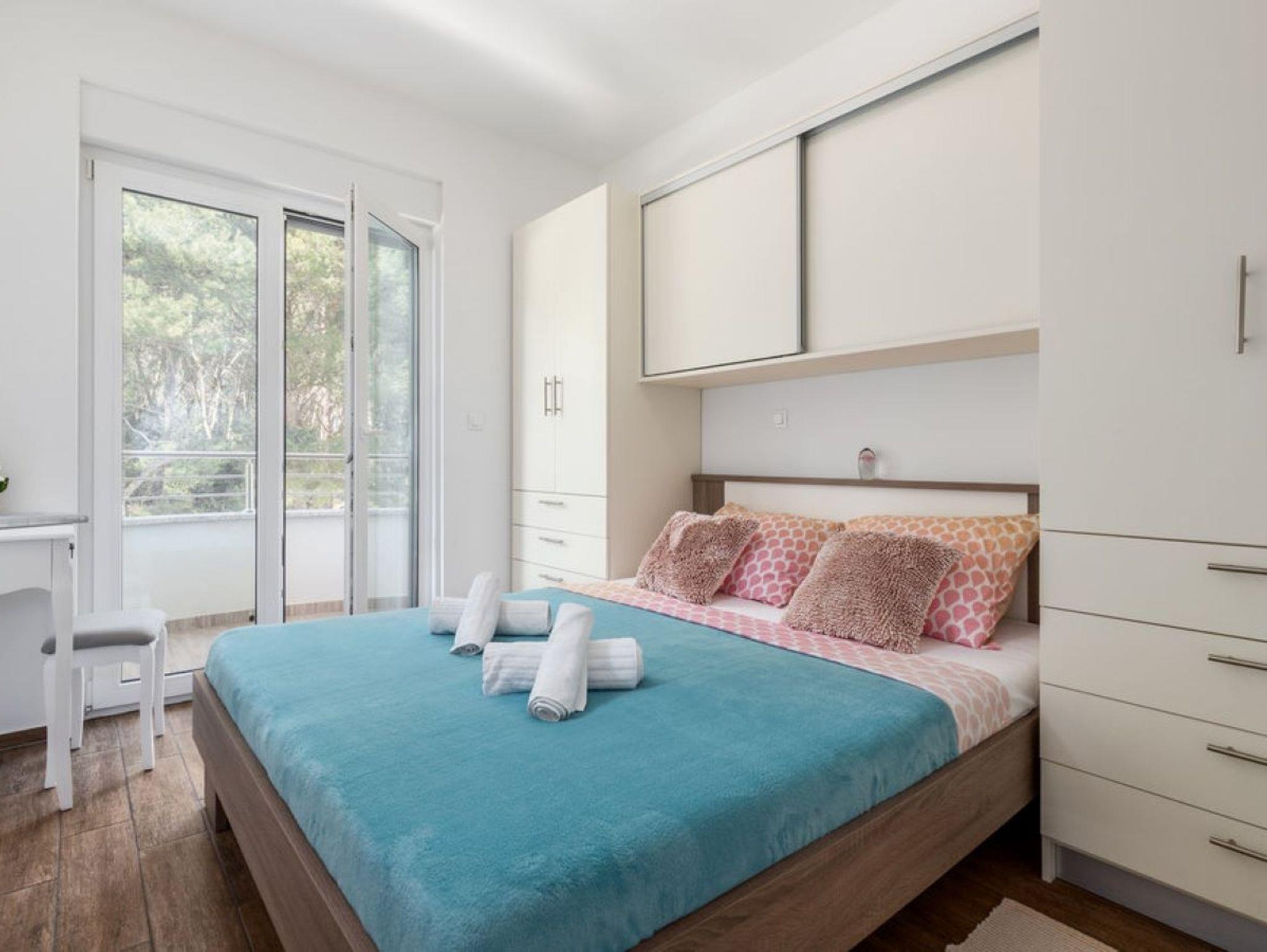 Ferienwohnung bietet Platz für 2 Gäste. Die Betten sind in Schlafzimmern, die es 1 gibt, innerhalb einer Gesamtfläche von 37m2, angeordnet. Die Gäste haben eine eigene Terrasse zur Verfügung, auf der sie in warmen Sommernächten genießen können. Es ist erlaubt, Speisen auf dem Gemeinschafts-Grill vorzubereiten. Während ihres Aufenthalts können Gäste das gemeinsam zur Nutzung stehende Schwimmbad benutzen. IM PREIS INBEGRIFFEN: Kurtaxe, Endreinigung, Klimatisierung, Pool, Parkplatz, Internet, Bügeleisen, Föhn. VERBINDLICHE ZUSÄTZLICHE KOSTEN: Aufzahlung für Kurzaufenthalte (prozentualer Zuschlag pro Nächtigungsanzahl: 30% - 1, 20% - 2, 10% - 3). Die Verfügbarkeit zusätzlicher Dienstleistungen in Ihrem reservierten Termin und die Preise derselben (falls nicht aufgeführt) müssen im Voraus überprüft werden. Zusätzliche Dienstleistungen die in der Zahlungsaufforderung nicht aufgeführt sind werden direkt beim Vermieter bezahlt, angenommen der Gast nutzt auch diese.