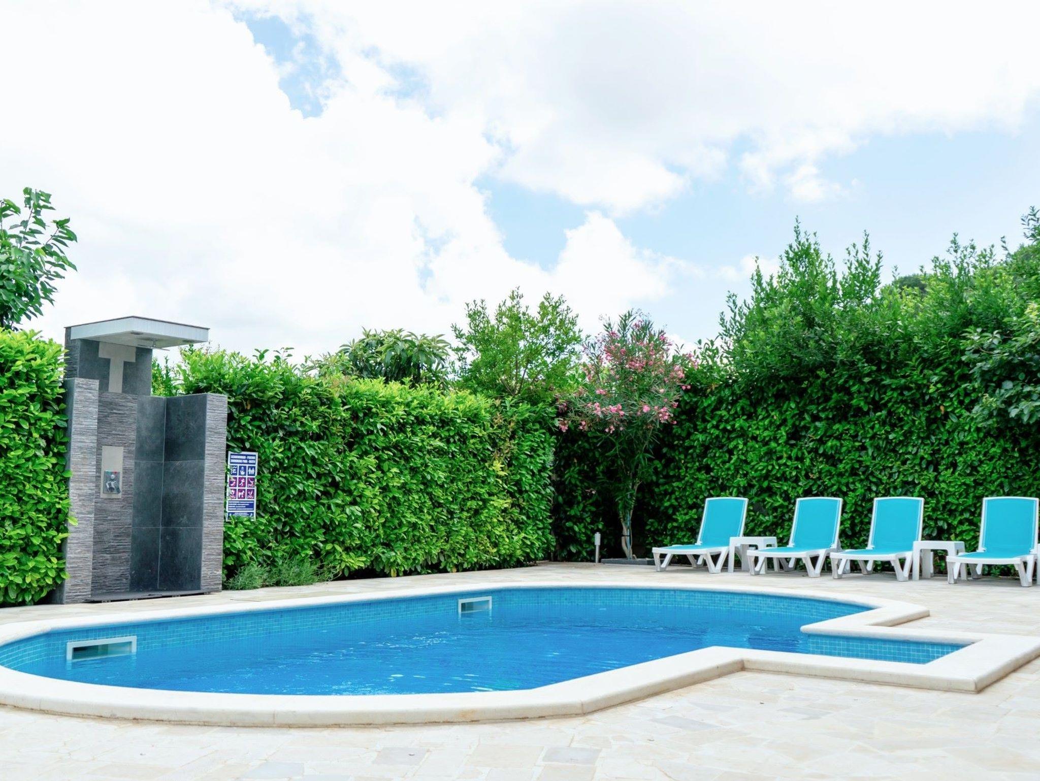 Umgebung des Objekts (Ordentlich), Hof (250m2, Kinderbereich, Sitzbereich), Parkplatz (Anzahl der Parkplätze: 4, Entfernung vom Objekt: im Hof), Pool: gemeinsam, Dimensionen: 6m x 4m x 1.35m, Wassertyp: Salzwasser, Grill: gemeinsam, WiFi Internet, Föhn, Bügeleisen