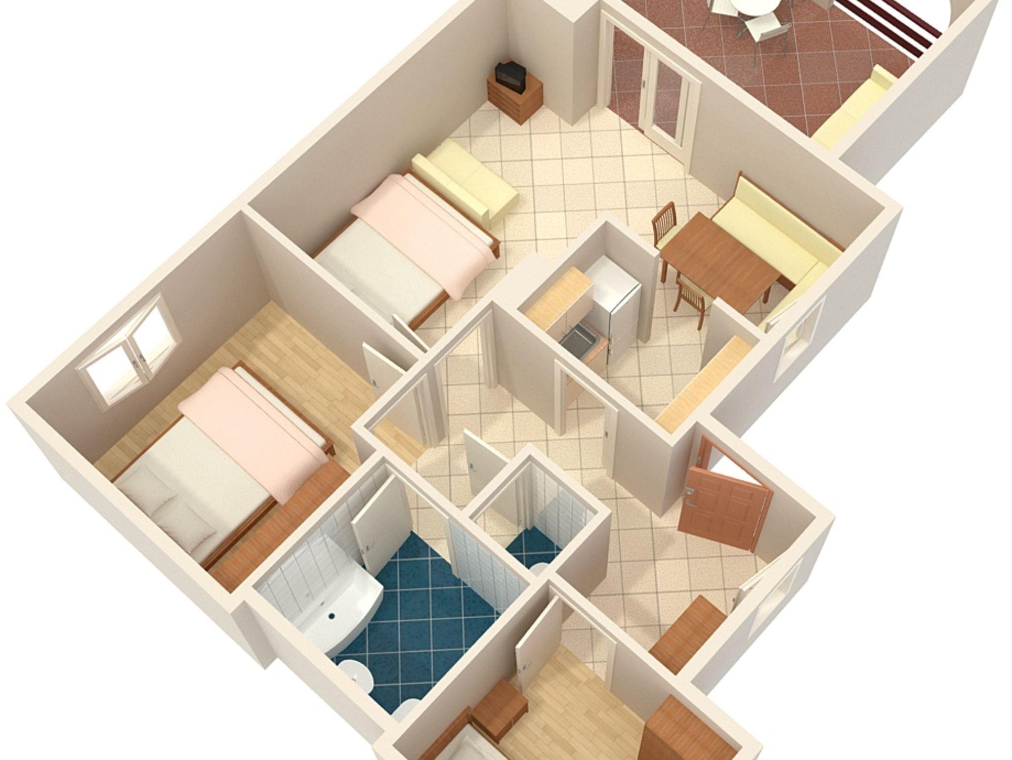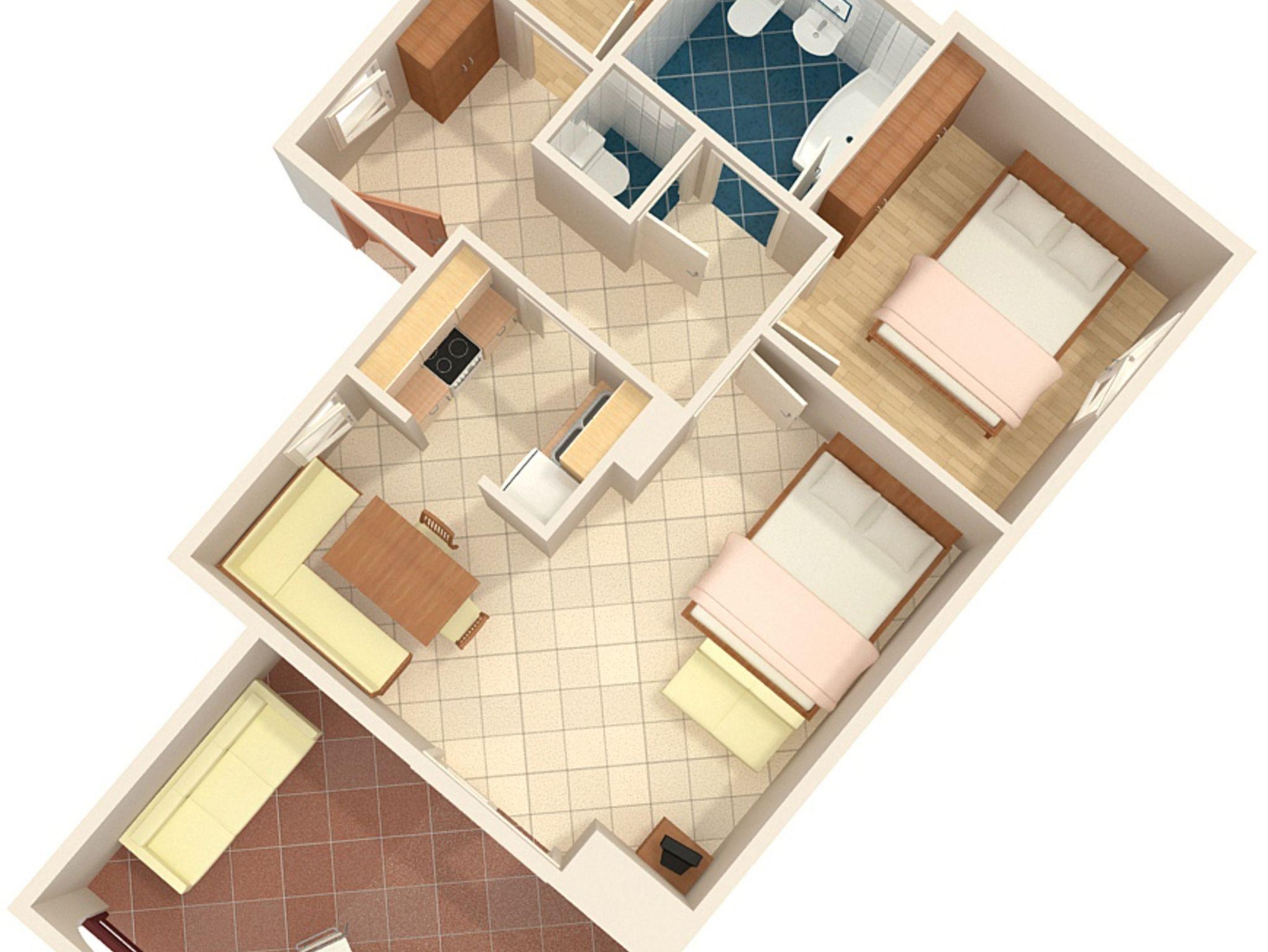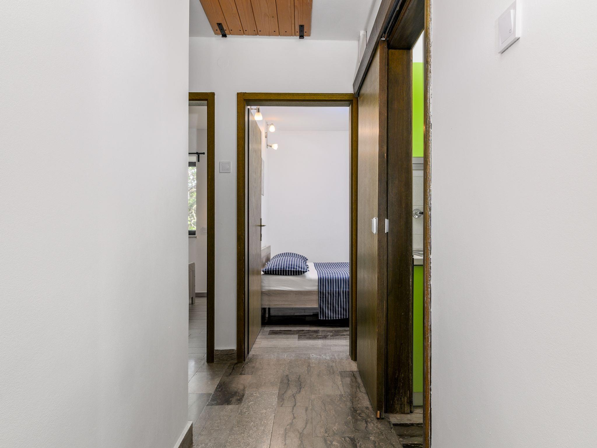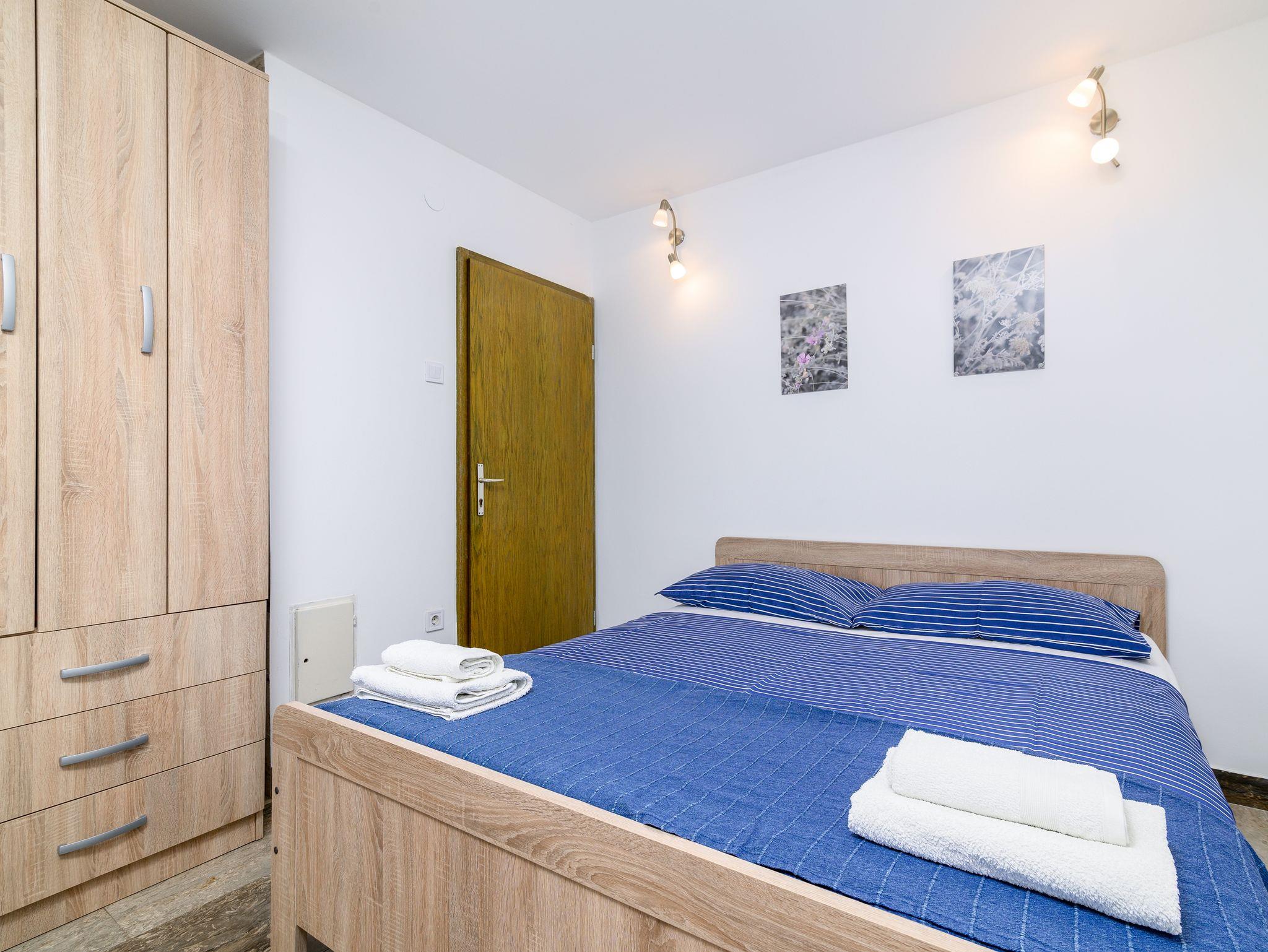 Ferienwohnung bietet Platz für 5 Gäste. Die Betten sind in Schlafzimmern, die es 2 gibt, und in Wohnzimmer, innerhalb einer Gesamtfläche von 47m2, angeordnet. Die Gäste haben eine eigene Terrasse zur Verfügung, auf der sie in warmen Sommernächten genießen können. Es ist erlaubt, Speisen auf dem Gemeinschafts-Grill vorzubereiten. In der Unterkunftseinheit besteht die Möglichkeit des Mitbringens von Haustieren gegen Aufpreis. IM PREIS INBEGRIFFEN: Kurtaxe, Endreinigung, Klimatisierung, Parkplatz, Internet, Föhn. VERBINDLICHE ZUSÄTZLICHE KOSTEN: Aufzahlung für Kurzaufenthalte (prozentualer Zuschlag pro Nächtigungsanzahl: 30% - 1, 20% - 2, 10% - 3). UNVERBINDLICHE ZUSÄTZLICHE KOSTEN: Haustiere (5,00 € pro Nacht). Die Verfügbarkeit zusätzlicher Dienstleistungen in Ihrem reservierten Termin und die Preise derselben (falls nicht aufgeführt) müssen im Voraus überprüft werden. Zusätzliche Dienstleistungen die in der Zahlungsaufforderung nicht aufgeführt sind werden direkt beim Vermieter bezahlt, angenommen der Gast nutzt auch diese.