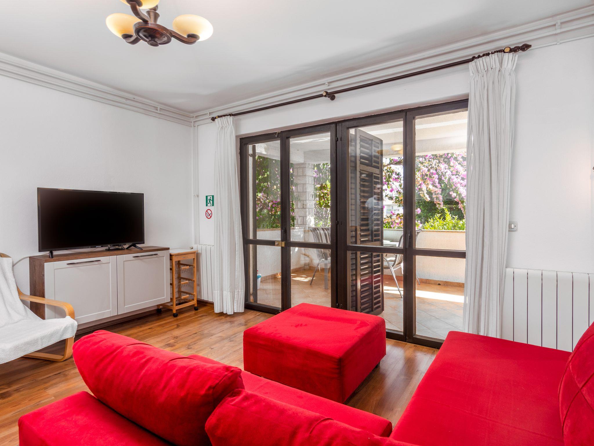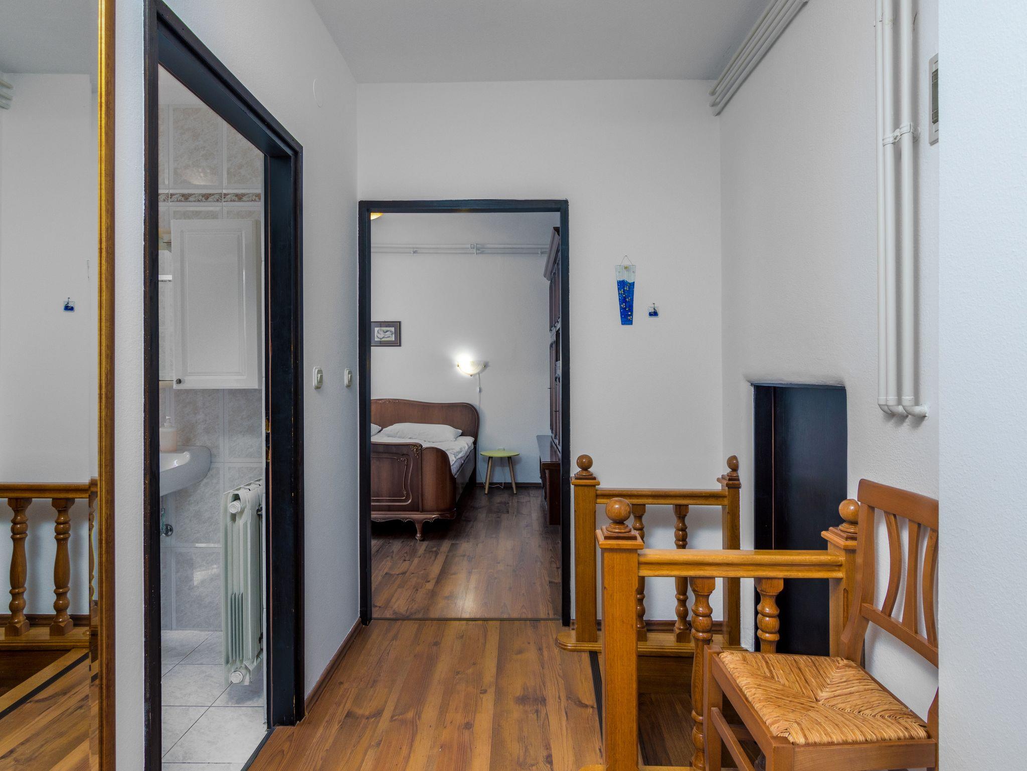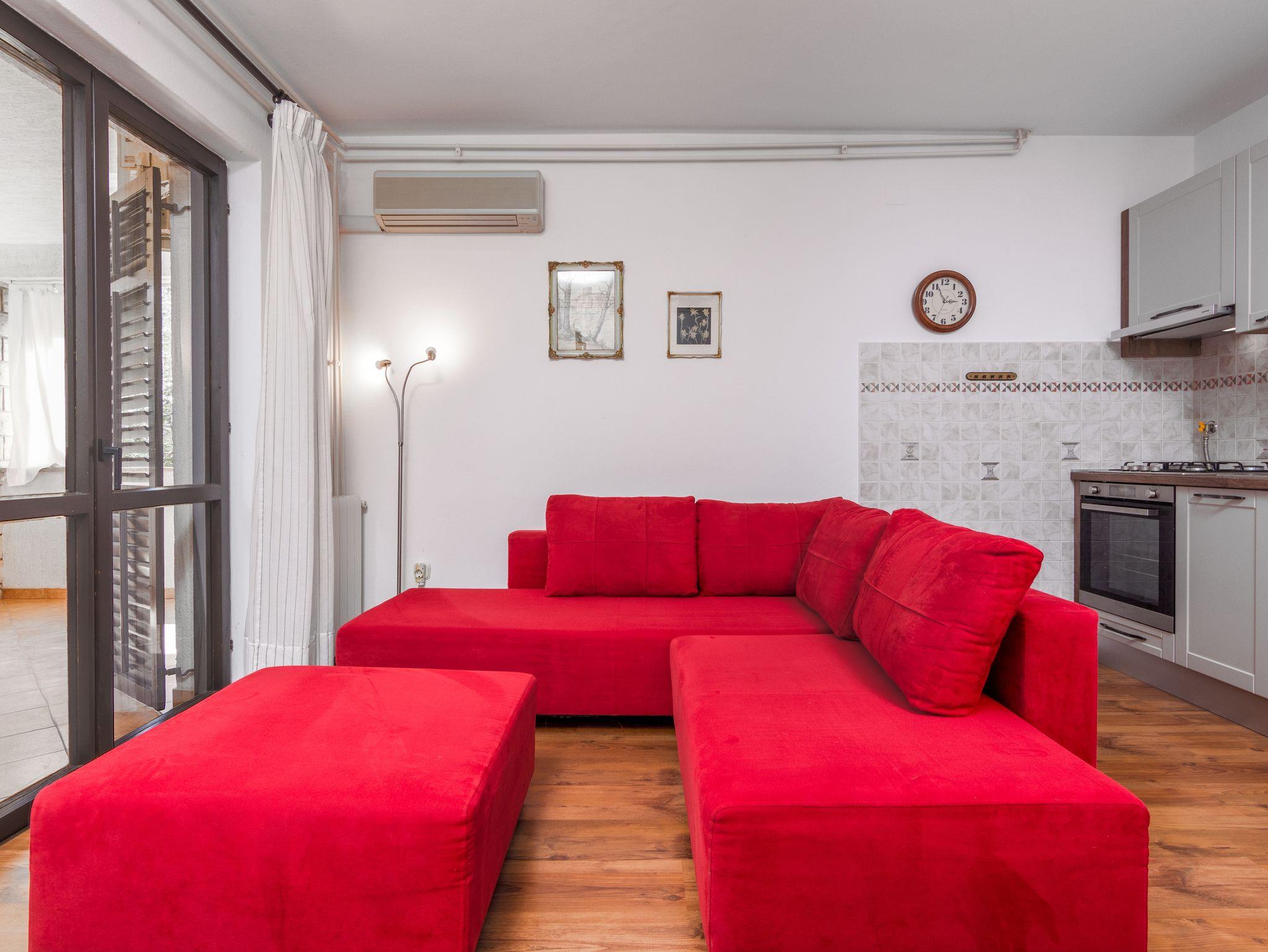 Ferienwohnung bietet Platz für 4 Gäste. Die Betten sind in Schlafzimmern, die es 1 gibt, und in Wohnzimmer, innerhalb einer Gesamtfläche von 43m2, angeordnet. Die Gäste haben eine eigene Terrasse zur Verfügung, auf der sie in warmen Sommernächten genießen können. Es ist erlaubt, Speisen auf dem Gemeinschafts-Grill vorzubereiten. In der Unterkunftseinheit besteht die Möglichkeit des Mitbringens von Haustieren gegen Aufpreis. IM PREIS INBEGRIFFEN: Kurtaxe, Endreinigung, Klimatisierung, Parkplatz, Internet, Kinderbett, Bügeleisen, Bügelbrett, Föhn. VERBINDLICHE ZUSÄTZLICHE KOSTEN: Aufzahlung für Kurzaufenthalte (prozentualer Zuschlag pro Nächtigungsanzahl: 30% - 1, 20% - 2, 10% - 3). UNVERBINDLICHE ZUSÄTZLICHE KOSTEN: Zentralheizung (5,00 € pro Nacht), Haustiere (5,00 € pro Nacht), Zusatzbett (15,00 € pro Nacht). Die Verfügbarkeit zusätzlicher Dienstleistungen in Ihrem reservierten Termin und die Preise derselben (falls nicht aufgeführt) müssen im Voraus überprüft werden. Zusätzliche Dienstleistungen die in der Zahlungsaufforderung nicht aufgeführt sind werden direkt beim Vermieter bezahlt, angenommen der Gast nutzt auch diese. Ermäßigung auf den Grundpreis: Gratistag 14=13 (bei einem Aufenthalt von 14 Tagen oder mehr erhalten Sie einen Gratistag für den Aufenthalt bis 31.12.26).