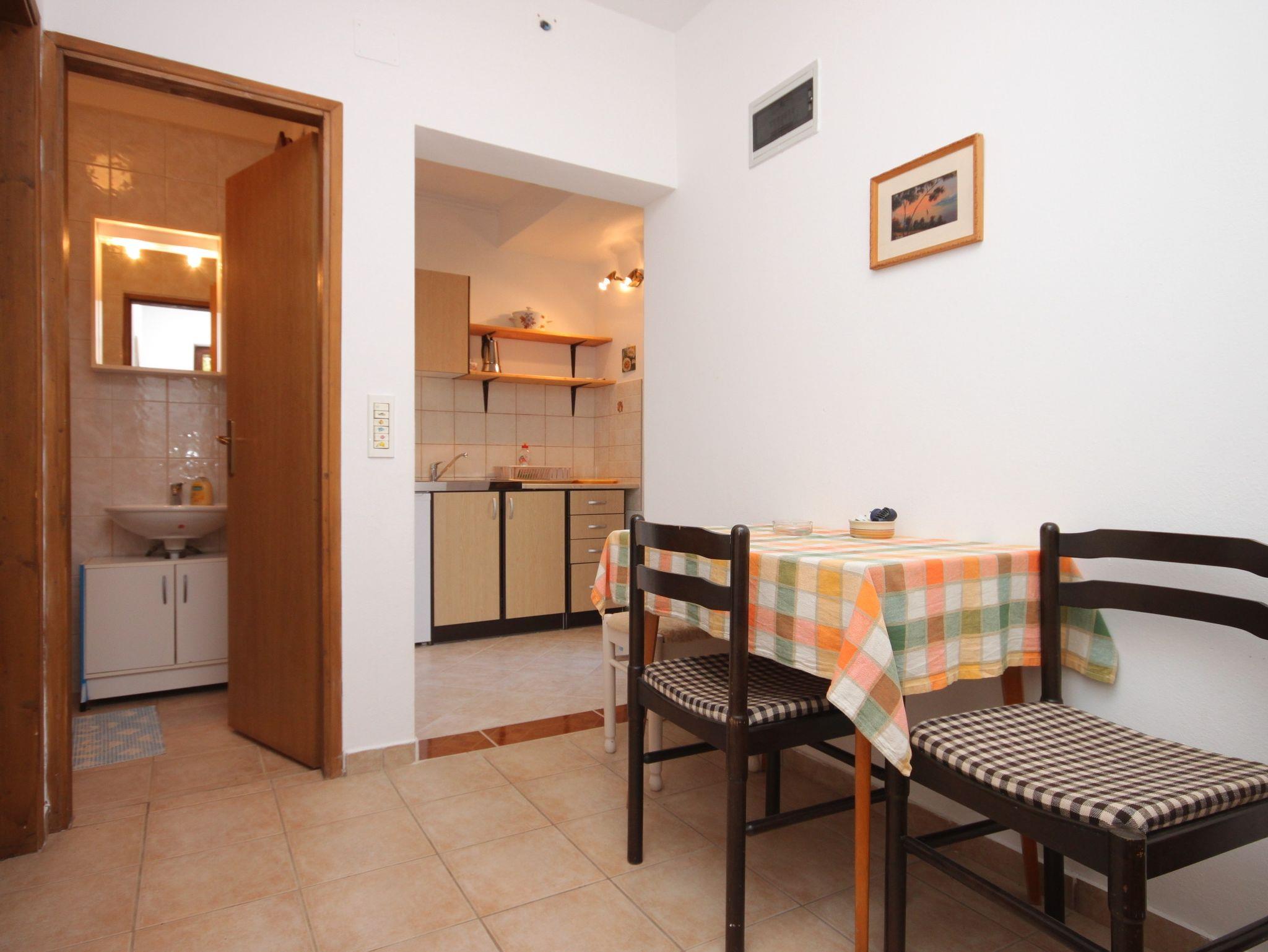 Ferienwohnung bietet Platz für 3 Gäste. Die Betten sind in Schlafzimmern, die es 1 gibt, und in Esszimmer, innerhalb einer Gesamtfläche von 21m2, angeordnet. Die Gäste haben eine eigene Terrasse zur Verfügung, auf der sie in warmen Sommernächten genießen können. Es ist erlaubt, Speisen auf dem Gemeinschafts-Grill vorzubereiten. In der Unterkunftseinheit besteht die Möglichkeit des Mitbringens von Haustieren gegen Aufpreis. IM PREIS INBEGRIFFEN: Kurtaxe, Endreinigung, Klimatisierung, Internet, Bügeleisen, Bügelbrett, Föhn, tragbarer Grill. VERBINDLICHE ZUSÄTZLICHE KOSTEN: Aufzahlung für Kurzaufenthalte (prozentualer Zuschlag pro Nächtigungsanzahl: 30% - 1, 20% - 2, 10% - 3). UNVERBINDLICHE ZUSÄTZLICHE KOSTEN: Wäschewaschen (5,00 € Waschen), Haustiere (10,00 € pro Nacht). Die Verfügbarkeit zusätzlicher Dienstleistungen in Ihrem reservierten Termin und die Preise derselben (falls nicht aufgeführt) müssen im Voraus überprüft werden. Zusätzliche Dienstleistungen die in der Zahlungsaufforderung nicht aufgeführt sind werden direkt beim Vermieter bezahlt, angenommen der Gast nutzt auch diese.