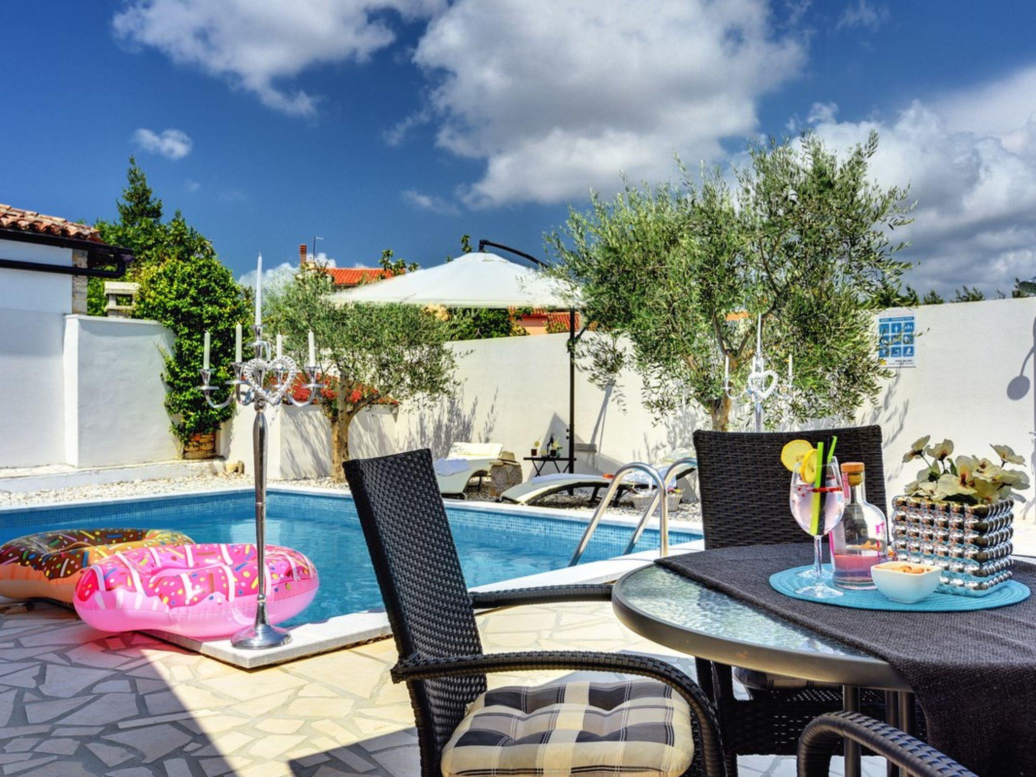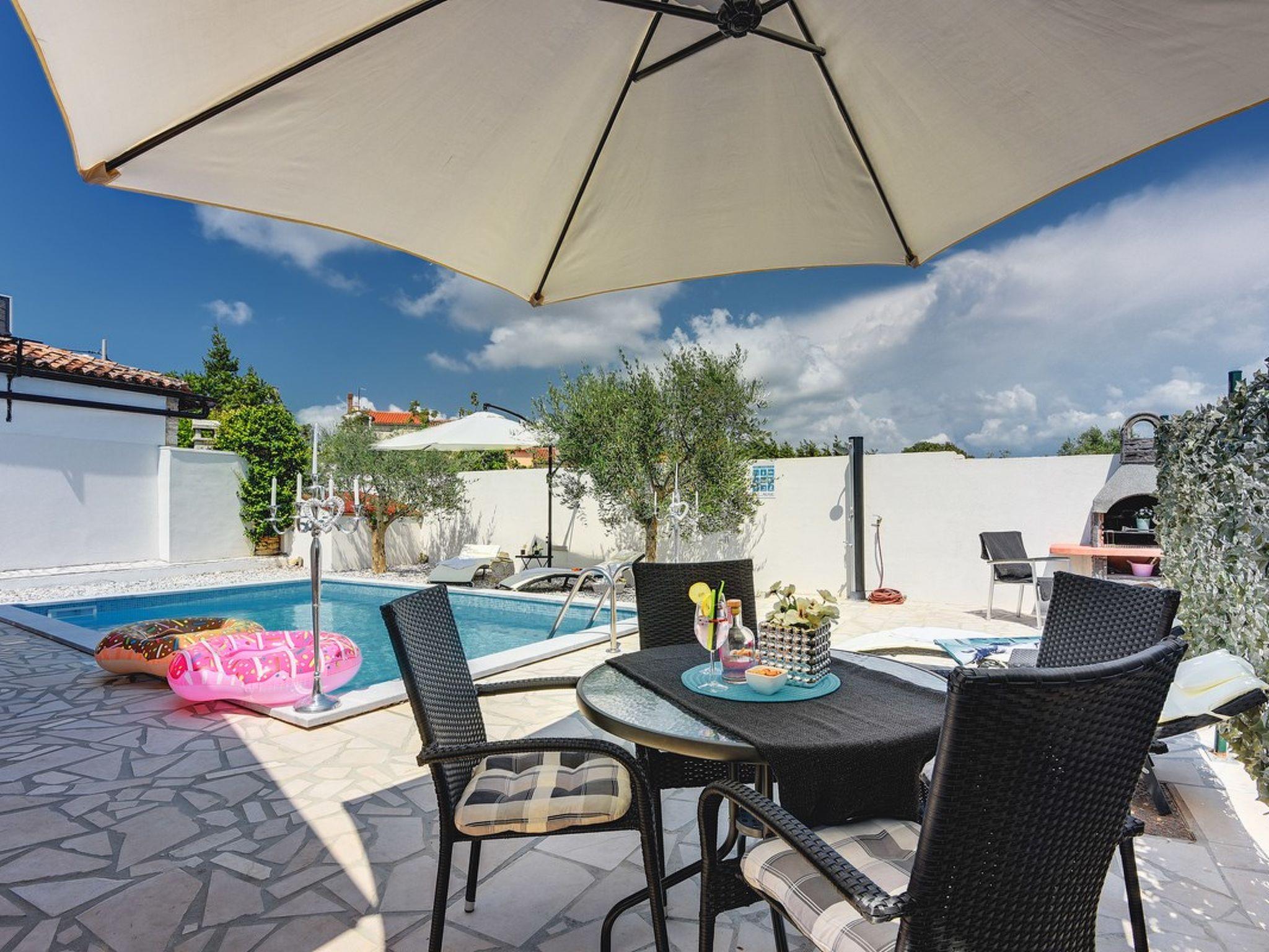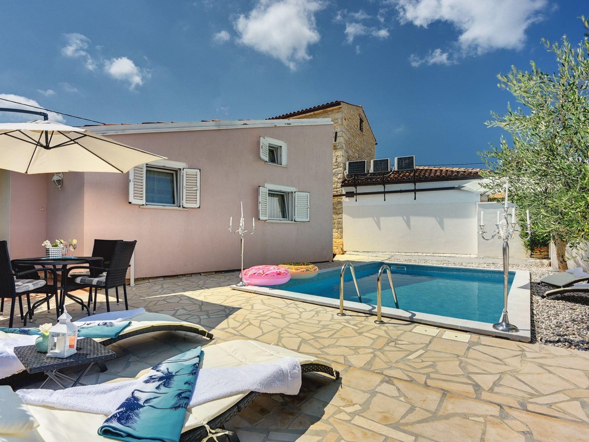 House Michelle in Šišan with private, outdoor pool offers accommodation for 5 people where Your pet is also welcome. The charmingly decorated interior of this ground floor house consists of a fully equipped kitchen, living room with dining table and one bedroom while the gallery has a double bed for two persons. Guests can enjoy a landscaped garden with olives and sun loungers, as well as a newly built outdoor pool where you will surely enjoy during your vacation. The beautiful beaches are just a few kilometers from the house, while Medulin and Pula are just a ten minute drive away. Do not miss to book your stay in the beautiful House Michelle, ideal for families with children or friends!