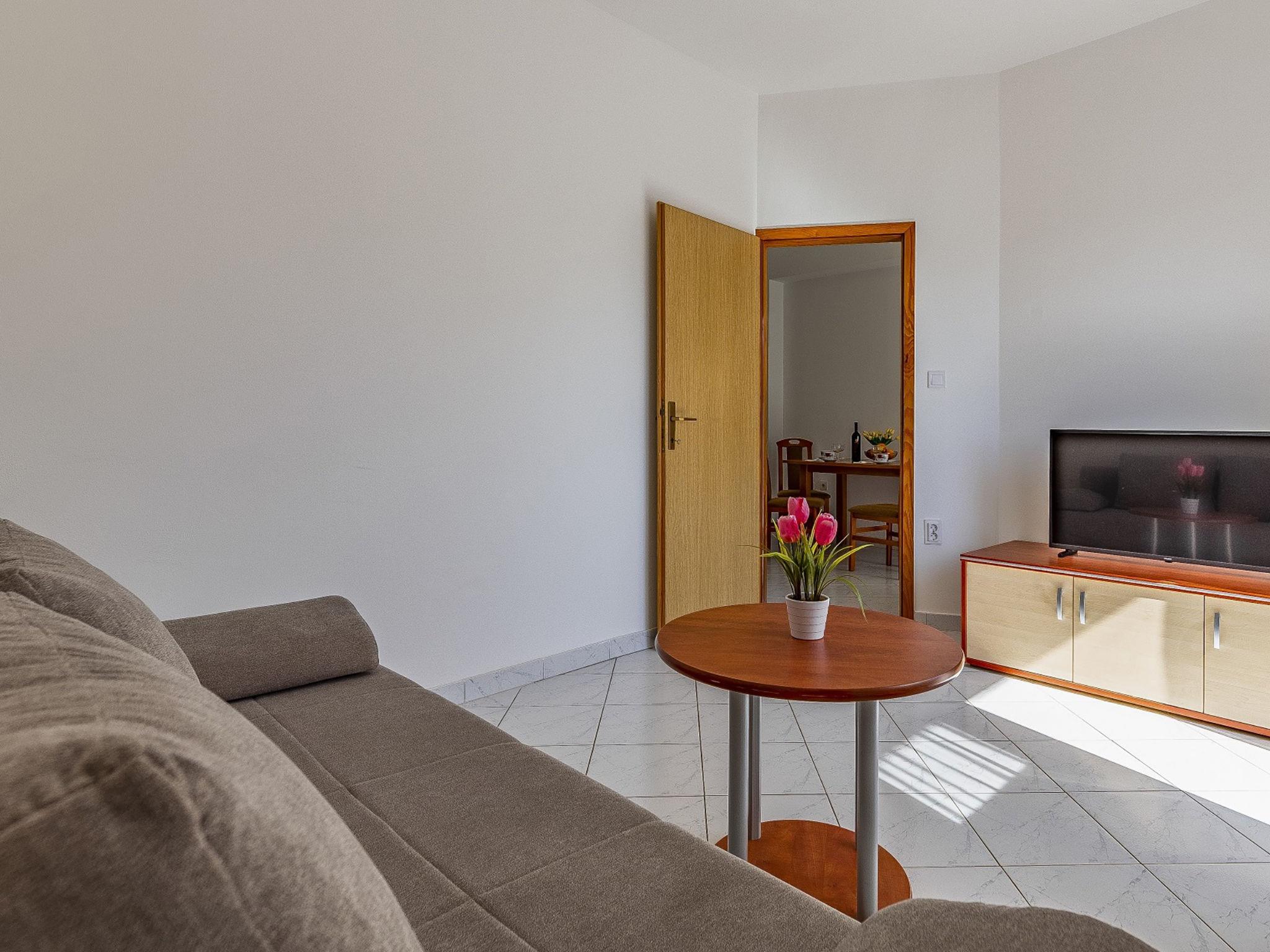 "Apartment Rok 7", 2-room apartment 40 m2 on 1st floor. Living room with 1 double sofabed (150 cm, length 200 cm), satellite TV. Exit to the terrace. 1 room with 1 french bed (180 cm, length 200 cm), air conditioning. Exit to the terrace. Dining room. Open kitchen (2 hot plates, dishwasher, kettle, microwave, freezer, electric coffee machine). Shower/WC. Air-conditioning (extra). Terrace 10 m2, roofed. Terrace furniture. View of the swimming pool and the garden. Facilities: Internet (WiFi, free).