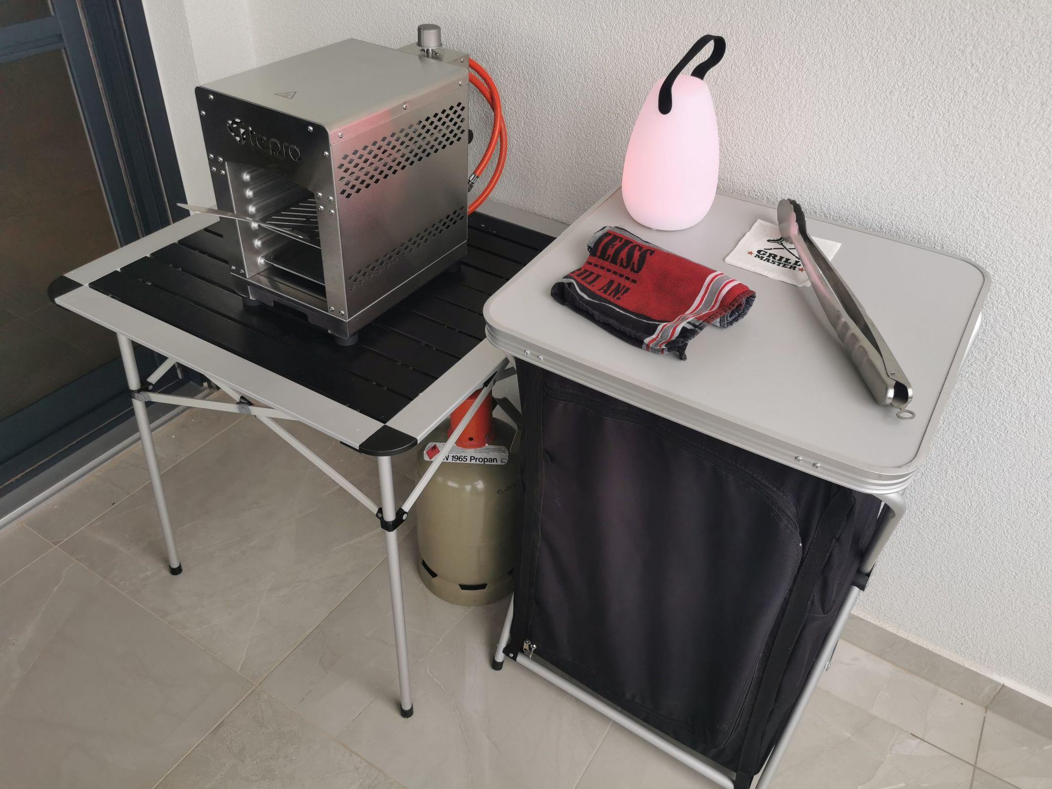 The thoughtful interior design includes partial air conditioning and underfloor heating in all areas, ensuring a pleasant indoor climate, whether on warm summer days or cooler nights. Two fans are available in the rooms to provide a light breeze and additional comfort.