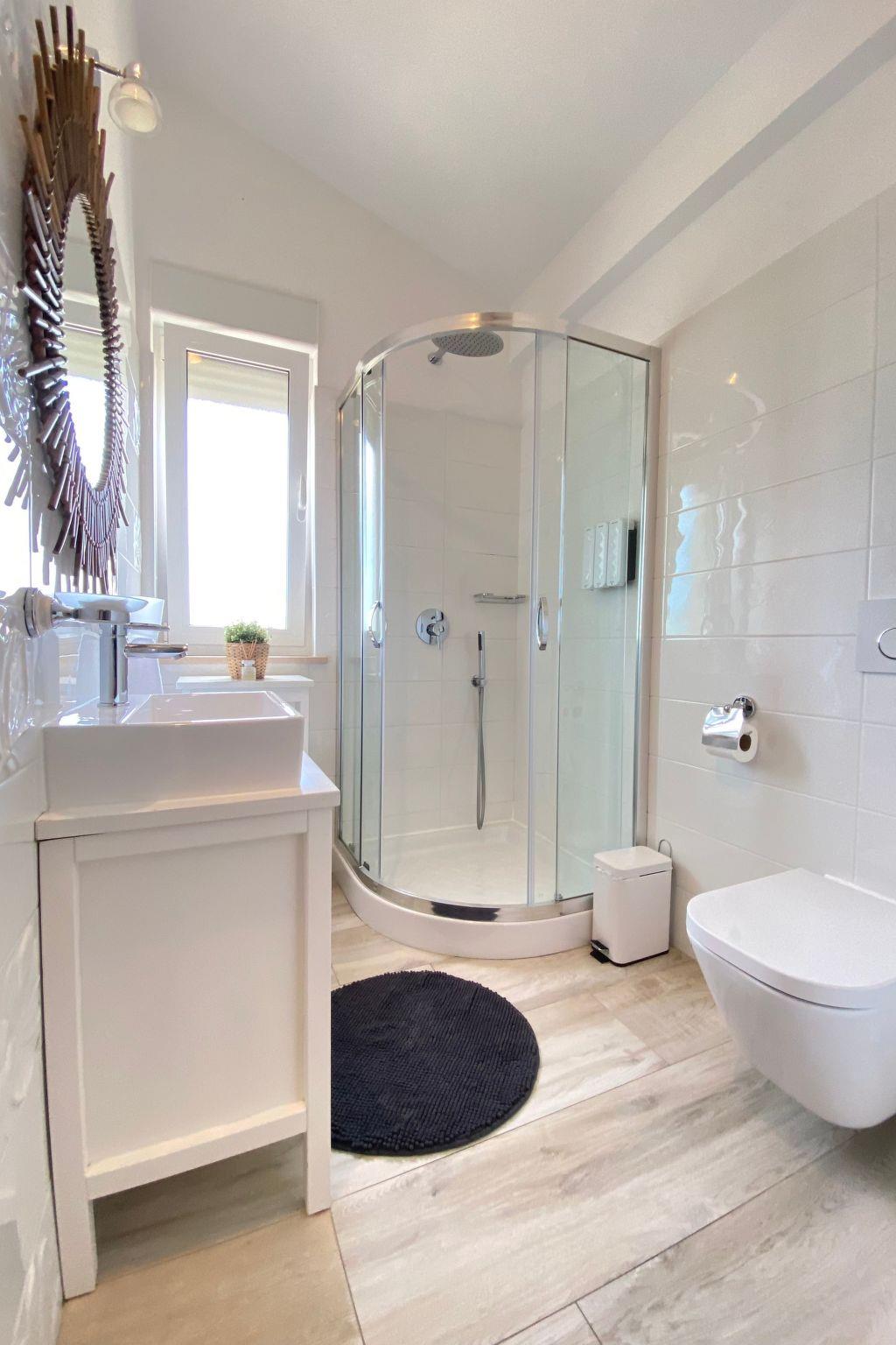 The garden site is surrounded by a line of trees. The heated pool with a counterflow system is a special highlight, with a natural disinfection system. Enjoy meals prepared on the grill on the terrace with a table and eight chairs. From the balcony on the upper floor you can enjoy a partial view of the sea. Two parking spaces are available in front of the complex.