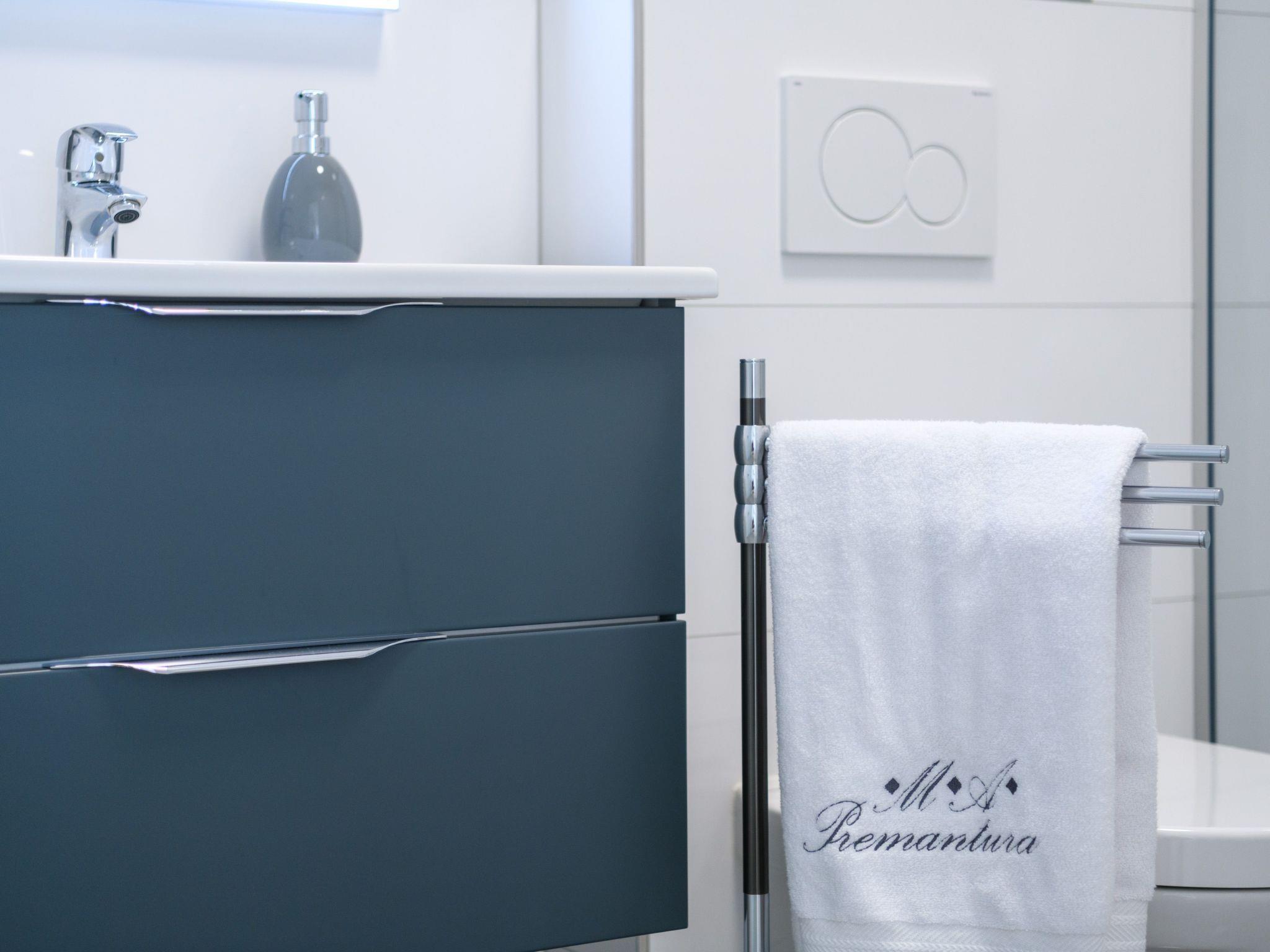 MA Premantura Luxury Apartment no 3 is located on the second floor of the apartment house with 3 units with a terrace and Sea view. no3 The apartment is air-conditioned. It has 1 bedroom, a kitchen with a dishwasher and a fridge, and 2 bathrooms with a shower, a hair dryer, and a washing machine. Towels and bed linen are provided. The holiday apartment has 1 bedroom with double bed size 180x200cm, a spacious living room with an unfoldable sofa when converted to a bed size 130x200cm, also a fully equipped kitchen with a dishwasher and a fridge, and 1 bathroom with a shower, a hair dryer and a washing machine. Towels and bed linen are provided in the holiday home.