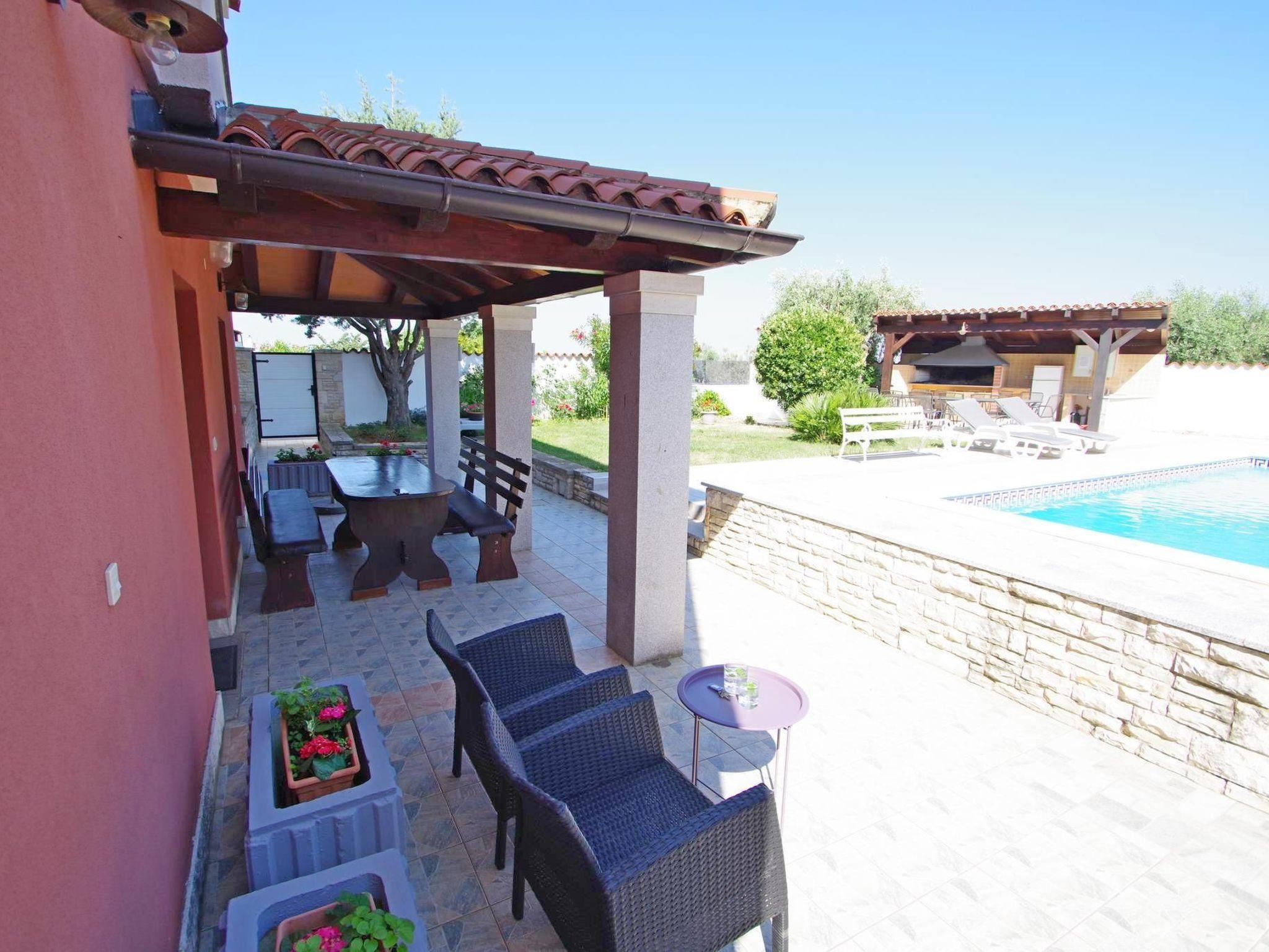 Lovely vacation house located on the south of the Istrian peninsula in the peaceful village Banjole. The vicinity of attractive beaches and children park, unique nature park Kamenjak, archeological sites and nice restaurants with local food make this house an attractive choice for the holiday. Three bedroom apartment on the ground floor and 2 smaller apartments on the first floor and second floor share the swimming pool and fenced ample garden. Well maintained greenery, barbecue and garden furniture make it a perfect spot for leisure and relaxation. For those seeking the hustle and bustle of the city life, nearby city of Pula is just 6 km distanced. Here, the vivid atmosphere of the local green market, street events, colorful stores and various restaurant will indulge your senses. Culture lovers will find valuable Roman remains among which the most prominent one is Roman Colosseum, the stage of various concerts, operas, festivals..