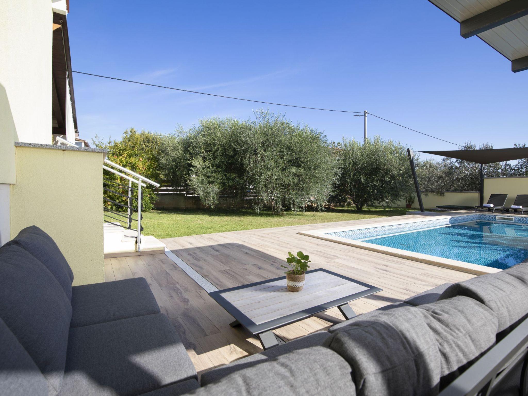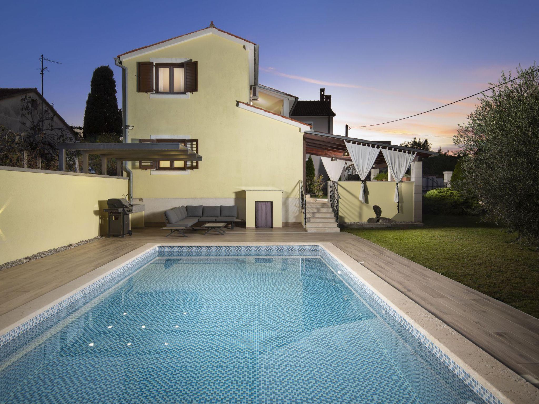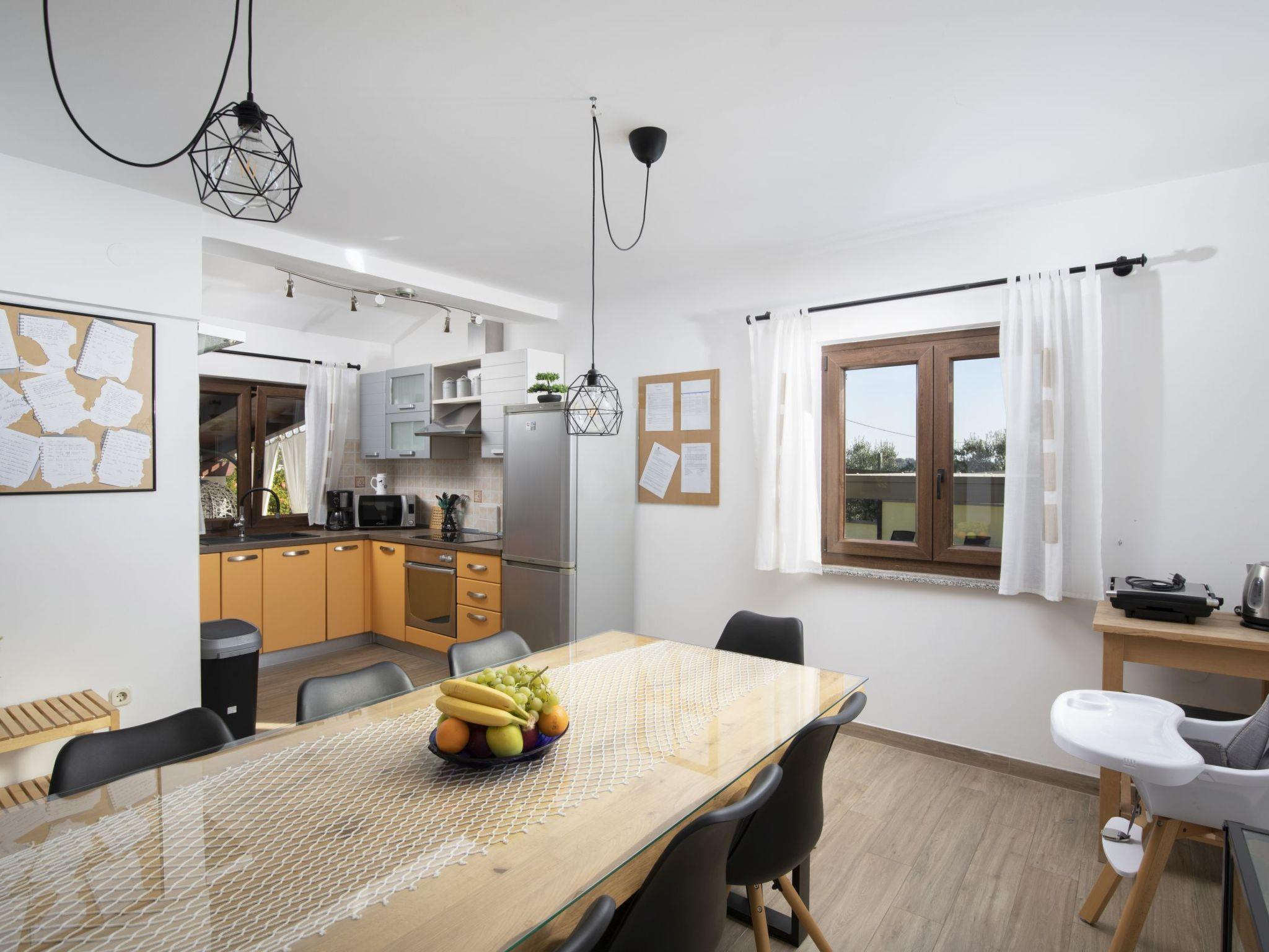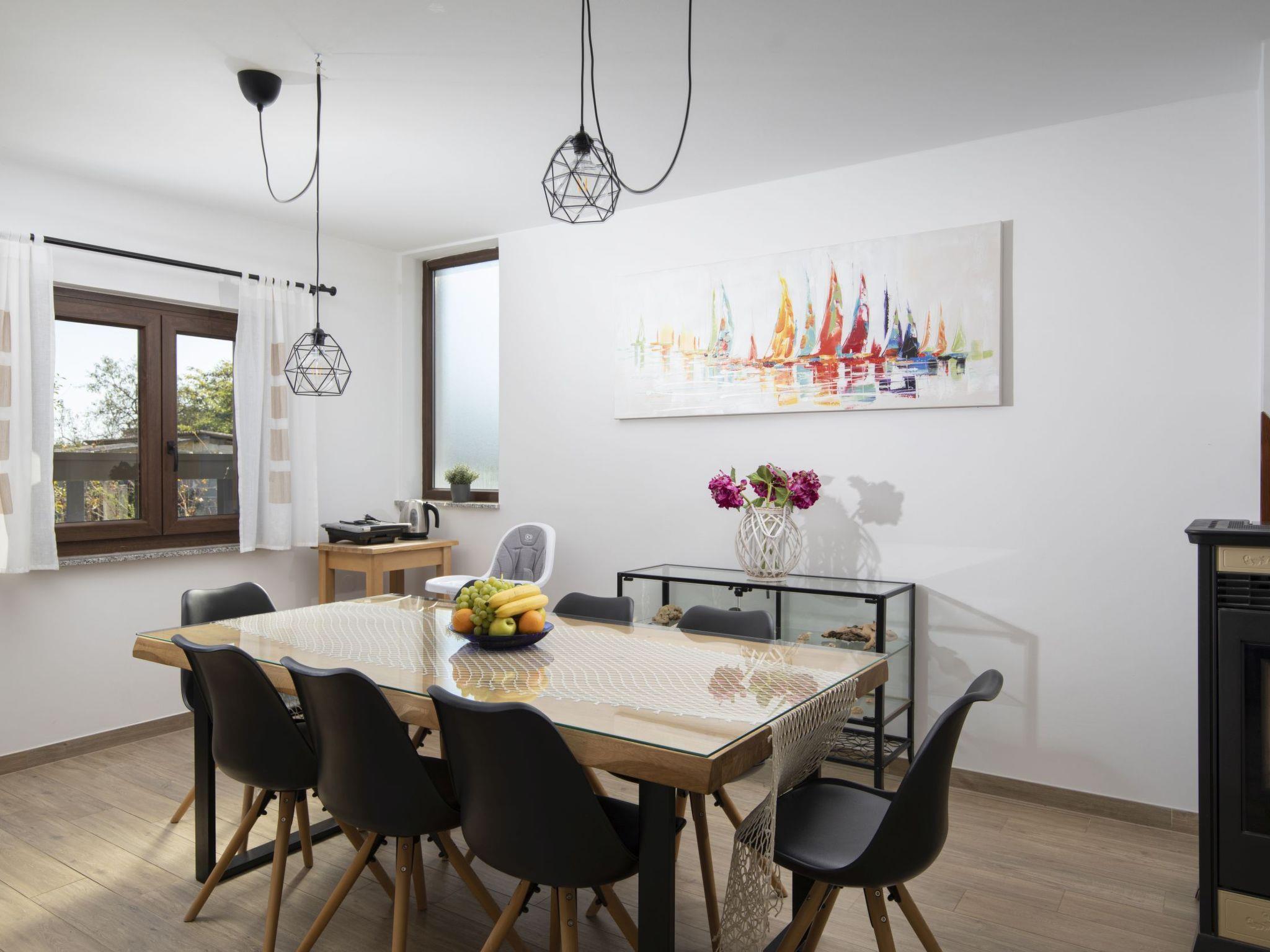 The outdoor area of Holiday House Captains is a true highlight, designed for ultimate relaxation and entertainment. The private garden encompasses a pool exclusive for your use, inviting you to take a refreshing dip at any time of day. The presence of a barbecue sets the stage for delightful outdoor dining experiences, while the terrace, outfitted with seating for six, offers the perfect backdrop for enjoying meals or simply lounging under the balmy Istrian sun. This setting promises memorable moments with loved ones in a serene environment.
