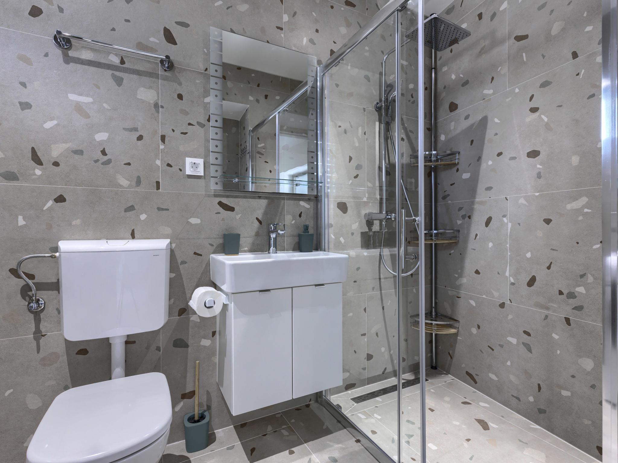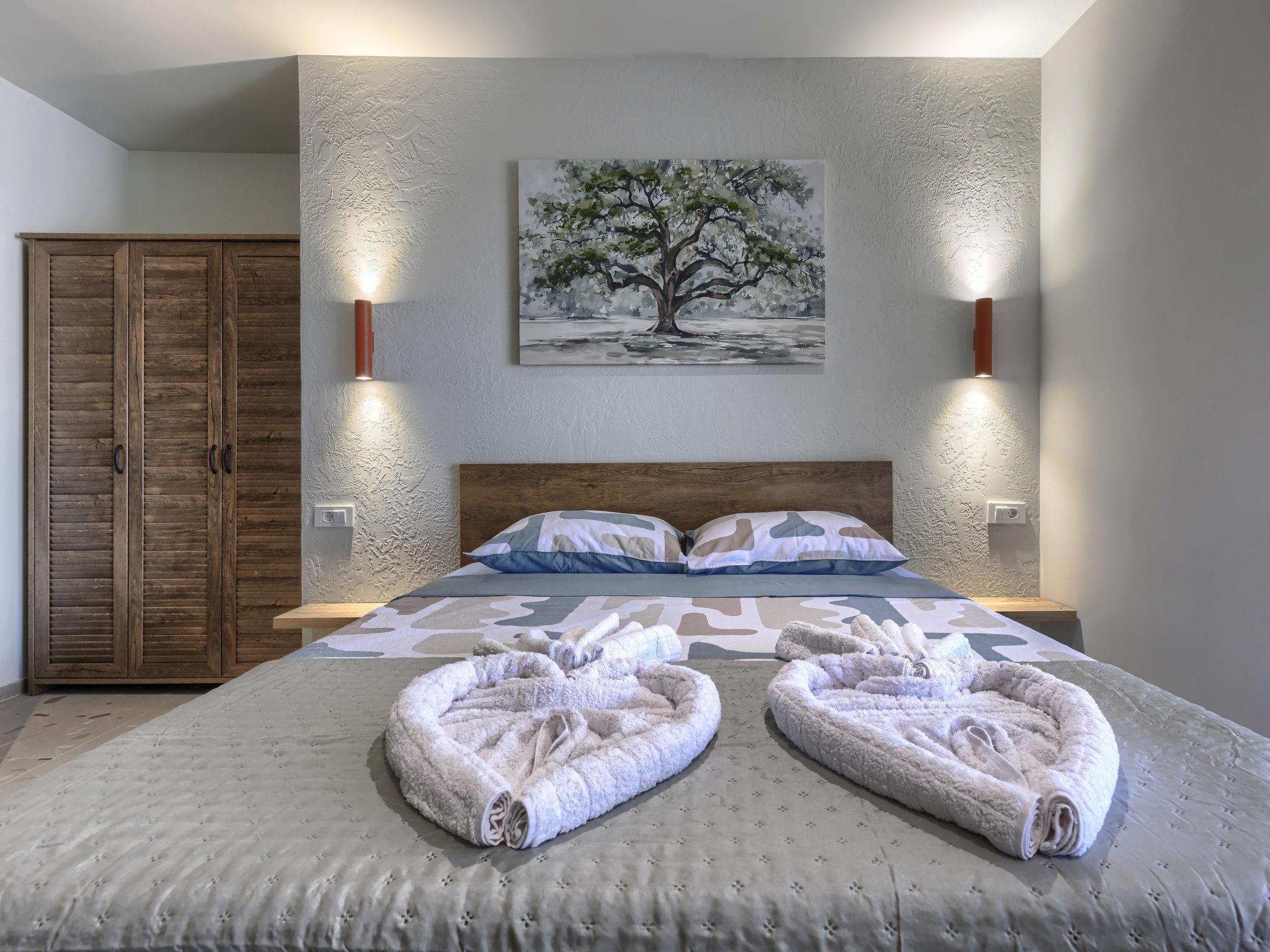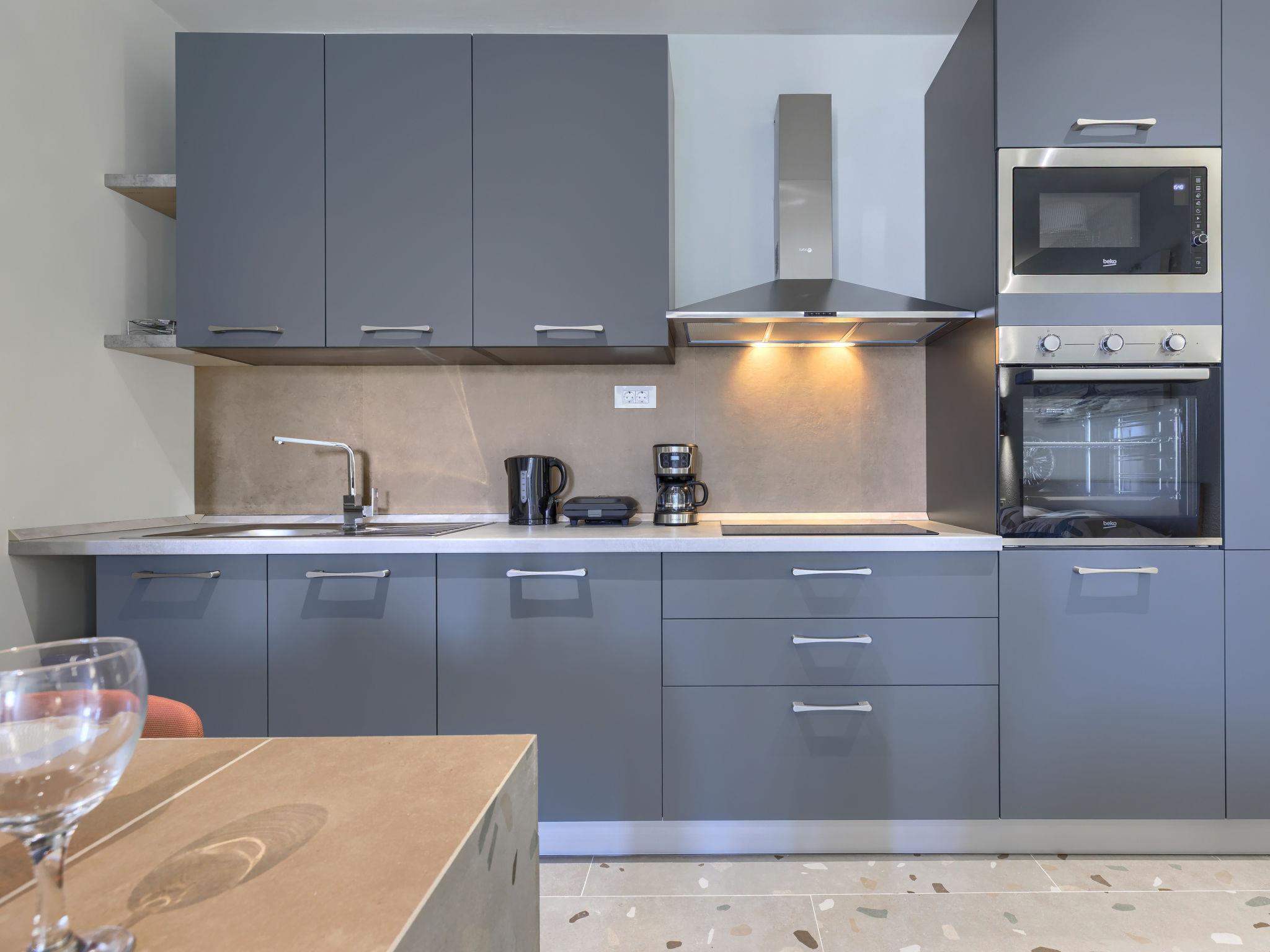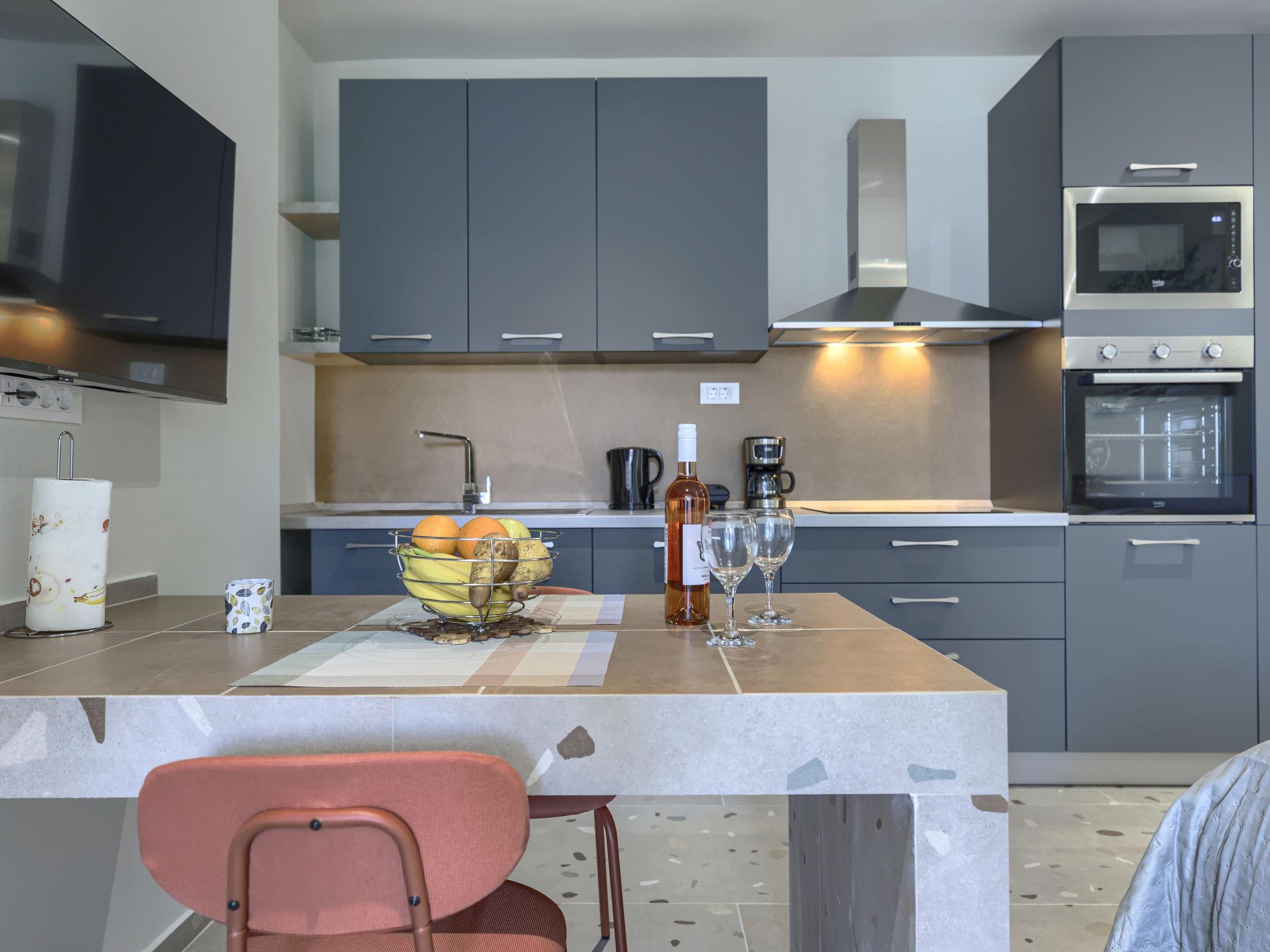"Maslina", 1-room studio 25 m2, on the ground floor. Beautiful furnishings: living/sleeping room with 1 french bed (160 cm, length 200 cm), satellite TV (flat screen), air conditioning. Exit to the terrace. Open kitchen (oven, dishwasher, 4 ceramic glass hob hotplates, toaster, freezer, electric coffee machine). Shower/WC. Forced-air heating. Facilities: Internet (WiFi, free). Please note: private entrance.