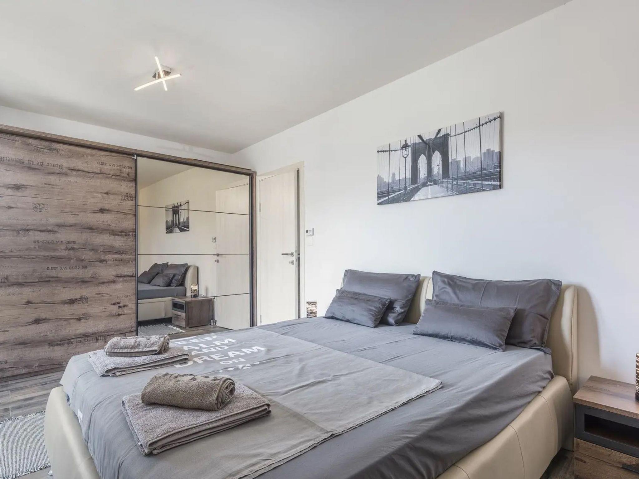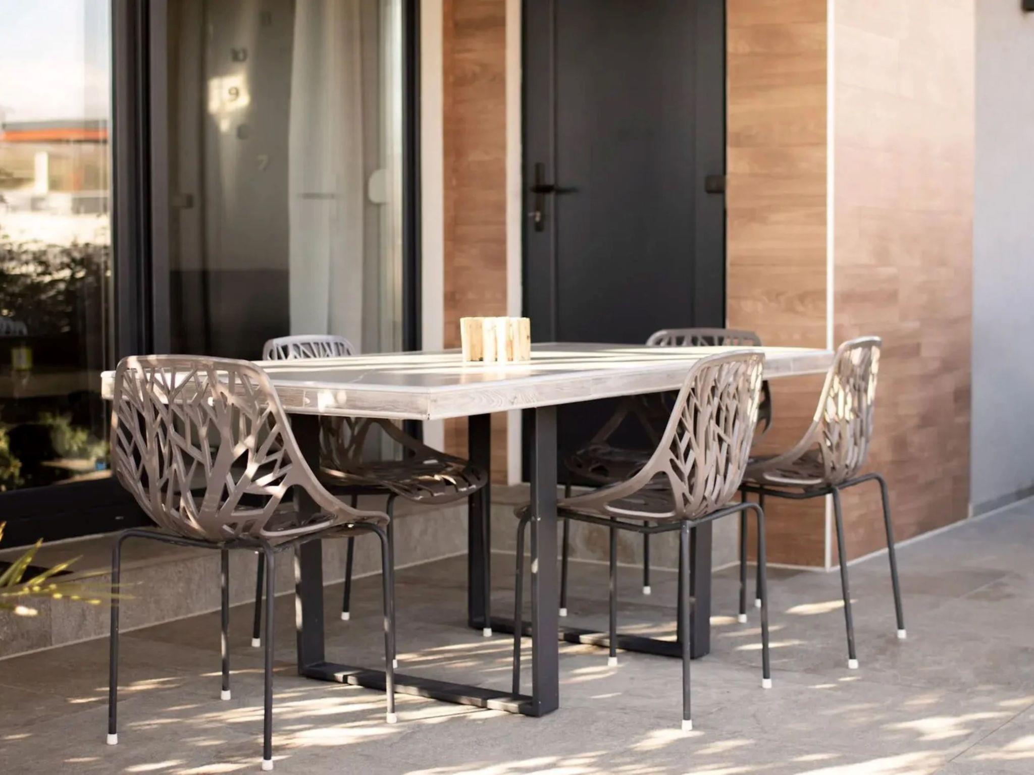 3-room house 100 m2. Beautiful and stylish furnishings: living/dining room with 1 sofabed (150 cm, length 200 cm), satellite TV (flat screen). Exit to the terrace. 1 room with 1 french bed (150 cm, length 200 cm). 1 room with 1 french bed (160 cm, length 200 cm). Exit to the terrace. Open kitchen (oven, dishwasher, 5 gas rings, toaster, kettle, freezer, electric coffee machine). Shower/bidet/WC. Underfloor heating. Deck chairs. Facilities: Internet (WiFi, free). Please note: non-smoking house. Maximum 3 pets/ dogs allowed. Fire extinguisher.