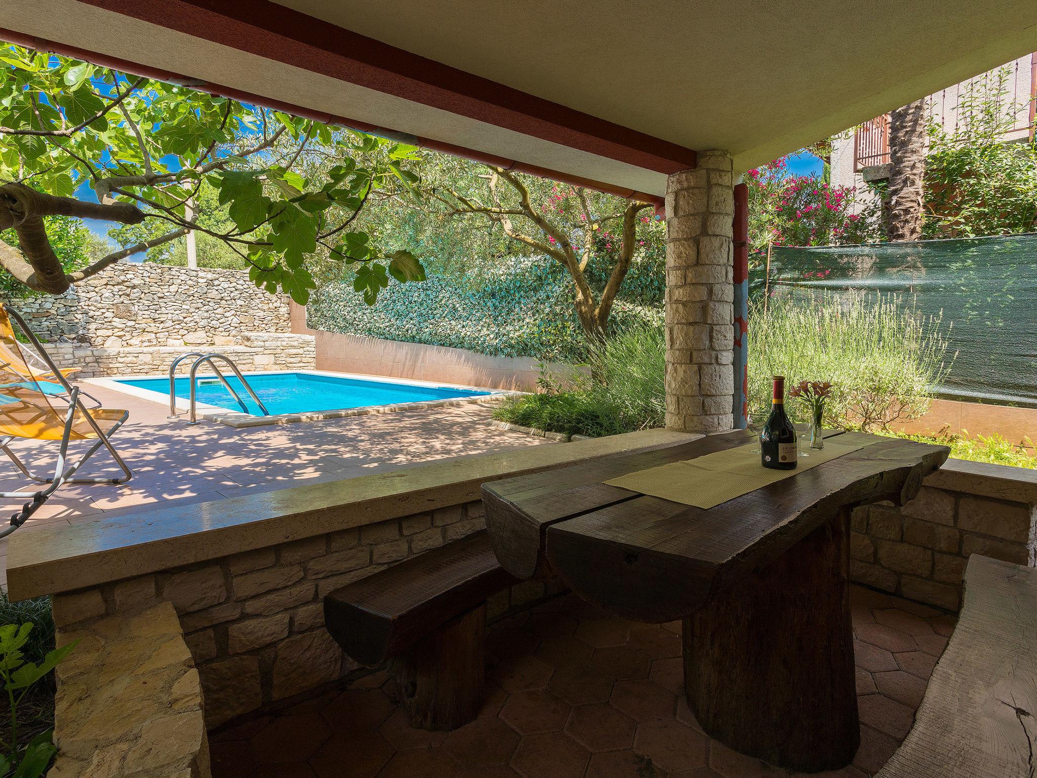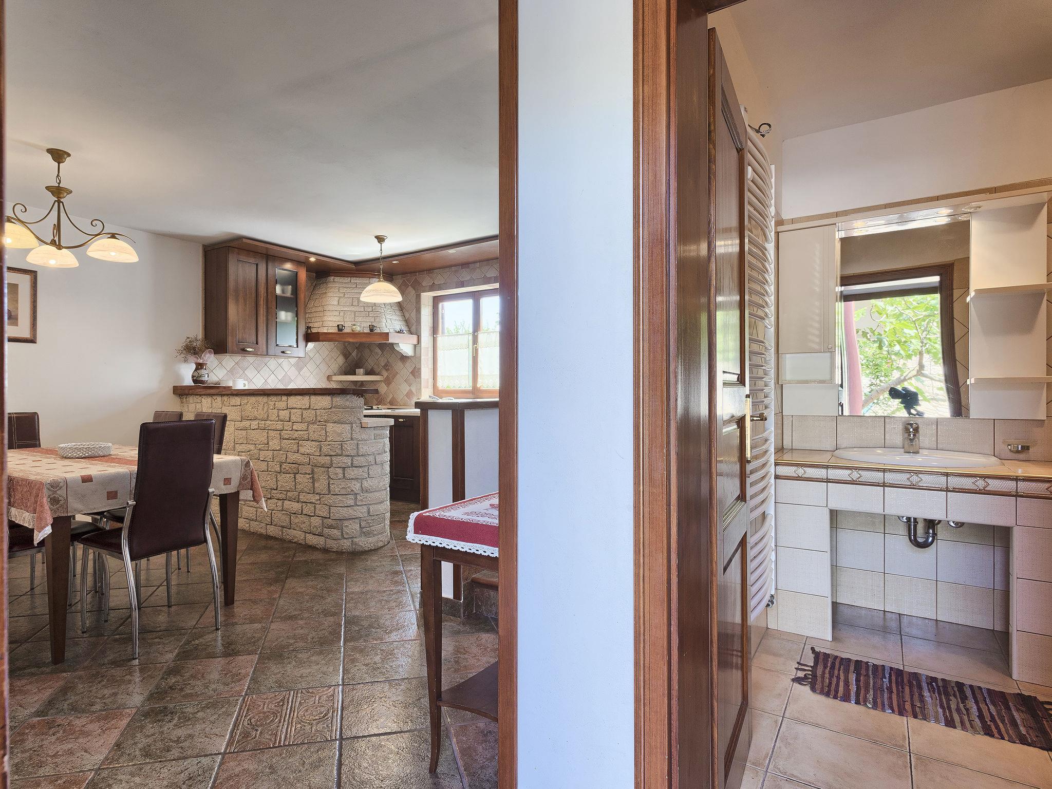 Child friendly semi-detached house "Istra", 2 storeys. In a sunny position, 2.5 km from the sea, 2.5 km from the beach, in the countryside. For shared use: property (fenced), well-kept garden with lawn 50 m2, swimming pool (6 x 3 m, depth 135 cm, seasonal availability: 04.May. - 14.Sep.). Outdoor shower, garden furniture, barbecue. In the house: internet access. Parking on the premises. Shop, restaurant 200 m, bus stop 5.1 km, pebble beach 2.5 km, rocky beach 2.5 km, diving center 2.5 km, indoor swimming pool 5 km. Tennis 5 km, riding stable 6 km, sports centre 5 km, walking paths from the house 3 km, cycle lane 3 km. Please note: Property ref. HR2820.101, 102 is situated on the same property.