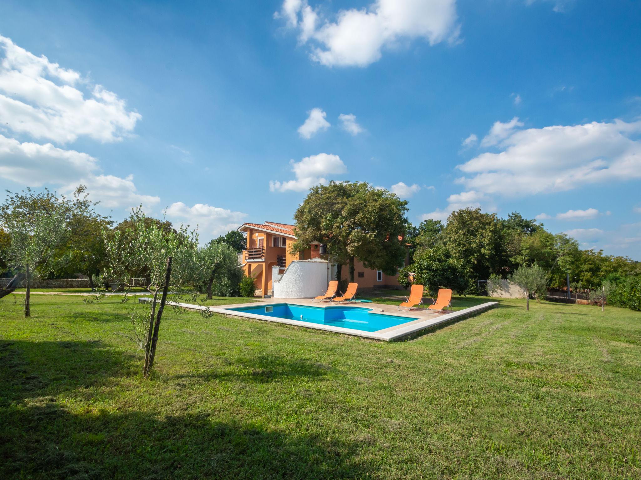 Krnica 22 km from Pula: Apartment house "Iva". In a quiet, sunny position, 2.5 km from the sea, 2.5 km from the beach. For shared use: property 1'000 m2, garden with lawn and plants, swimming pool angular (8 x 4 m, depth 140 cm, seasonal availability: 23.May. - 10.Oct.) with internal staircase. Outdoor shower, terrace (25 m2), garden furniture, barbecue. In the house: internet access. Parking at the house on the premises. Shop, restaurant 200 m, bus stop 5.3 km, pebble beach 5 km, rocky beach 2.5 km, indoor swimming pool 5 km. Tennis 5 km, riding stable 6 km, sports centre 5 km, walking paths from the house 3 km, cycle lane 3 km. Please note: animals in the neighbourhood. The owner can prepare home made meals (on request, extra).