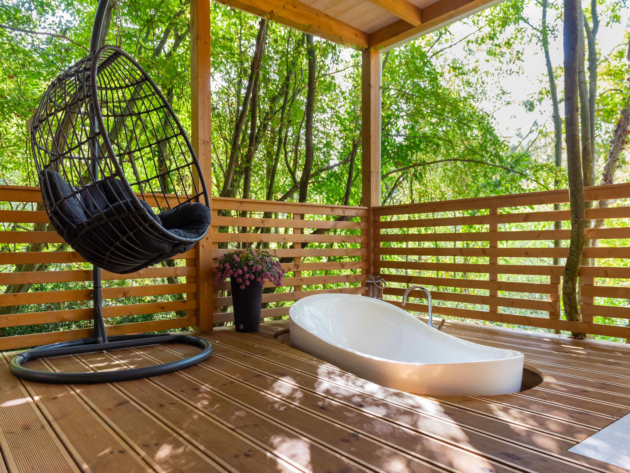 3-room bungalow 31 m2. Living/dining room with satellite TV (flat screen), air conditioning. Exit to the terrace. 1 room with 1 french bed (160 cm, length 200 cm). 1 room with 2 beds (80 cm, length 200 cm). Open kitchen (2 hot plates, microwave, freezer, electric coffee machine). Shower/bidet/WC. Forced-air heating. Terrace 32 m2, roofed. Terrace furniture, deck chairs. View of the garden. Facilities: baby cot (extra), hair dryer. Internet (WiFi, free). Parking (roofed, 1 car) at 15 m. 1 small pet/ dog allowed.