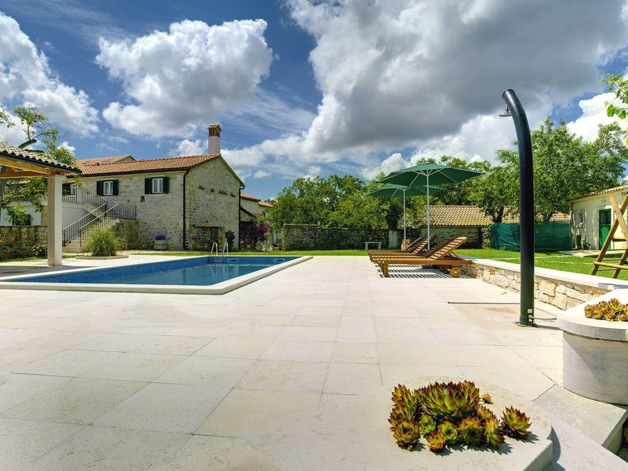 Check out this stunning estate - villa Lucy in Rojnici lies on 3700 square meters of private land, it features a large swimming pool located in the center of the spacious garden with lawn, an outdoor shower, a barbecue and playground with swings. Villa Lucy is a completely renovated Istrian house adapted for renting. The property is fenced by a thick stone wall and has 7 bedrooms, an outdoor dining area, as well as a large indoor space. There are two houses with separate entrances, both are on two floors. In one house there is living room, dining room and kitchen with five bedrooms, three bathrooms and two additional sleeping possibilities in the attic on two separate beds. While in the other, there is also a living room together with kitchen and dining room, but it has two bedrooms and two bathrooms. This villa in Rojnici is made for entertaining - it can host up to 16 guests!