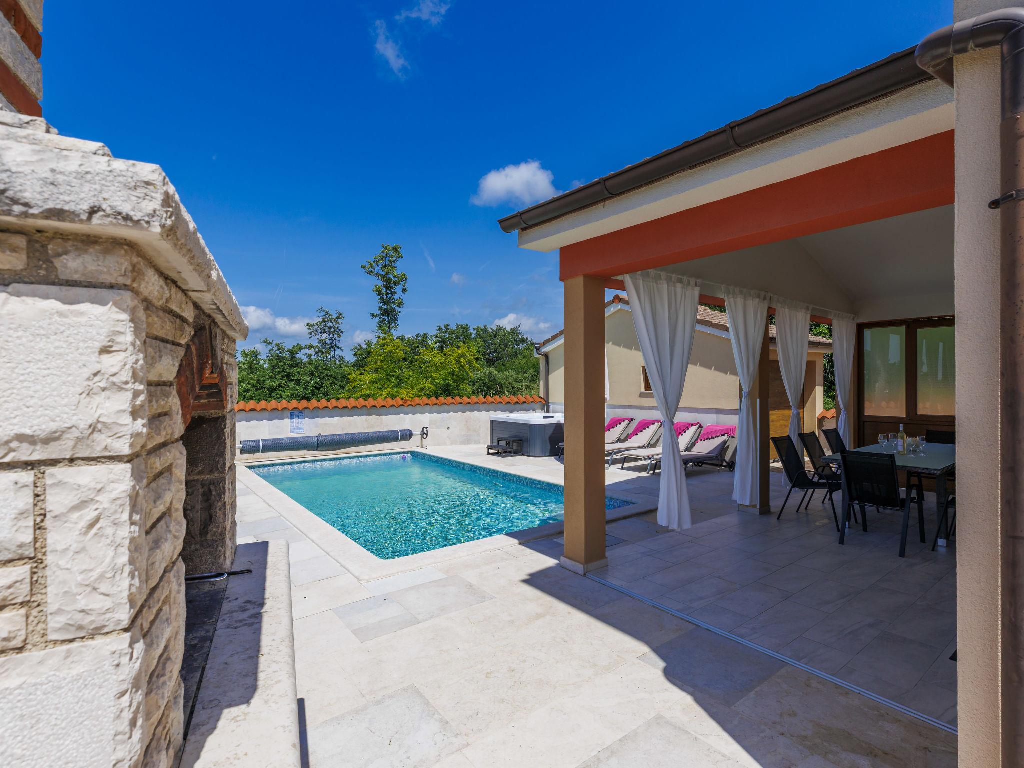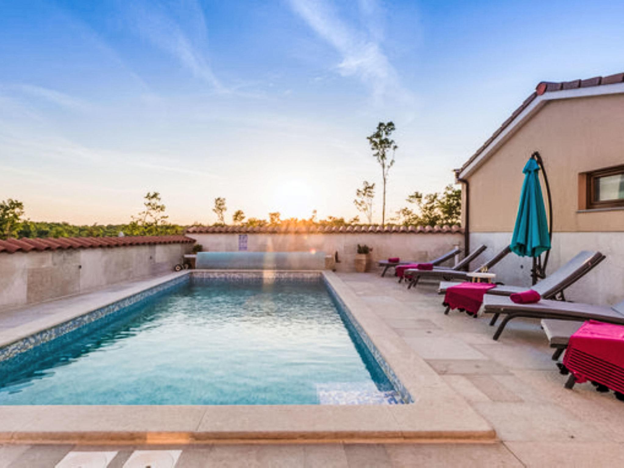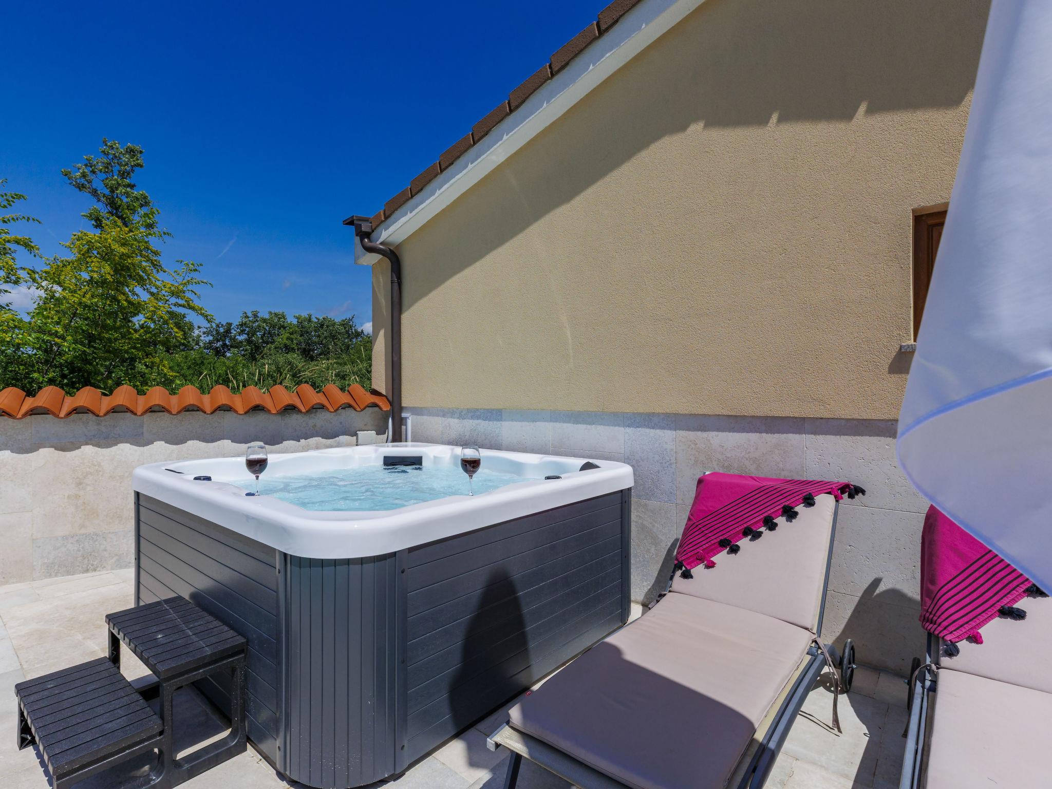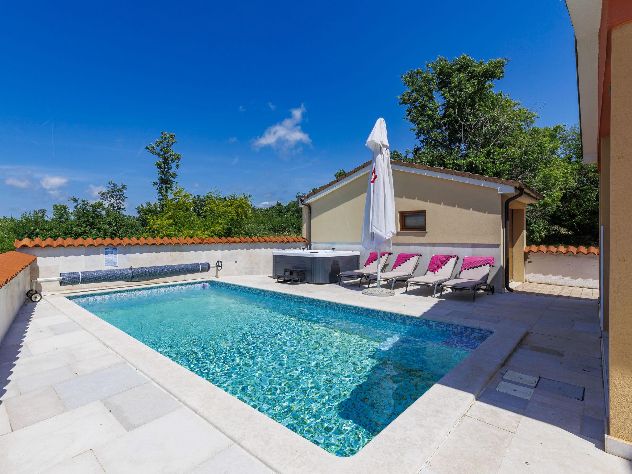 15 km from Pula: Cosy single-family house "Manera". In the hamlet Krvavici 3 km from the centre of Marcana, in a sunny position, 10 km from the sea. Private: property 400 m2 (fenced), small garden with lawn, swimming pool angular, heated (8 x 4 m, depth 140 cm, seasonal availability: 01.Mar. - 01.Dec.) with internal staircase. Outdoor shower, hot tub, terrace (20 m2), barbecue, pool maintenance by the owner/gardener. In the house: internet access. Parking (for 4 cars) at the house on the premises. Shop 3 km, restaurant 3 km, bus stop 3 km, pebble beach 10 km, rocky beach 10 km.