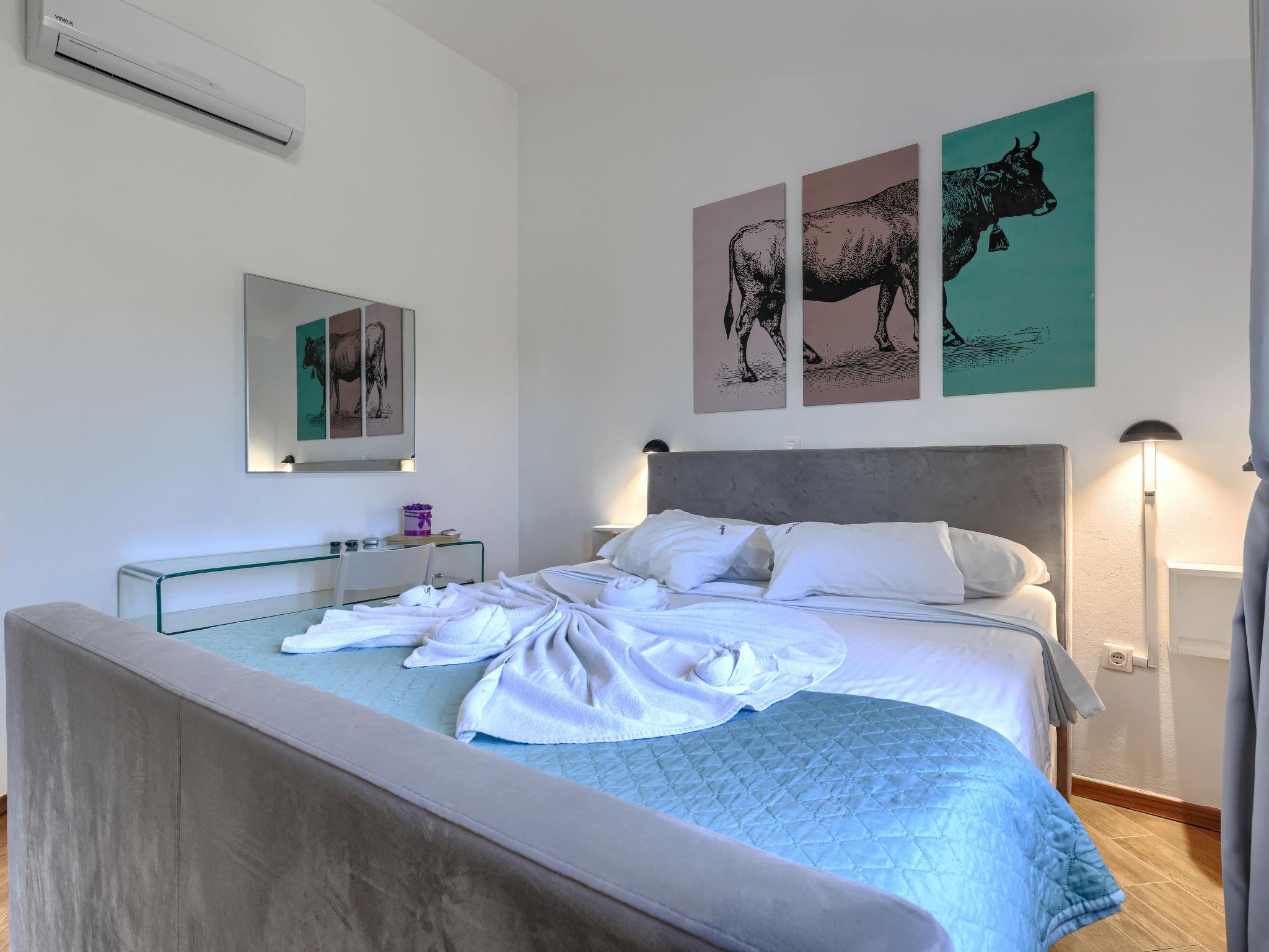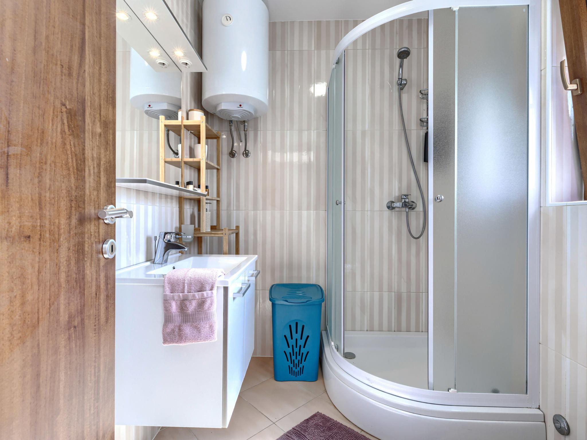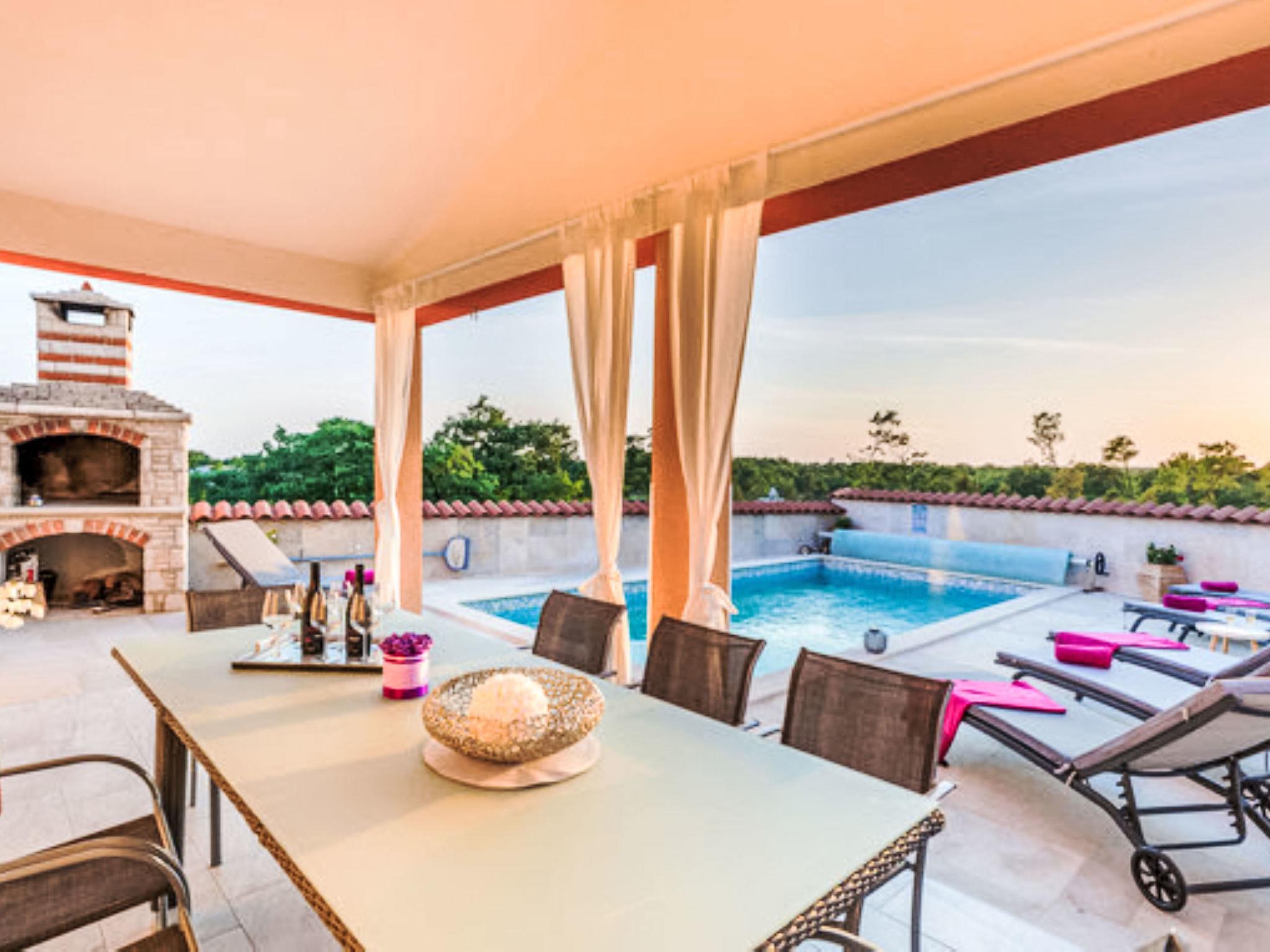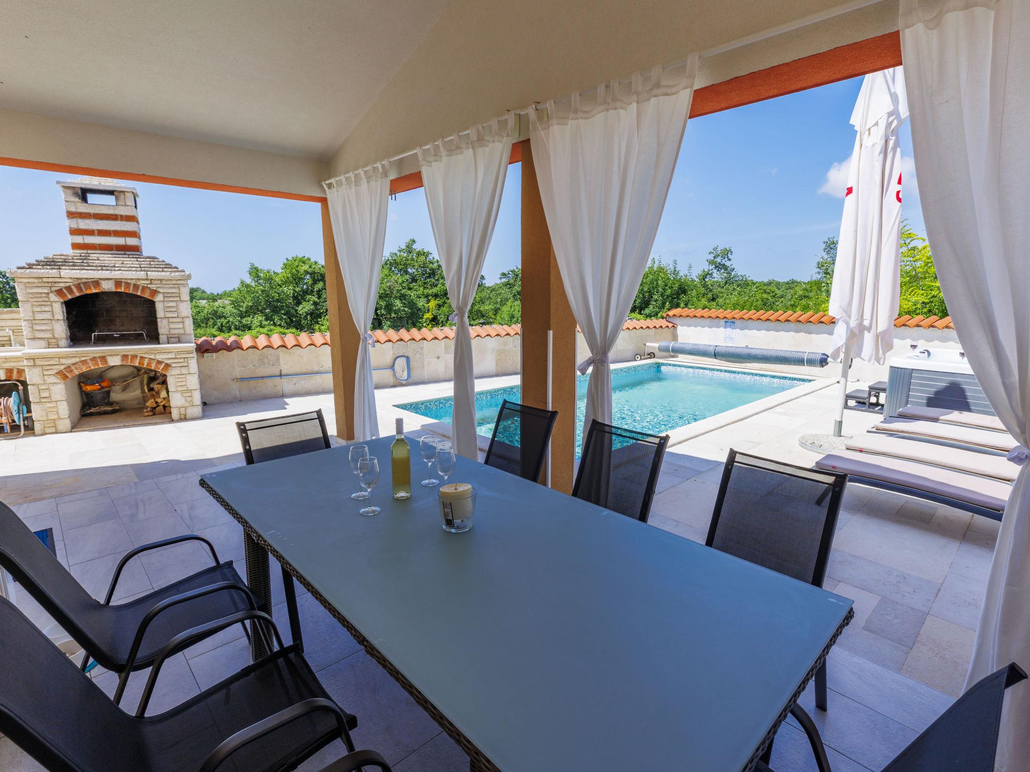 15 km from Pula: Cosy single-family house "Manera". In the hamlet Krvavici 3 km from the centre of Marcana, in a sunny position, 10 km from the sea. Private: property 400 m2 (fenced), small garden with lawn, swimming pool angular, heated (8 x 4 m, depth 140 cm, seasonal availability: 01.Mar. - 01.Dec.) with internal staircase. Outdoor shower, hot tub, terrace (20 m2), barbecue, pool maintenance by the owner/gardener. In the house: internet access. Parking (for 4 cars) at the house on the premises. Shop 3 km, restaurant 3 km, bus stop 3 km, pebble beach 10 km, rocky beach 10 km.