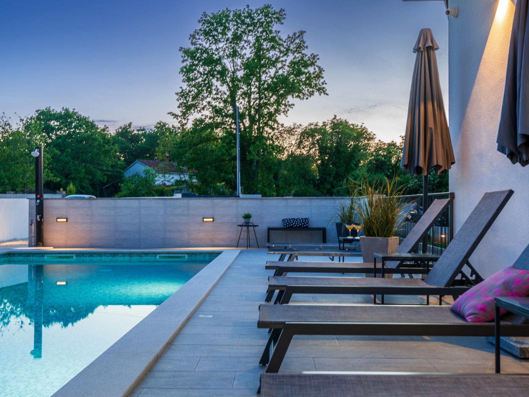 Comfortable single-family house "Villa M". In the hamlet Prodol 5 km from the centre of Marcana, 6 km from the sea. Private: property 1'500 m2 (fenced) with wildlife garden and flowers, swimming pool angular (10 x 4 m, depth 140 cm, seasonal availability: 01.May. - 15.Oct.) with internal staircase. Outdoor shower, garden furniture, barbecue, pool maintenance by the owner/gardener. In the house: internet access, washing machine. Parking (for 3 cars) at the house on the premises. Shop 4 km, restaurant 500 m, bus stop 200 m, pebble beach 6 km, rocky beach 6 km. Riding stable 2 km, walking paths from the house 100 m, cycle lane 150 m.