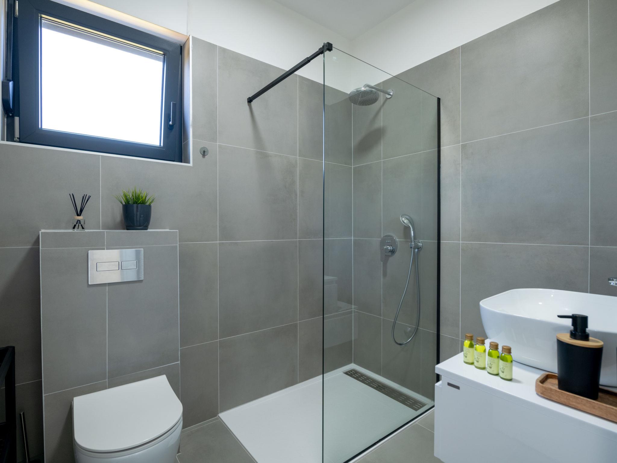 4-room house 130 m2, on the ground floor. Living/dining room with satellite TV (flat screen), air conditioning. Exit to the terrace, to the swimming pool. 2 rooms, each room with 1 french bed (160 cm, length 200 cm), shower/WC and satellite TV (flat screen), air conditioning. 1 room with 1 french bed (160 cm, length 200 cm), satellite TV (flat screen), air conditioning. Open kitchen (oven, dishwasher, 4 ceramic glass hob hotplates, toaster, kettle, microwave, freezer, electric coffee machine). Shower/WC. No heating option. Terrace 26 m2, roofed. Deck chairs. Facilities: safe, hair dryer. Internet (WiFi, free).