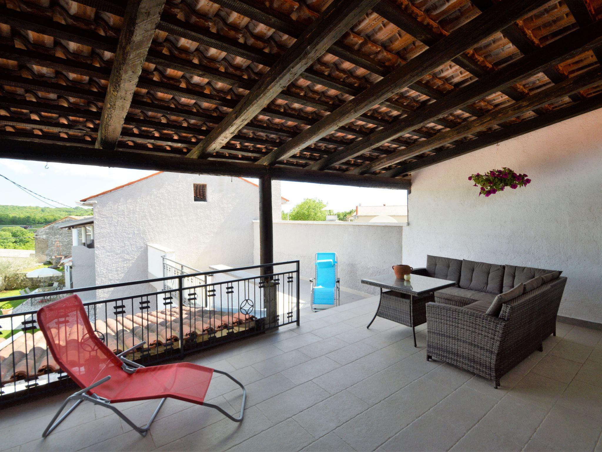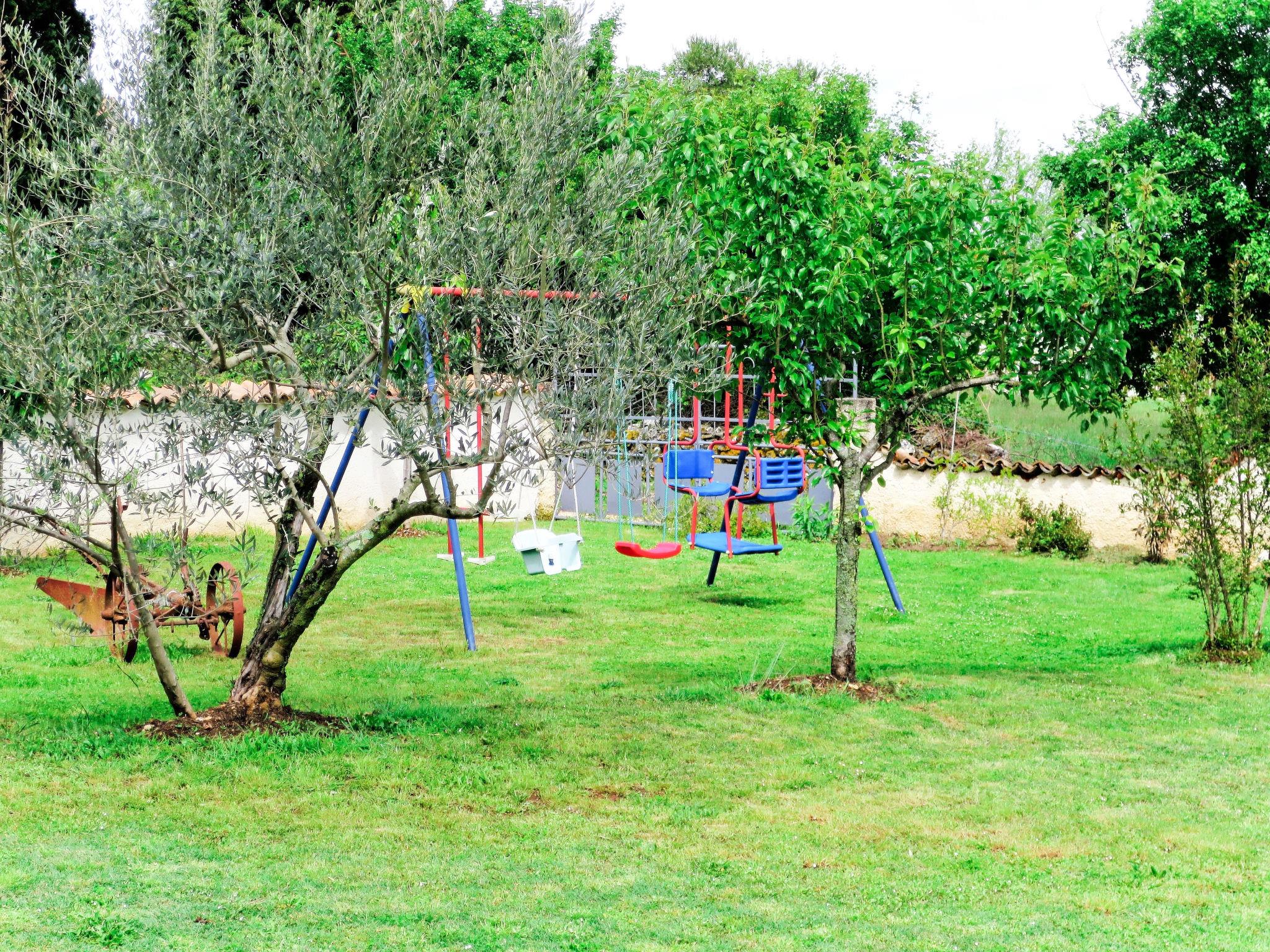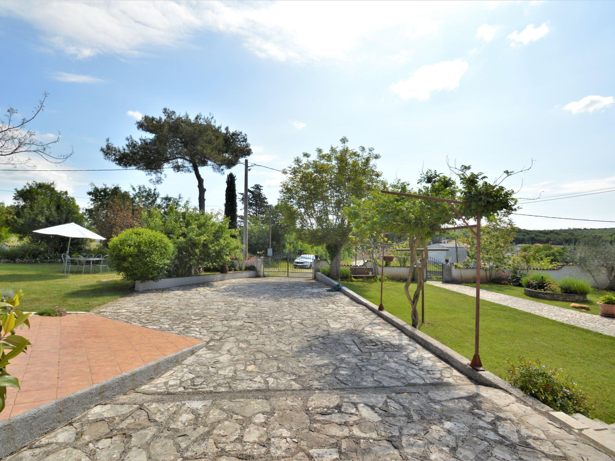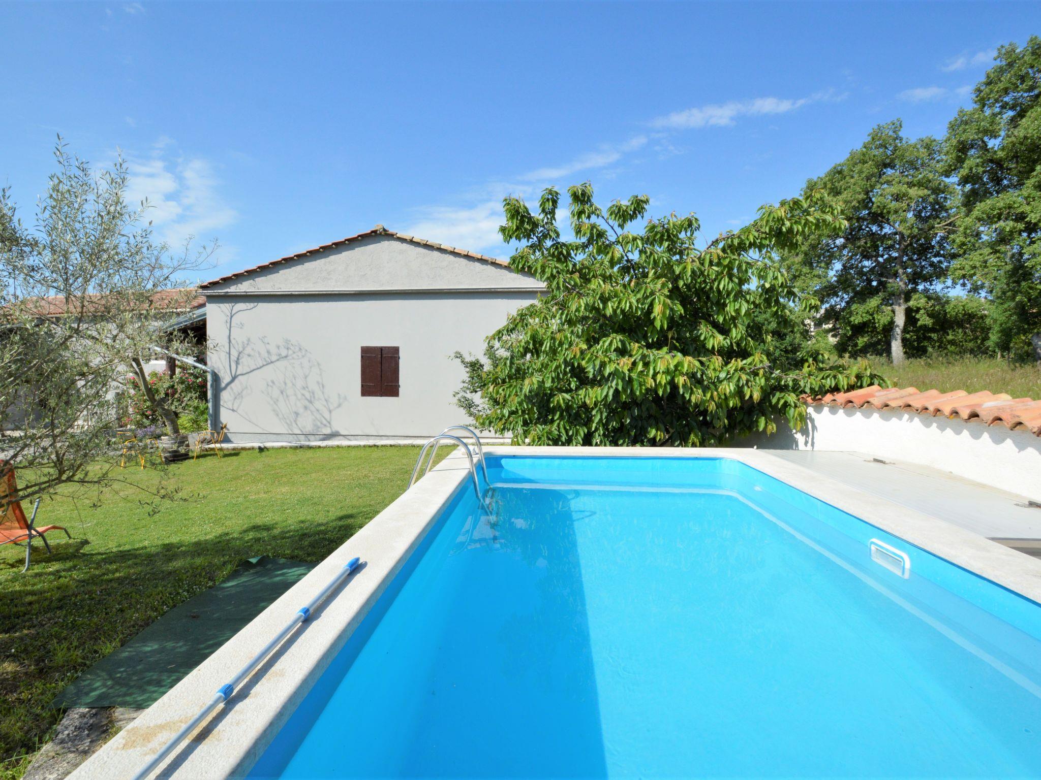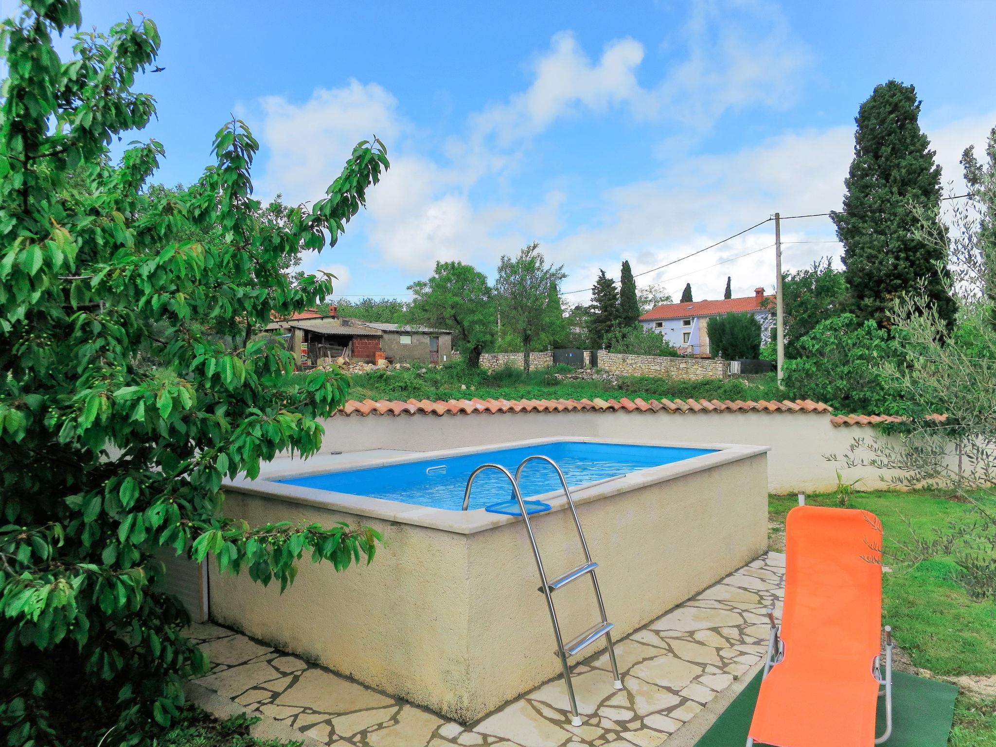Semi-detached house "Latin", 2 storeys. 50 m from the centre of Manjadvorci, 8 km from the centre of Marcana, 18 km from the centre of Pula, 7 km from the sea. Private: property 1'500 m2 (fenced), garden with lawn and trees, swimming pool (above ground) (4 x 2 m, depth 120 cm, seasonal availability: 15.May. - 16.Sep.). Garden furniture, barbecue (swing). In the house: internet access, washing machine. Parking on the premises. Shop 50 m, bus stop 1.8 km, rocky beach 7 km. Riding stable 500 m. Please note: the owner lives on the same property.