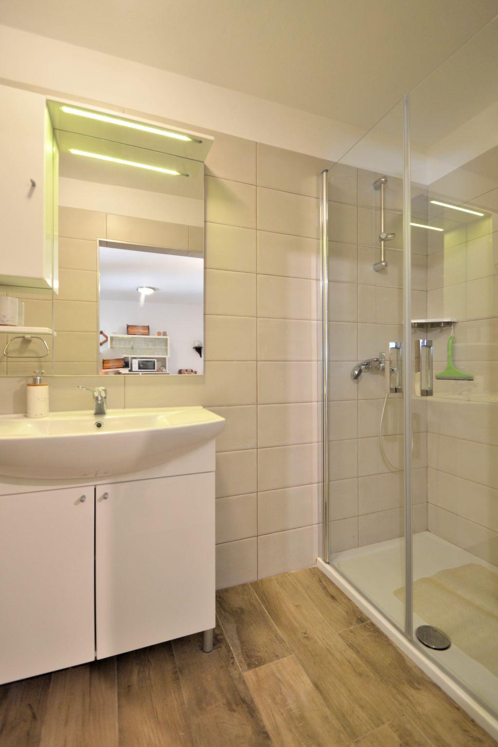2-room semi-detached house 62 m2 on 2 levels. Living/sleeping room with 1 french bed (80 cm, length 200 cm), satellite TV (flat screen). Exit to the terrace. Entrance hall with air conditioning. Open kitchen (1 hot plate, oven, 3 gas rings, toaster, kettle, microwave, freezer, electric coffee machine). Shower/WC. Forced-air heating. Upper floor: 1 open room with 1 bed and 1 double bed. Exit to the terrace. Terrace roofed terrace 22 m2. Terrace furniture, deck chairs. Facilities: baby cot. Internet (WiFi, free). Please note: non-smoking house. Maximum 2 pets/ dogs allowed. 4118