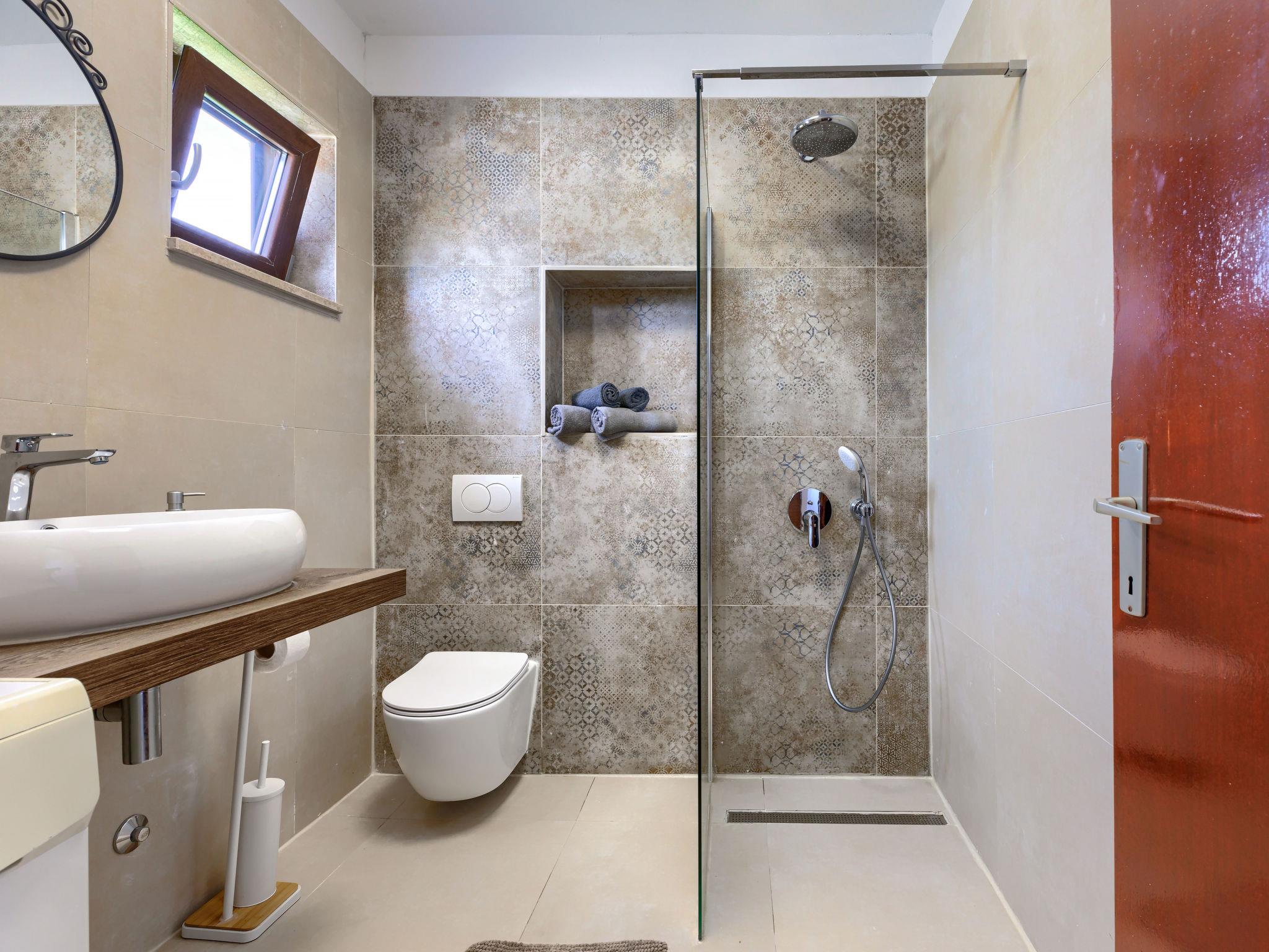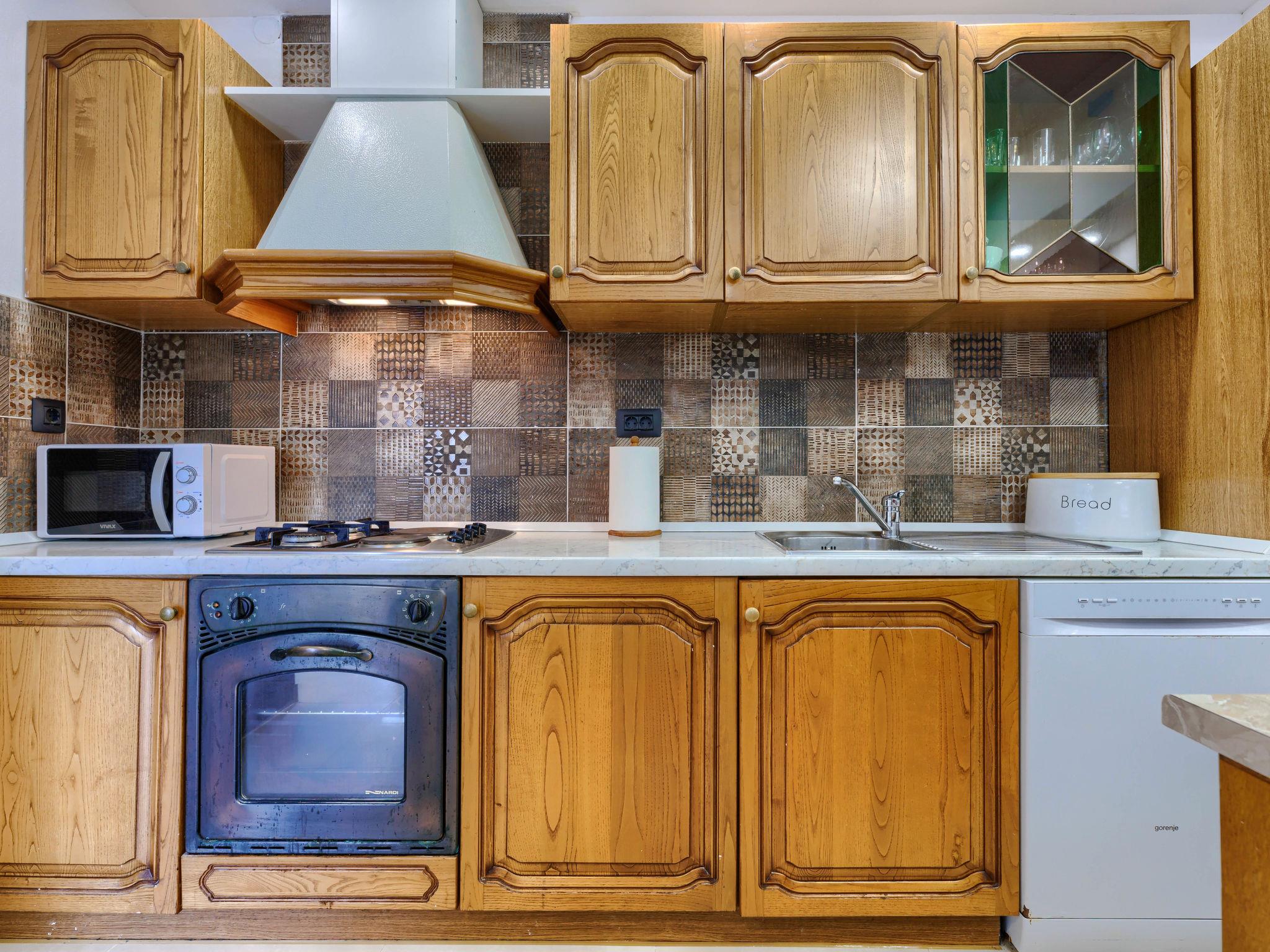 3-room house 100 m2 on 3 levels. Upper floor: living/dining room with 1 sofabed and satellite TV (flat screen), air conditioning. Open kitchen (2 hot plates, oven, dishwasher, 2 gas rings, toaster, kettle, microwave, freezer, electric coffee machine). Shower/WC. 2nd upper floor: 1 room with sloping ceilings with 1 french bed (160 cm, length 200 cm), satellite TV (flat screen). 1 room with sloping ceilings with 1 french bed (160 cm, length 200 cm), shower/WC and satellite TV (flat screen), air conditioning. Exit to the balcony. No heating option. Balcony. Balcony furniture. Facilities: mosquito net, hair dryer. Internet (WiFi, free). Maximum 2 pets/ dogs allowed.