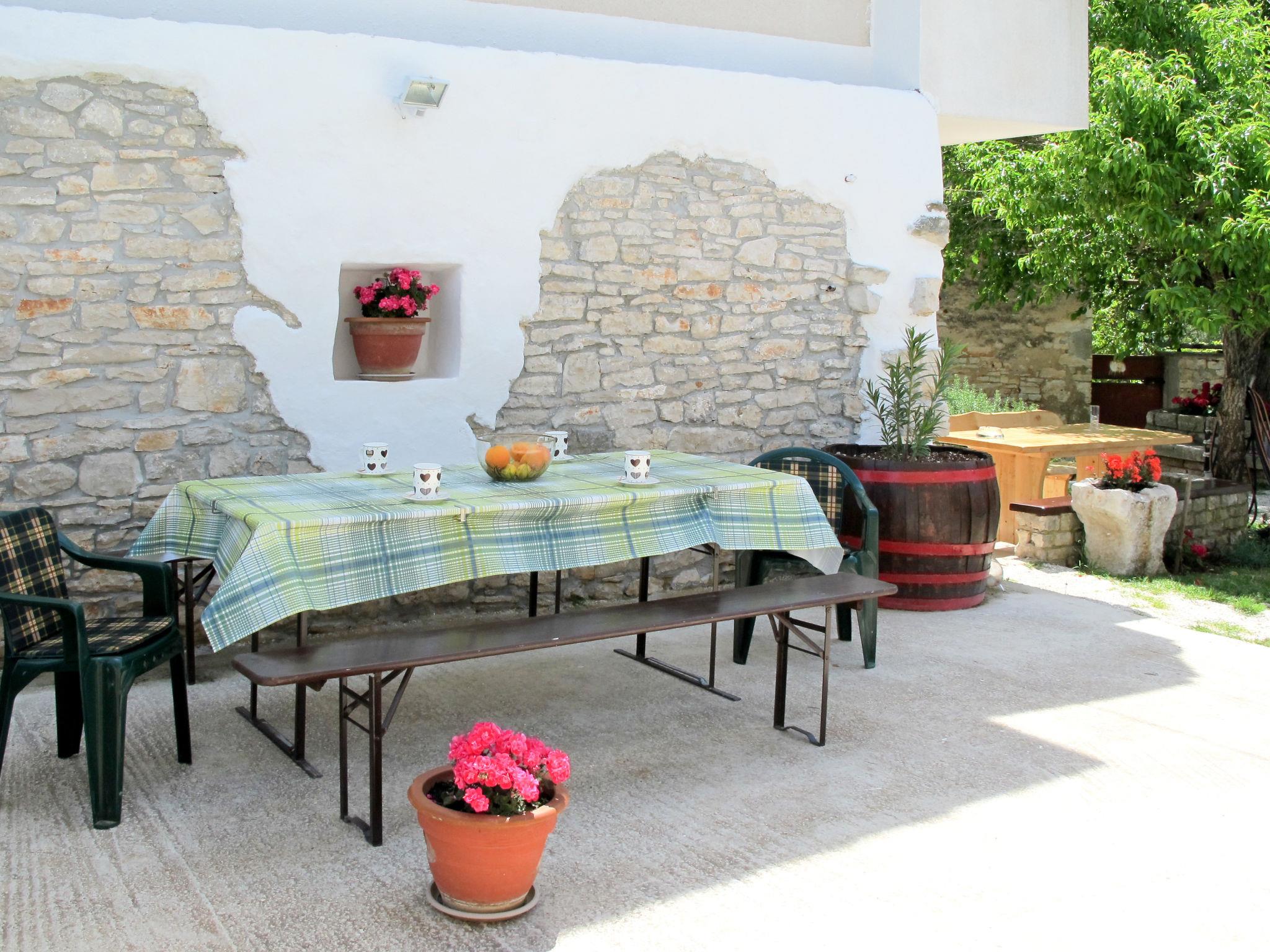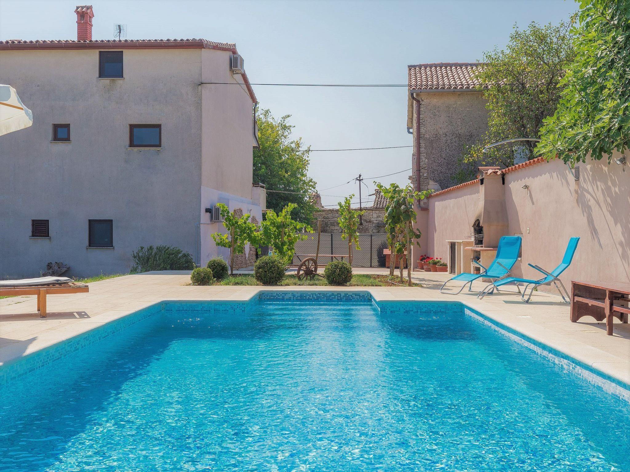 2-family house "Lancin", 3 storeys. 100 m from the centre of Divšici, on the outskirts, 4 km from the centre of Marcana, 10 km from the centre of Vodnjan, 13 km from the sea. Private: property 2'000 m2 with lawn and trees, swimming pool (8 x 4 m, depth 150 cm, seasonal availability: 01.May. - 06.Nov.) with internal staircase. Terrace (15 m2), garden furniture, barbecue. In the house: internet access, washing machine. Parking (for 2 cars) on the premises. Shop 4 km, bus stop 3.6 km, pebble beach 13 km. Please note: the owner lives on the same property.