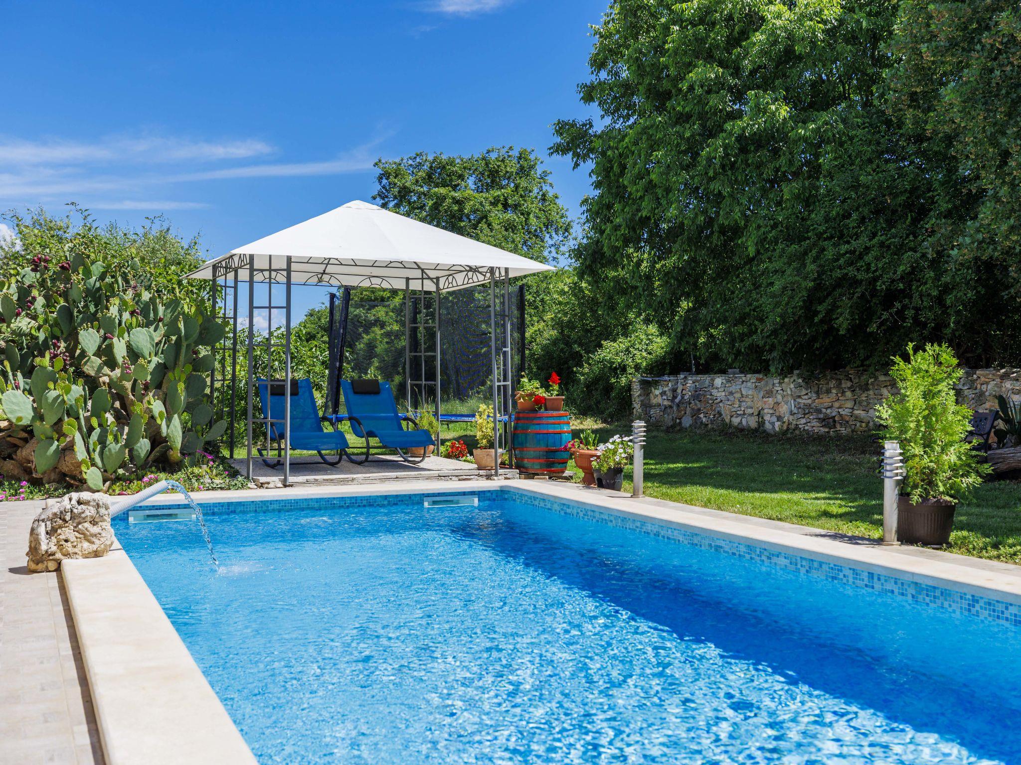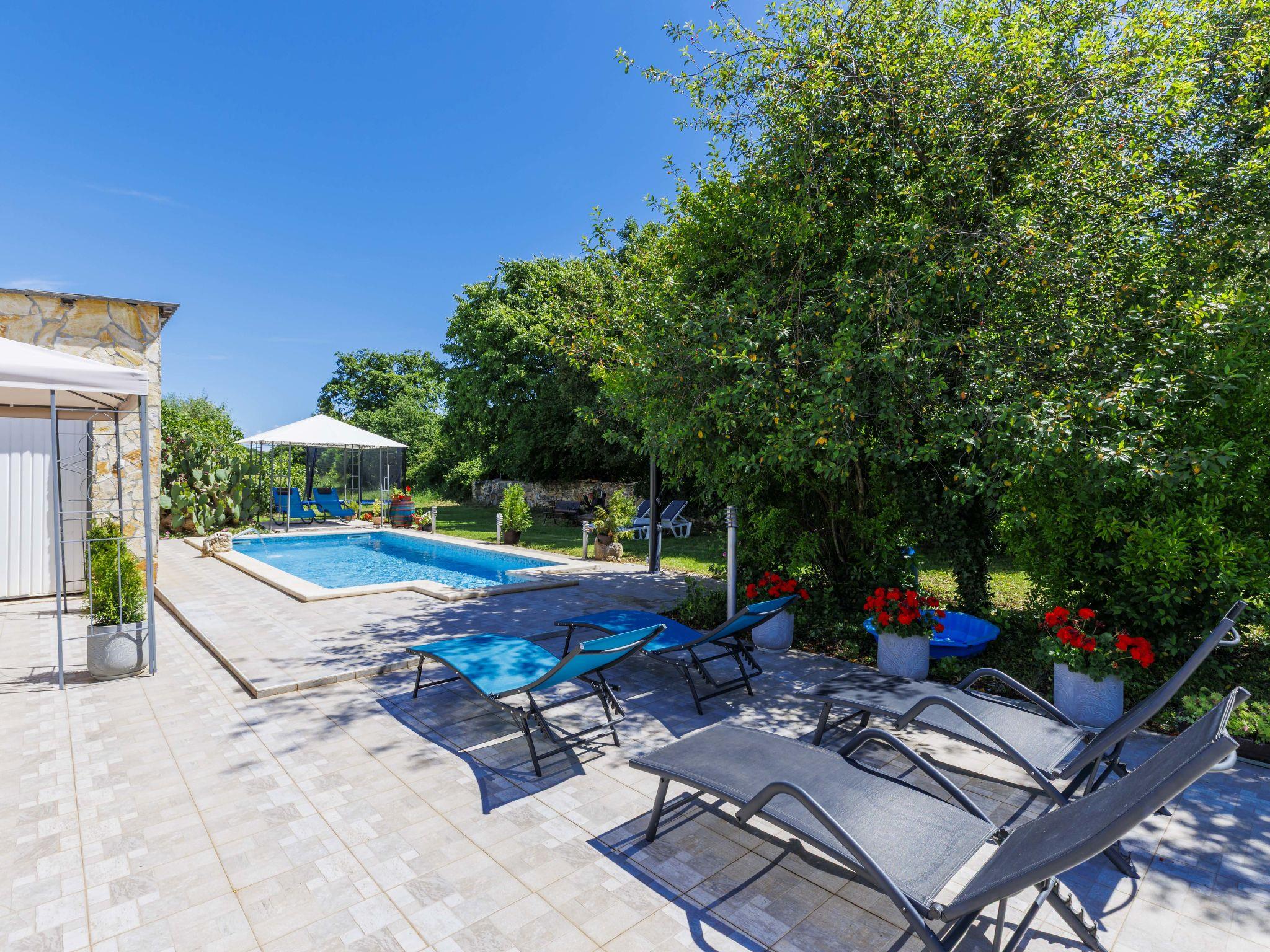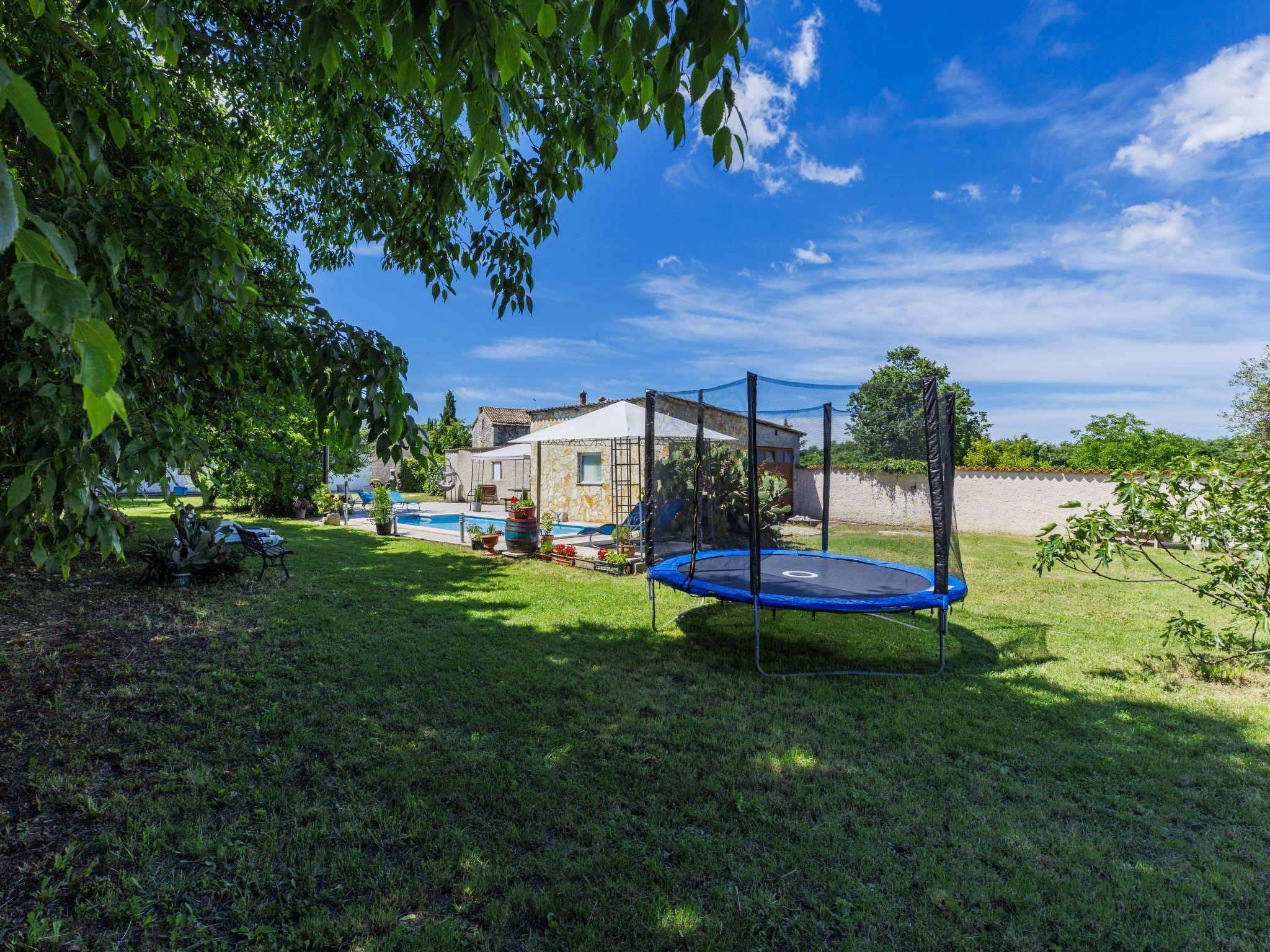 Terraced house "Pinezici", 2 storeys. In the hamlet Pinezici 2 km from the centre of Marcana, 12 km from the centre of Pula, 11 km from the centre of Duga Uvala, 11 km from the sea. For shared use: property 2'000 m2 with lawn and trees, swimming pool (6 x 4 m, depth 120 cm, seasonal availability: 20.May. - 30.Sep.) with internal staircase. Terrace, garden furniture. In the house: internet access, trampoline, washing machine. Parking (for 2 cars) on the premises. Shop 2 km, restaurant 2 km, bus stop 2 km, pebble beach 13 km, rocky beach 11 km. Marina 16 km.