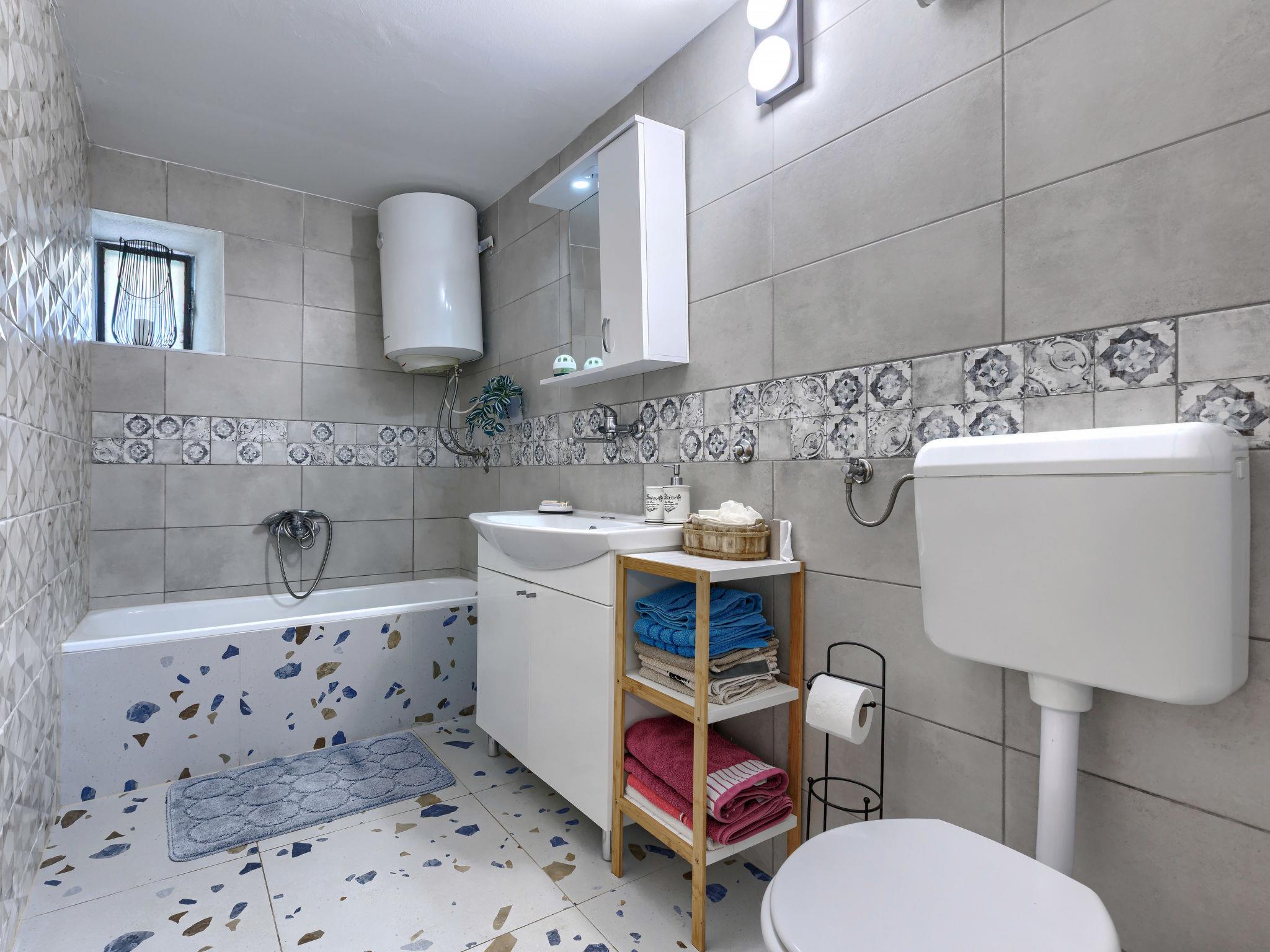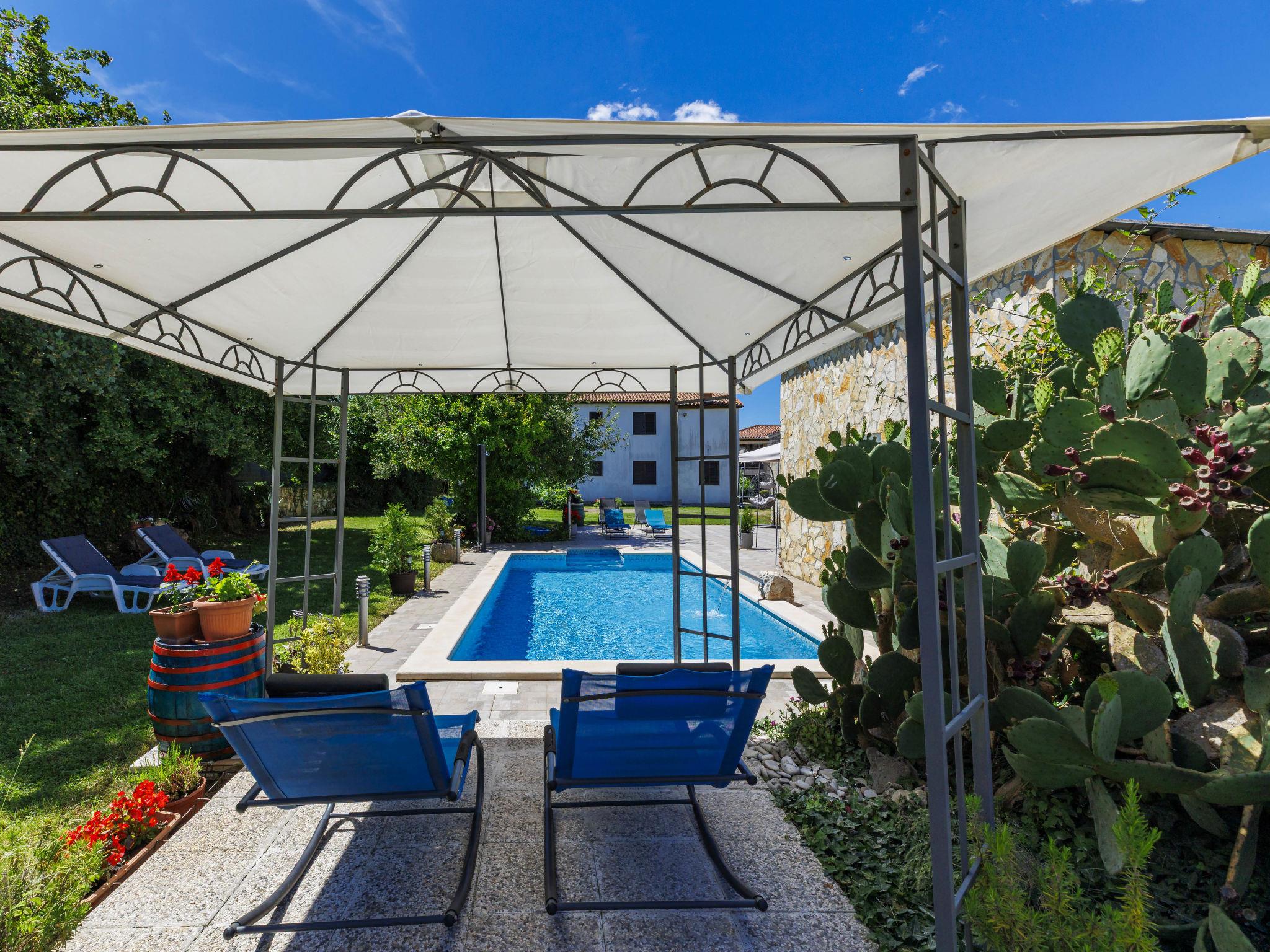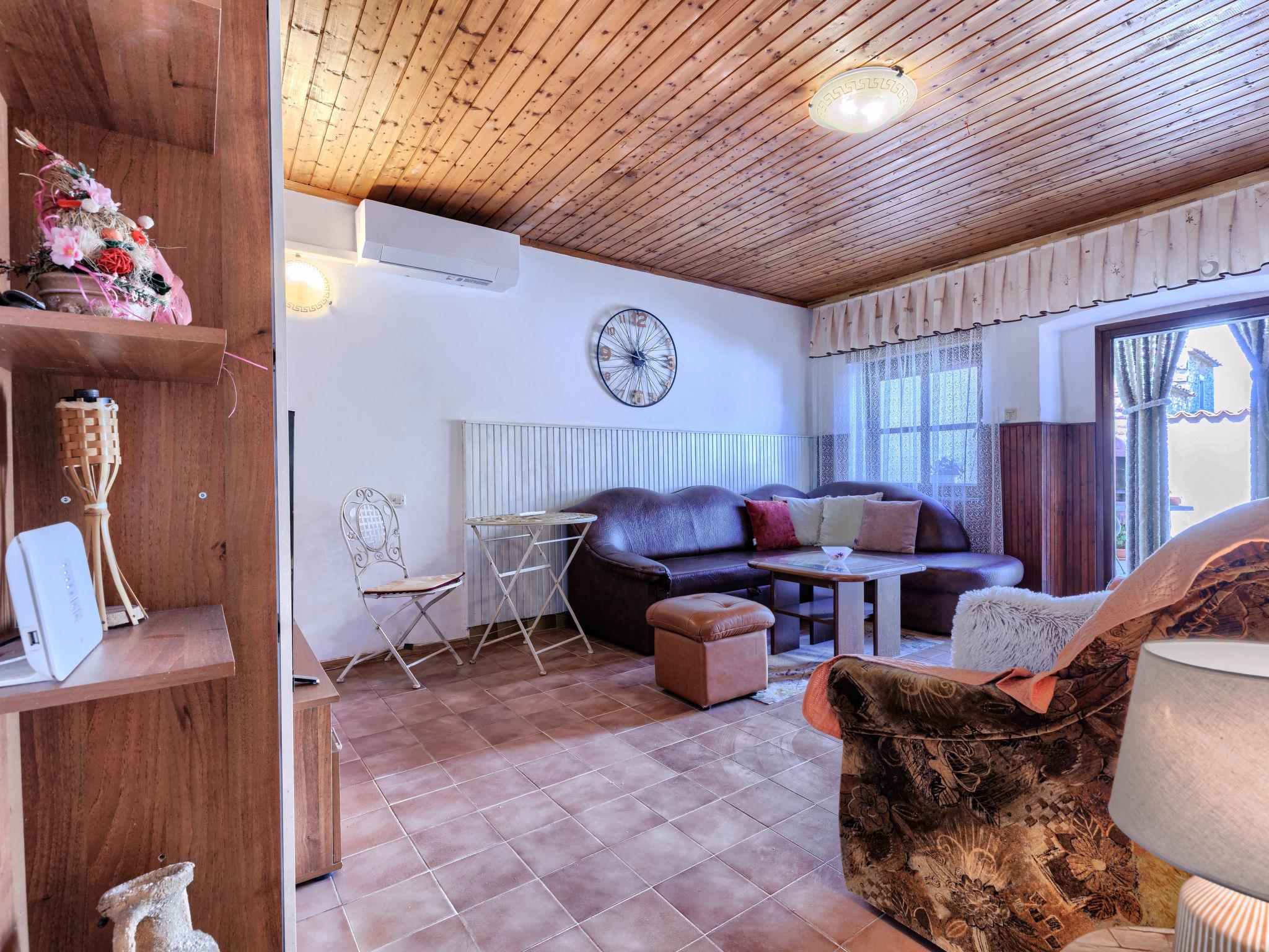 Terraced house "Pinezici", 2 storeys. In the hamlet Pinezici 2 km from the centre of Marcana, 12 km from the centre of Pula, 11 km from the centre of Duga Uvala, 11 km from the sea. For shared use: property 2'000 m2 with lawn and trees, swimming pool (6 x 4 m, depth 120 cm, seasonal availability: 20.May. - 30.Sep.) with internal staircase. Terrace, garden furniture. In the house: internet access, trampoline, washing machine. Parking (for 2 cars) on the premises. Shop 2 km, restaurant 2 km, bus stop 2 km, pebble beach 13 km, rocky beach 11 km. Marina 16 km.