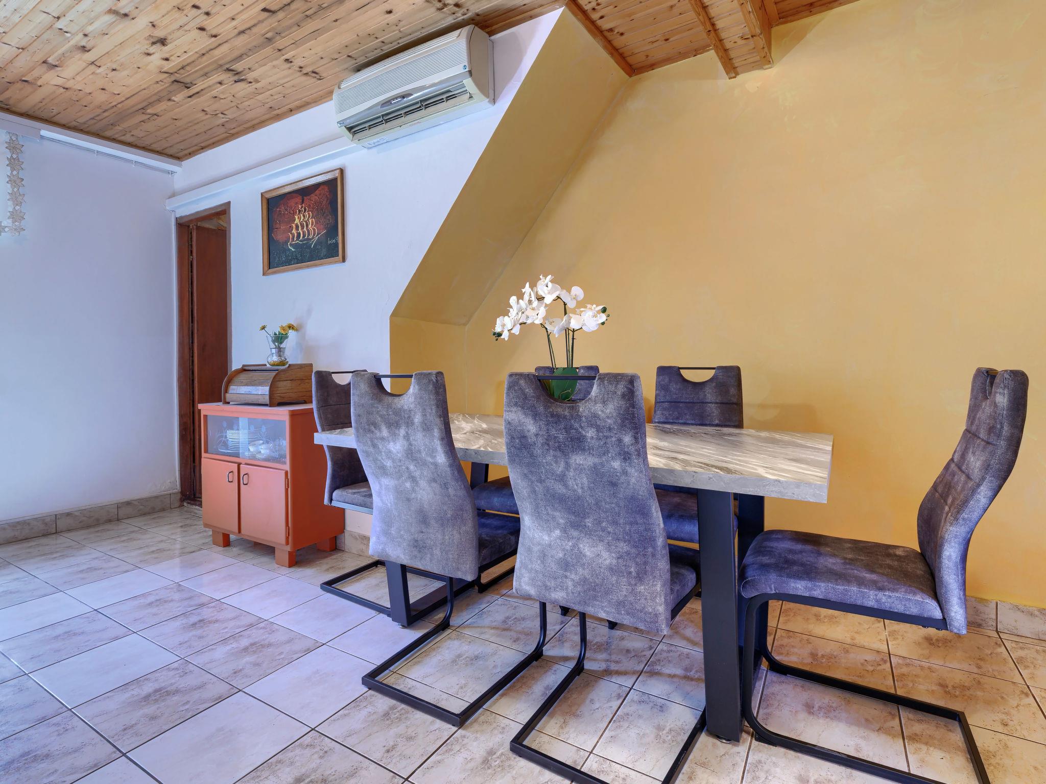 3-room terraced house 95 m2 on 2 levels. Living room with 1 sofabed and satellite TV. Exit to the terrace. Dining room with air conditioning. Exit to the terrace. Kitchen (1 hot plate, oven, dishwasher, 3 gas rings, toaster, kettle, microwave, freezer, electric coffee machine). Bath/bidet/WC, shower/WC. Upper floor: (steep stair), 1 room with 1 french bed and air conditioning. 1 room with 1 bed, 1 french bed and air conditioning. No heating option. Terrace 30 m2 partly roofed. Terrace furniture, barbecue, deck chairs. Facilities: baby cot (extra). Internet (WiFi, free). Please note: non-smoking house. Maximum 1 pet/ dog allowed.