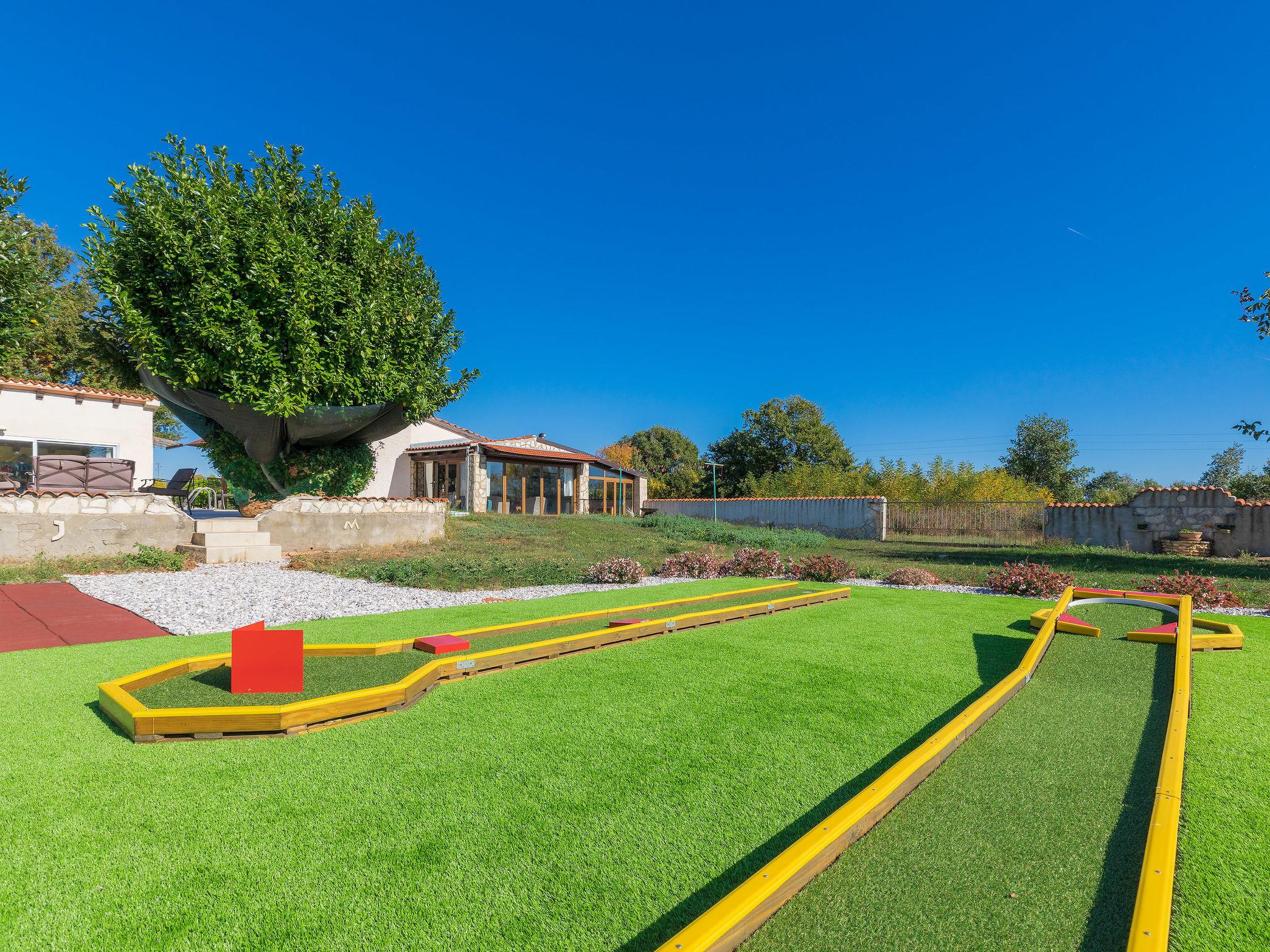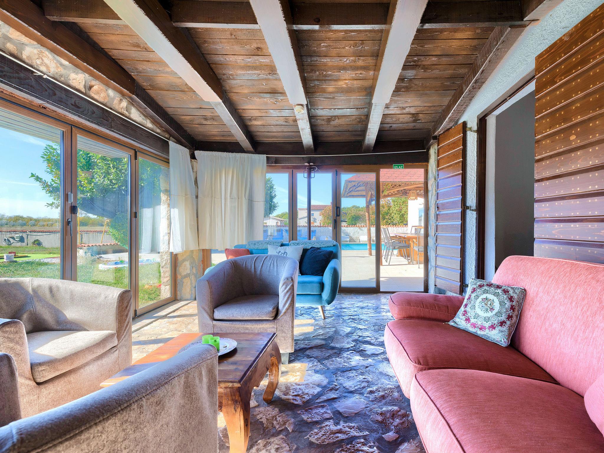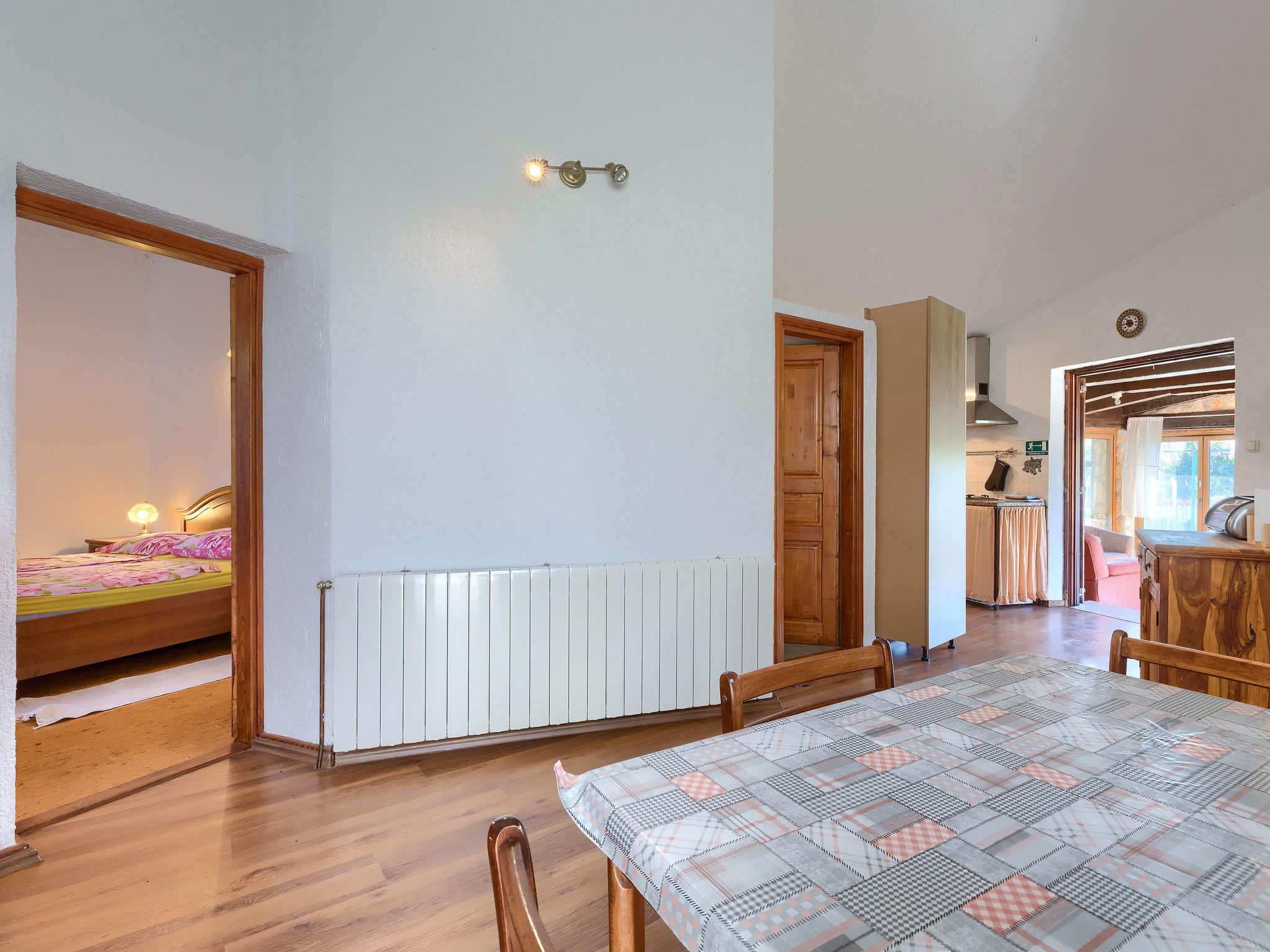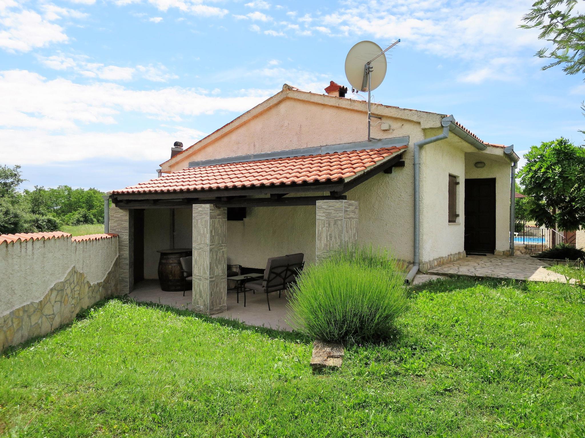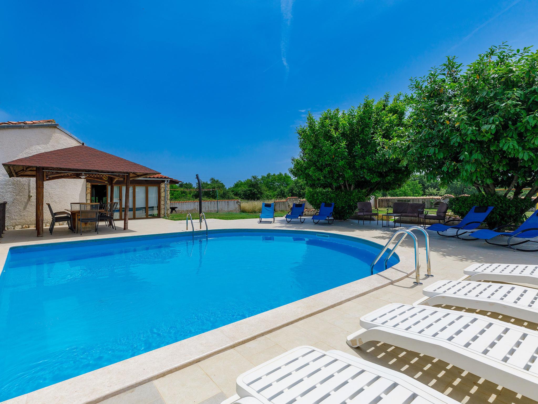 House "Jadranka", 2 storeys. Property composed of main house and outbuilding, in the hamlet Radeki-Glavica 6 km from the centre of Marcana, 10 km from the centre of Pula, 20 km from the centre of Medulin, 15 km from the sea. Private: property 1'300 m2 (fenced) with lawn and trees, swimming pool (46 m2, depth 150 cm, seasonal availability: 13.May. - 30.Sep.). Unconventional pool shape. Outdoor shower, arbour, terrace, garden furniture (slide, swing). In the house: internet access, washing machine. Motor access to the house (100 m via unmade road). Parking (for 3 cars) at the house. Shop 2.5 km, supermarket 10 km, restaurant 6 km, bus stop 2 km, pebble beach 15 km. Marina 15 km, minigolf 20 m. Please note: airfield 3 km from the property. The unit consists of a bungalow and the main house rented as one unit.