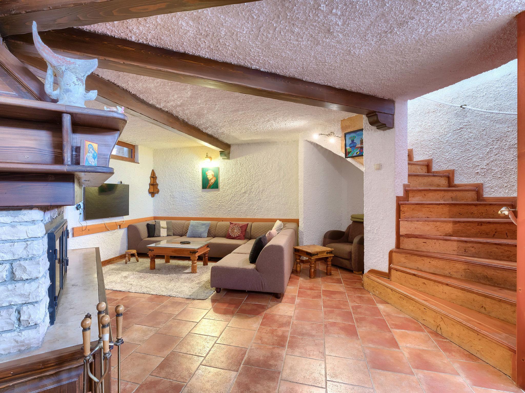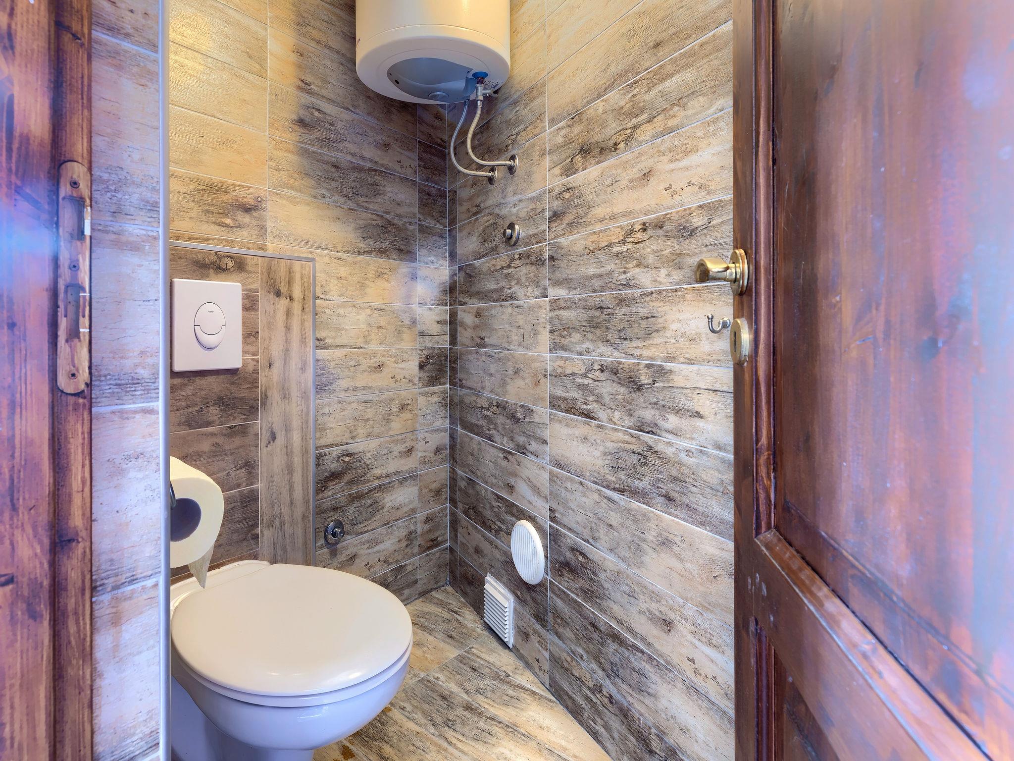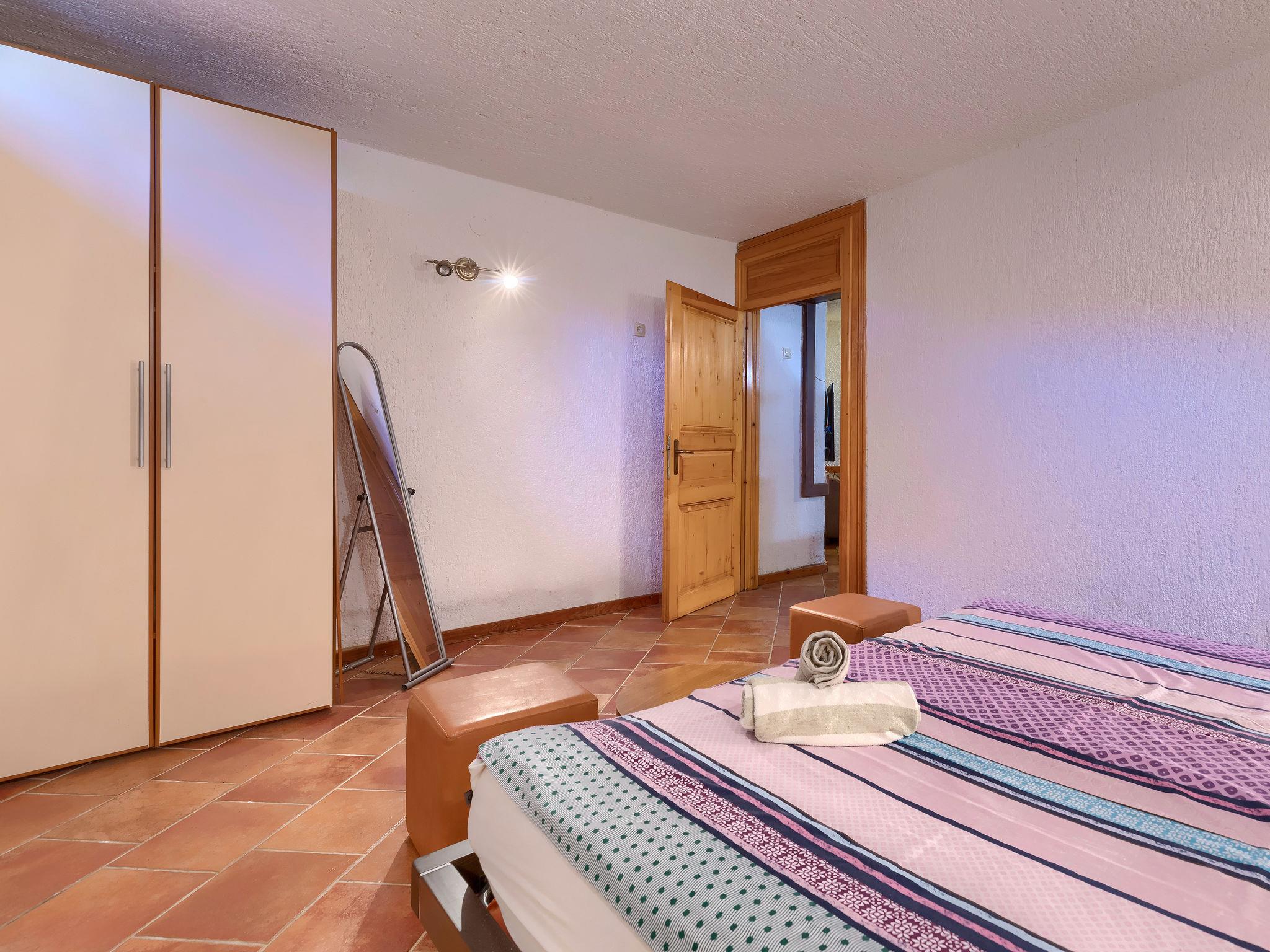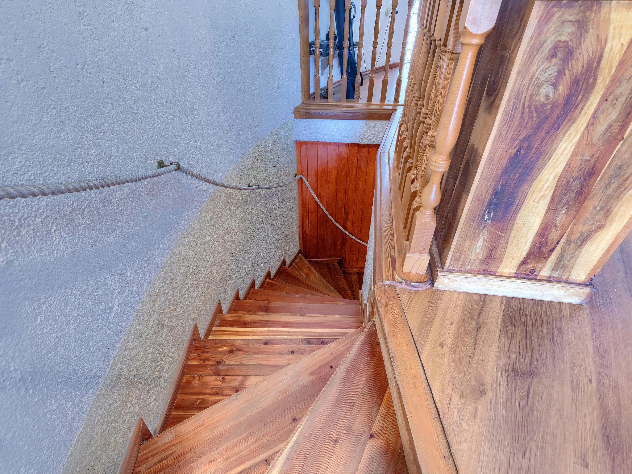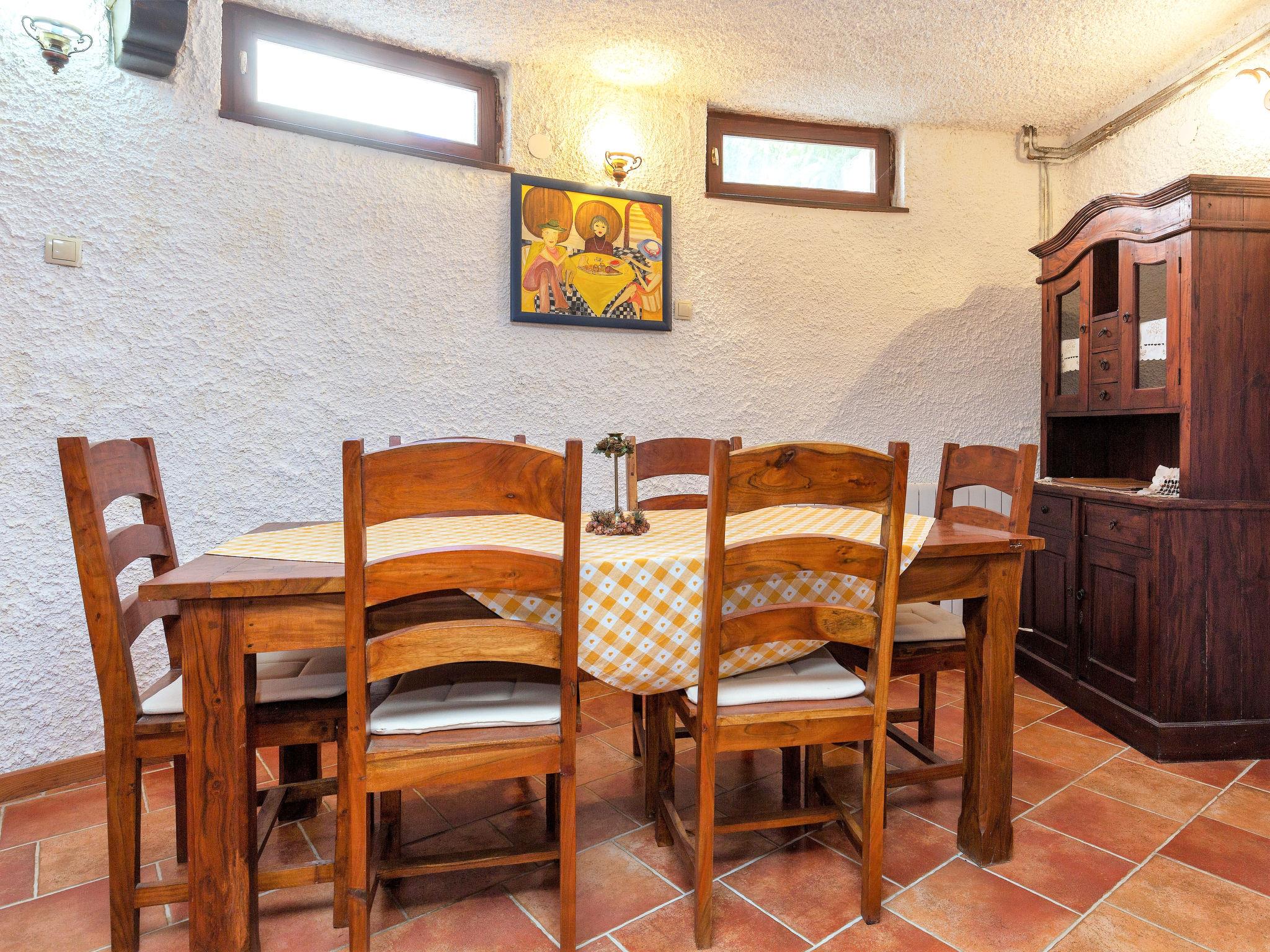 6-room house 200 m2 on 2 levels. Dining room with air conditioning. Exit to the terrace, to the swimming pool. 1 room with 2 french beds (160 cm, length 200 cm), TV. 1 room with panoramic window with 1 french bed (160 cm, length 200 cm), shower/WC and air conditioning. Exit to the terrace, to the swimming pool. Open kitchen (2 hot plates, oven, dishwasher, 2 gas rings, toaster, kettle, microwave, electric coffee machine). 2 showers/WC, sep. WC. On the lower ground floor: (spiral staircase) living/dining room with open-hearth fireplace (only for decoration), satellite TV. 1 room with 1 french bed (160 cm, length 200 cm). Terrace roofed terrace. Terrace furniture, barbecue, deck chairs (8). View of the swimming pool. Facilities: iron. Internet (WiFi, free). Please note: non-smoking house. Maximum 1 pet/ dog allowed. No internal connecting door between the separated properties. Small, detached house: living / sleeping room and kitchenette. Main house with living area, 2 dining areas, open kitchen and 2 bedrooms on the ground floor and living area / dining area and 1 bedroom in the lower ground floor. Small, high placed windows on the lower ground floor.