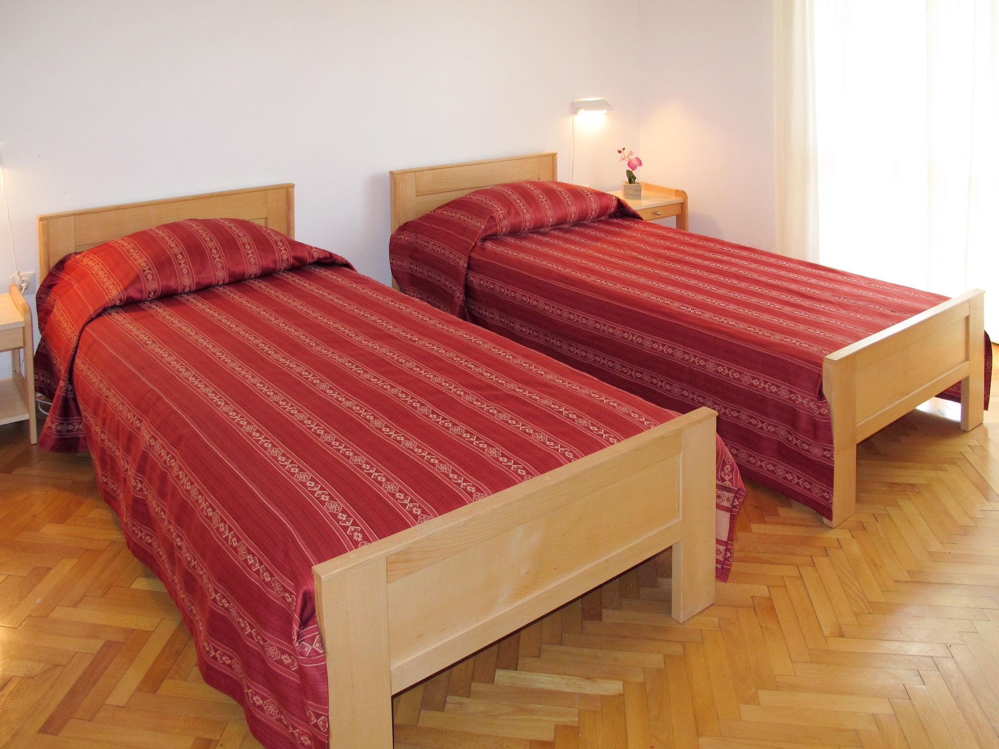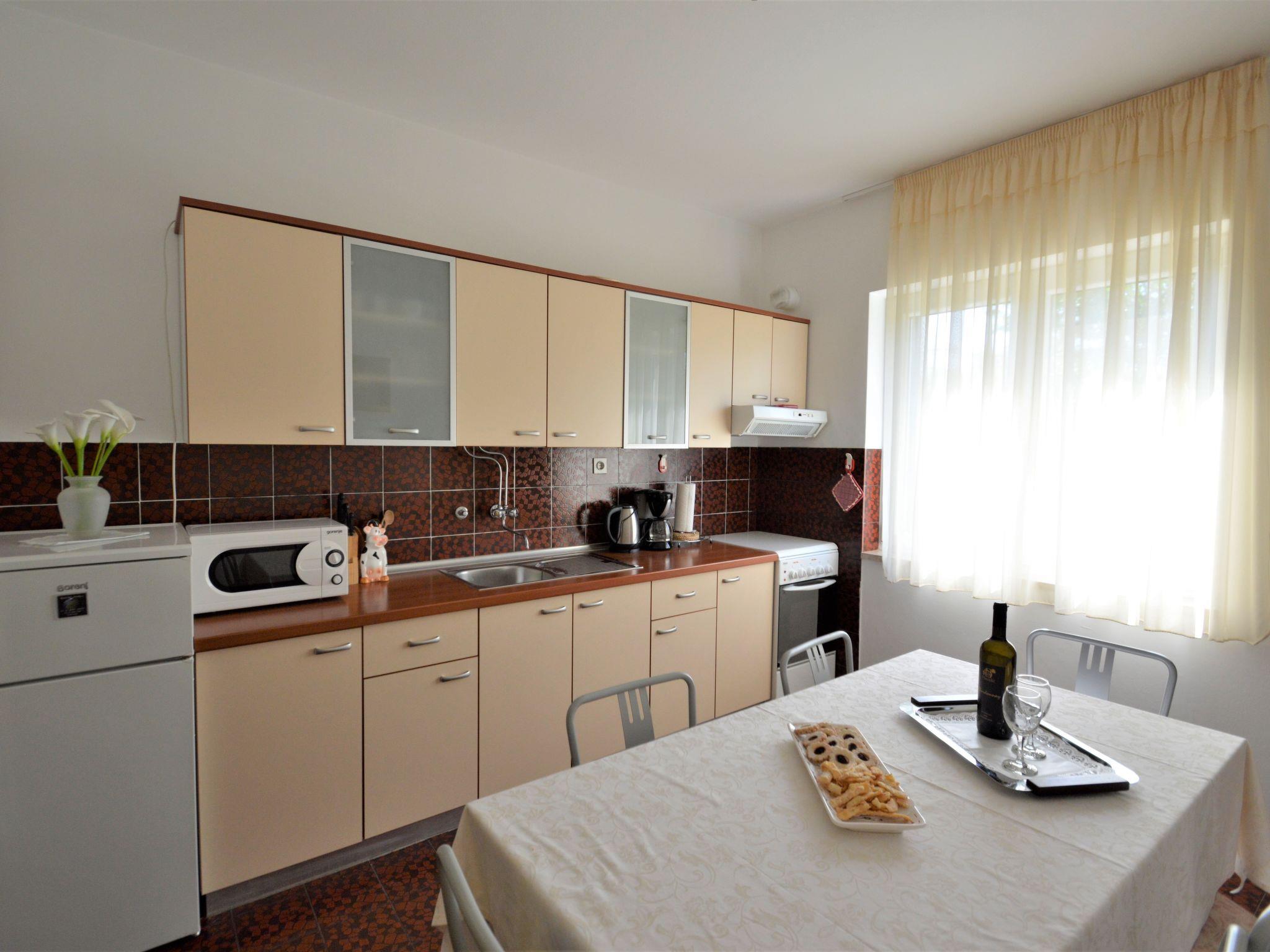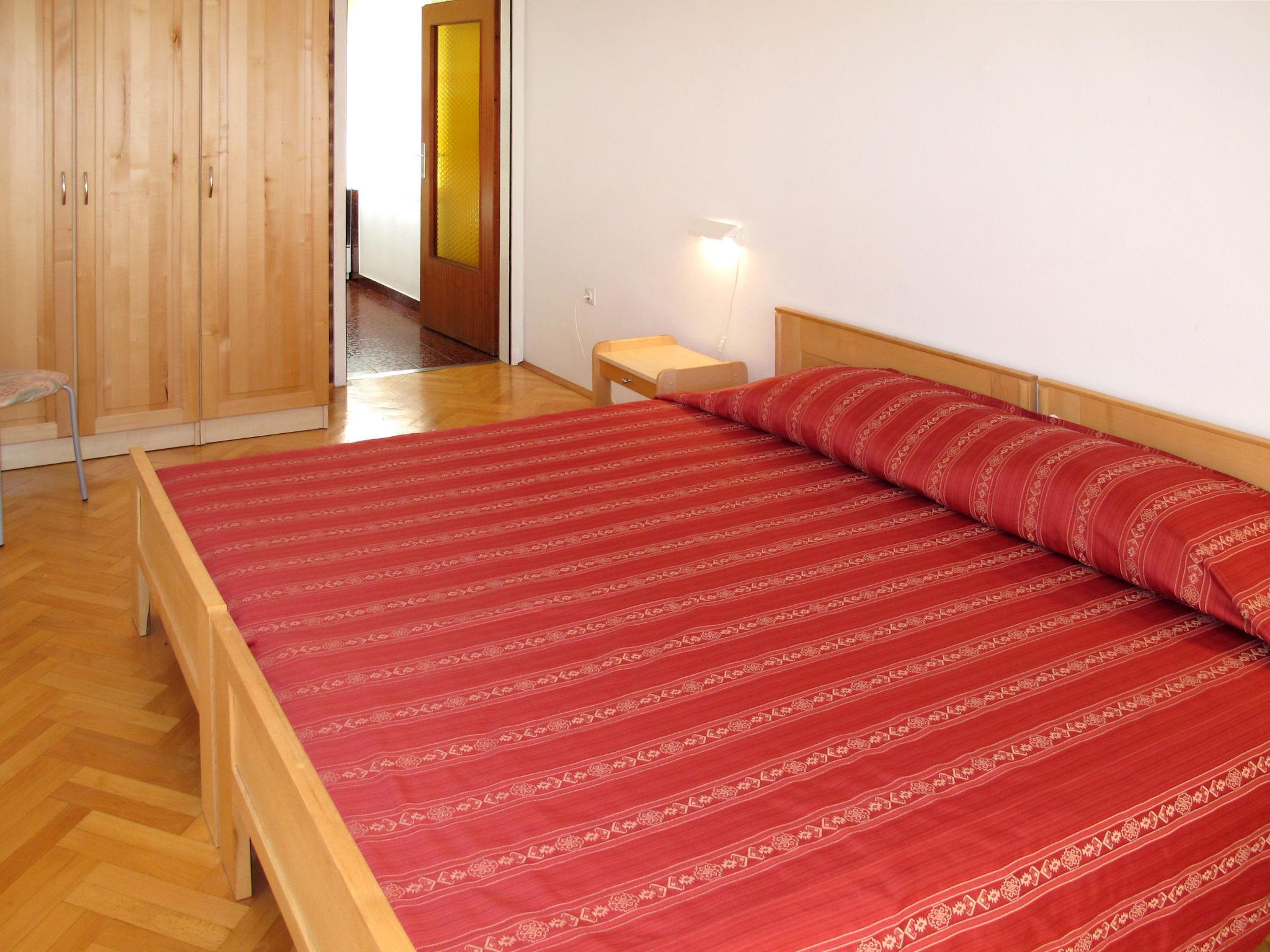 "Renata", 5-room apartment 100 m2, on the upper ground floor. Living room with satellite TV. Exit to the balcony. Entrance hall with air conditioning. 3 rooms, each room with 2 beds. Exit to the balcony. 1 room with 2 beds. Dining room. Open kitchen (1 hot plate, oven, dishwasher, 3 gas rings, toaster, kettle, microwave, freezer, electric coffee machine). Shower/WC, shower/bidet/WC. Air-conditioning (extra). No heating option. 2 balconies 9 m2, terrace 15 m2. Terrace furniture, balcony furniture. Facilities: washing machine, iron. Internet (WiFi, free). Please note: non-smoking house.