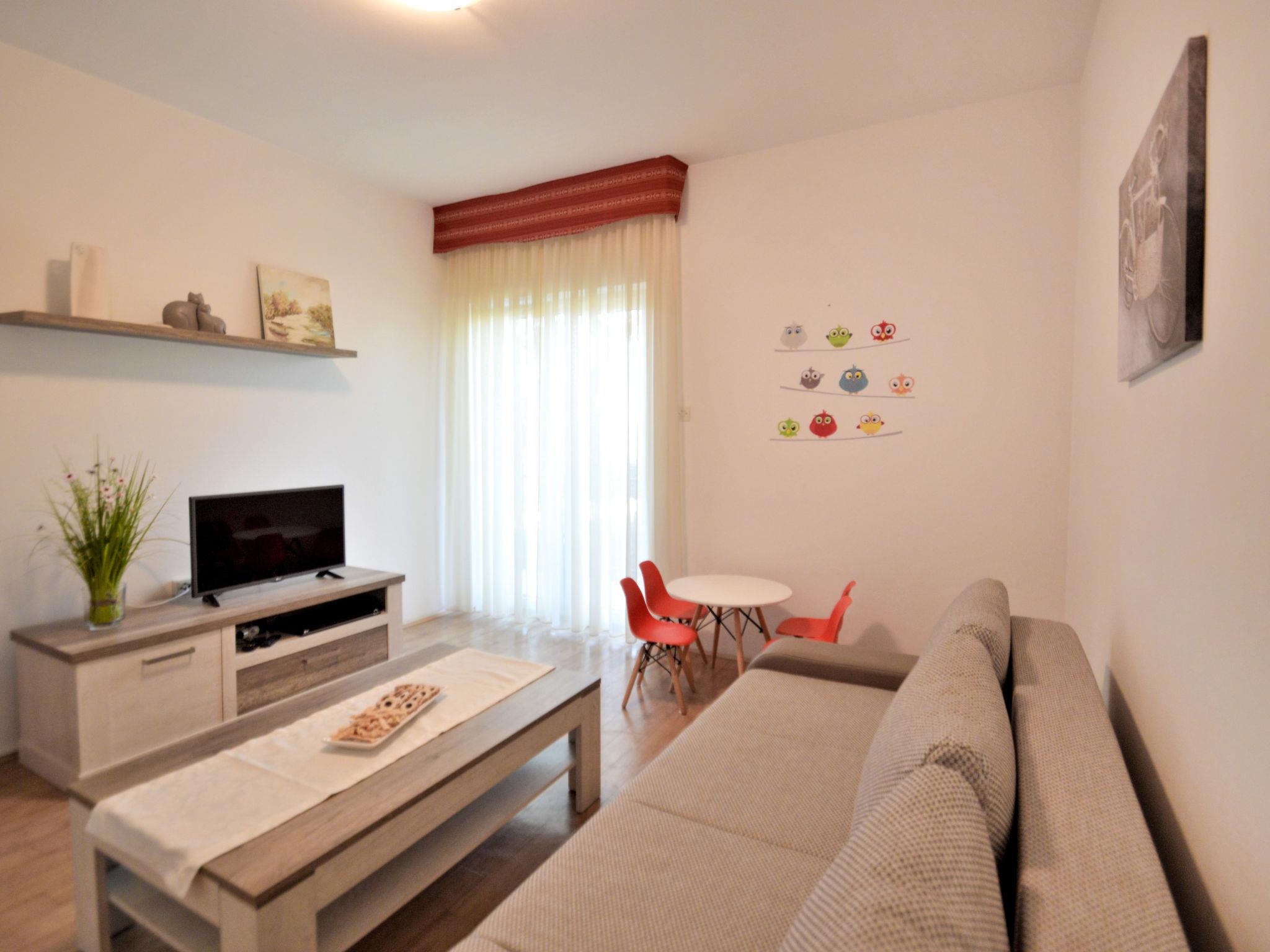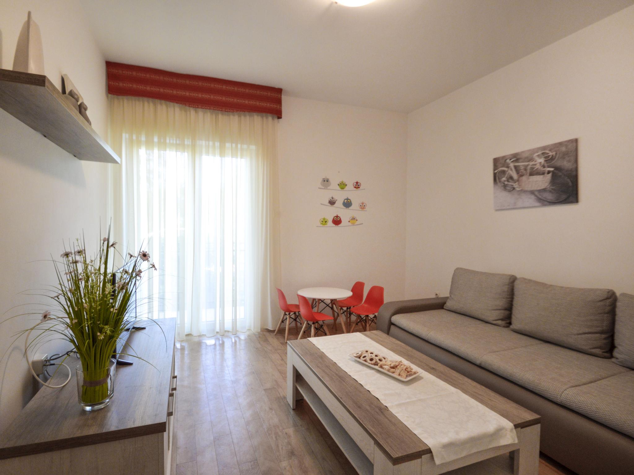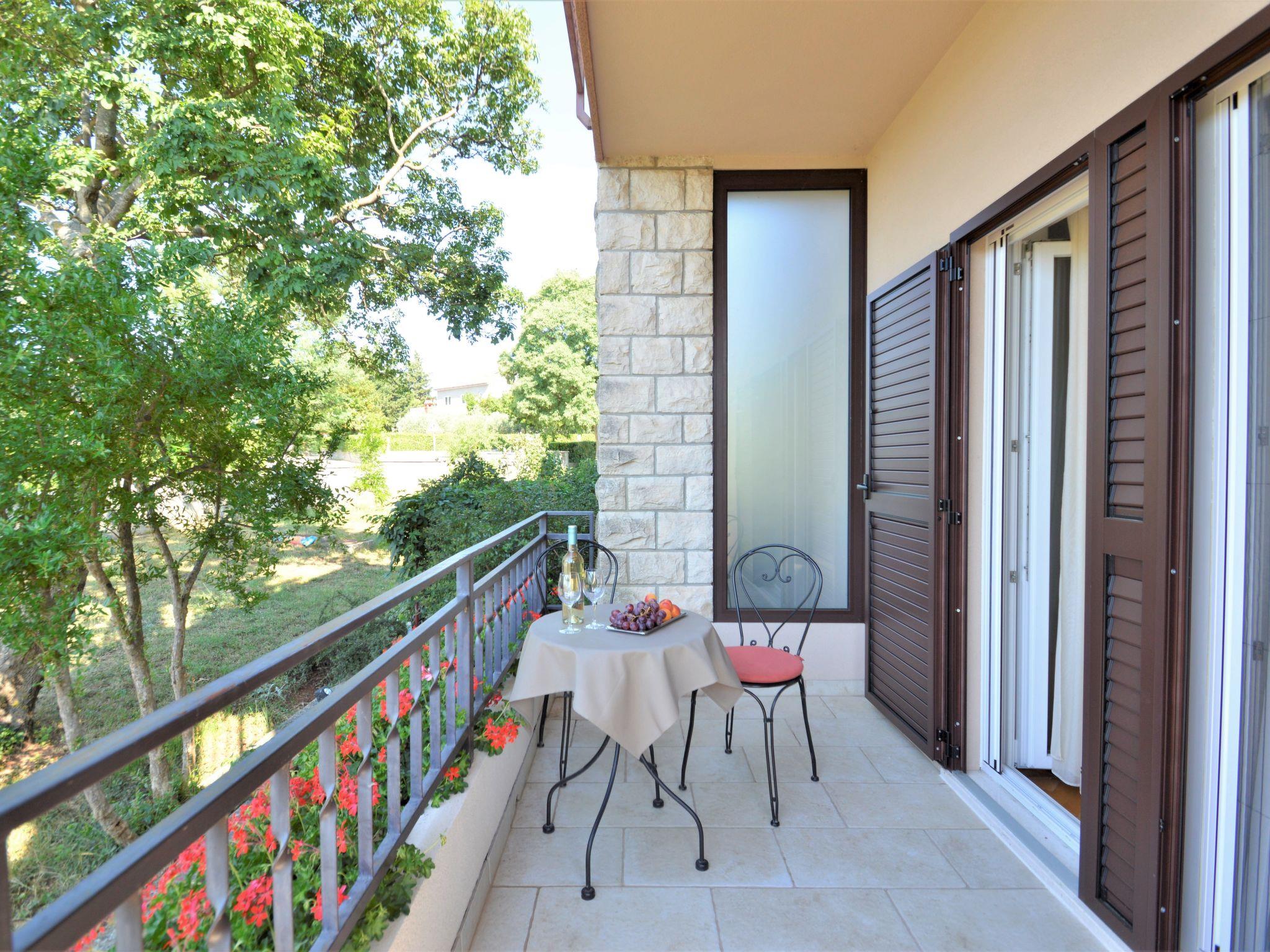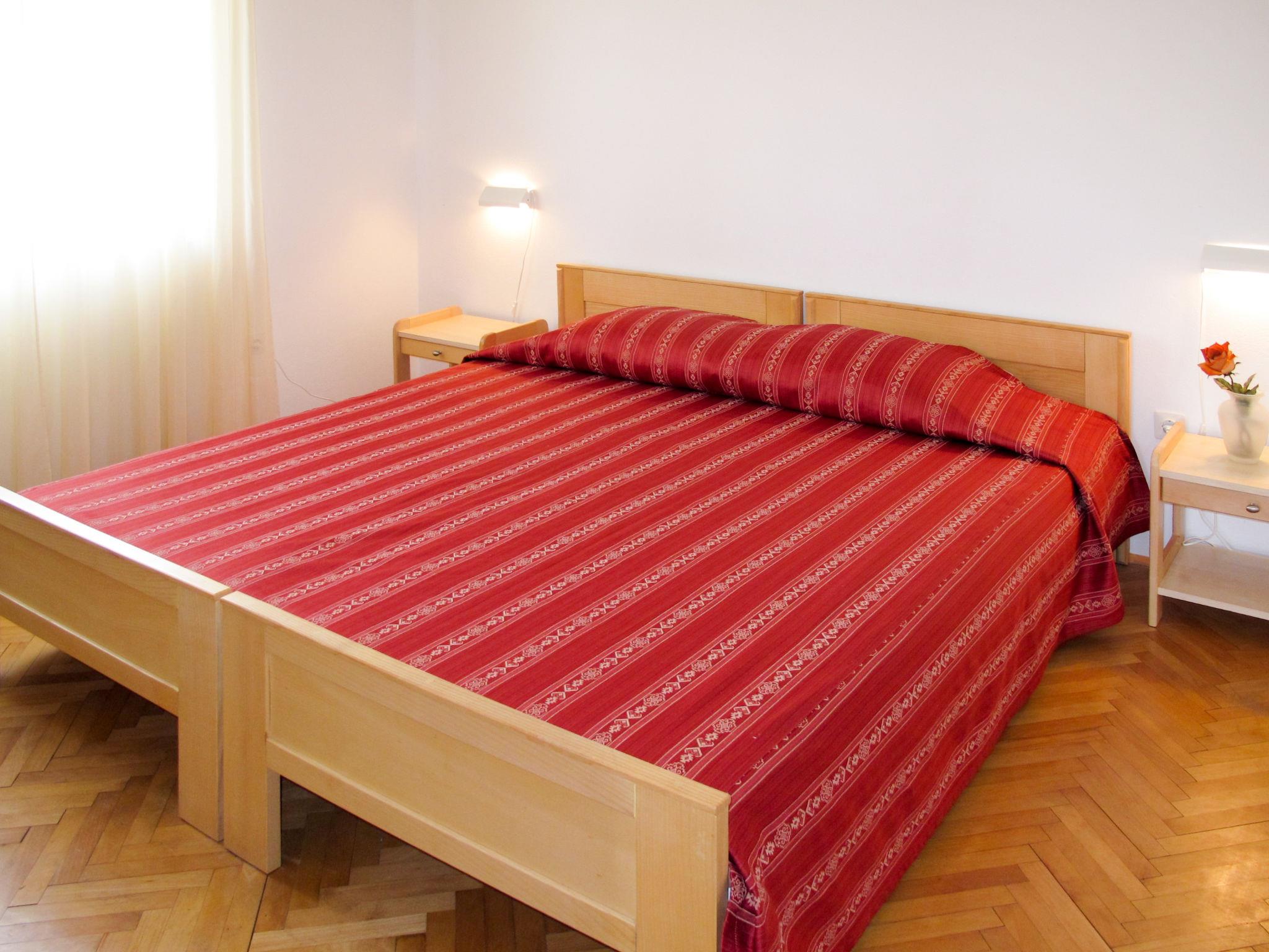 "Renata", 5-room apartment 100 m2, on the upper ground floor. Living room with satellite TV. Exit to the balcony. Entrance hall with air conditioning. 3 rooms, each room with 2 beds. Exit to the balcony. 1 room with 2 beds. Dining room. Open kitchen (1 hot plate, oven, dishwasher, 3 gas rings, toaster, kettle, microwave, freezer, electric coffee machine). Shower/WC, shower/bidet/WC. Air-conditioning (extra). No heating option. 2 balconies 9 m2, terrace 15 m2. Terrace furniture, balcony furniture. Facilities: washing machine, iron. Internet (WiFi, free). Please note: non-smoking house.