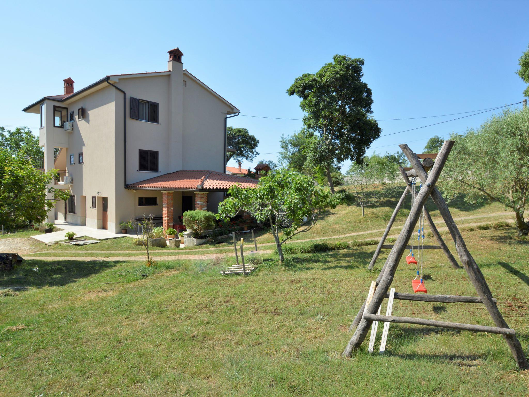 Krnica 22 km from Pula: 2-family house "Renata". 500 m from the centre of Krnica, 8 km from the centre of Marcana, 2.5 km from the sea, 2.5 km from the beach. For shared use: property 2'500 m2 (fenced) with plants and trees. (swing). Private: terrace (40 m2), garden furniture, barbecue. In the house: internet access. Parking on the premises. Shop, restaurant 500 m, bus stop 5.3 km, pebble beach 2.5 km. Marina 24 km.