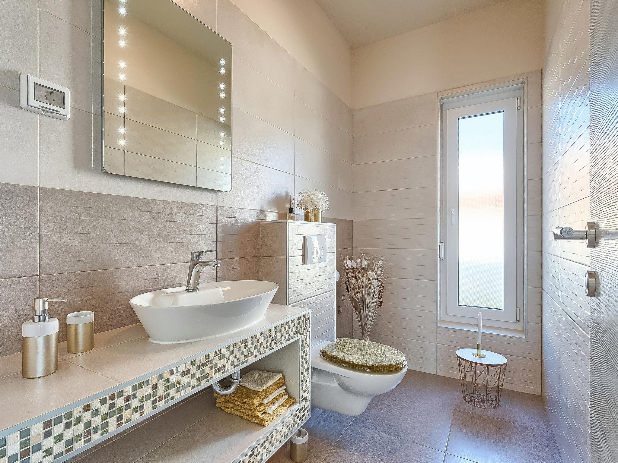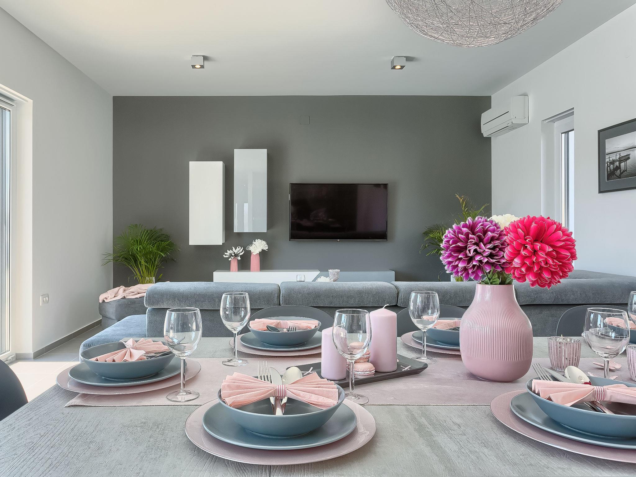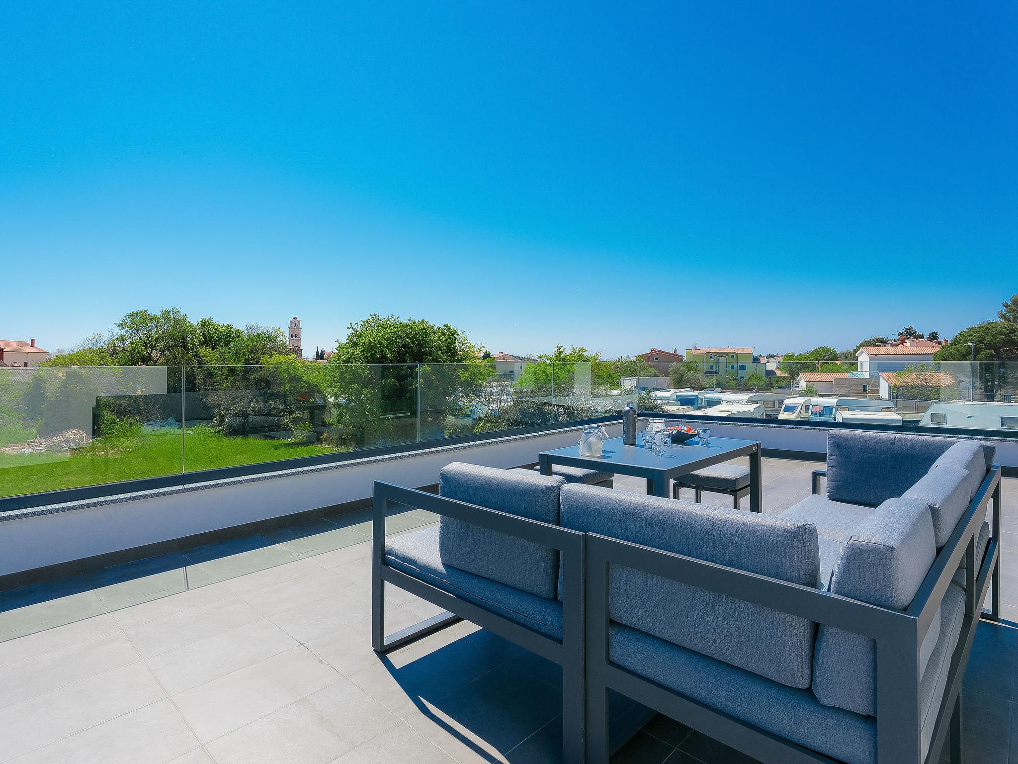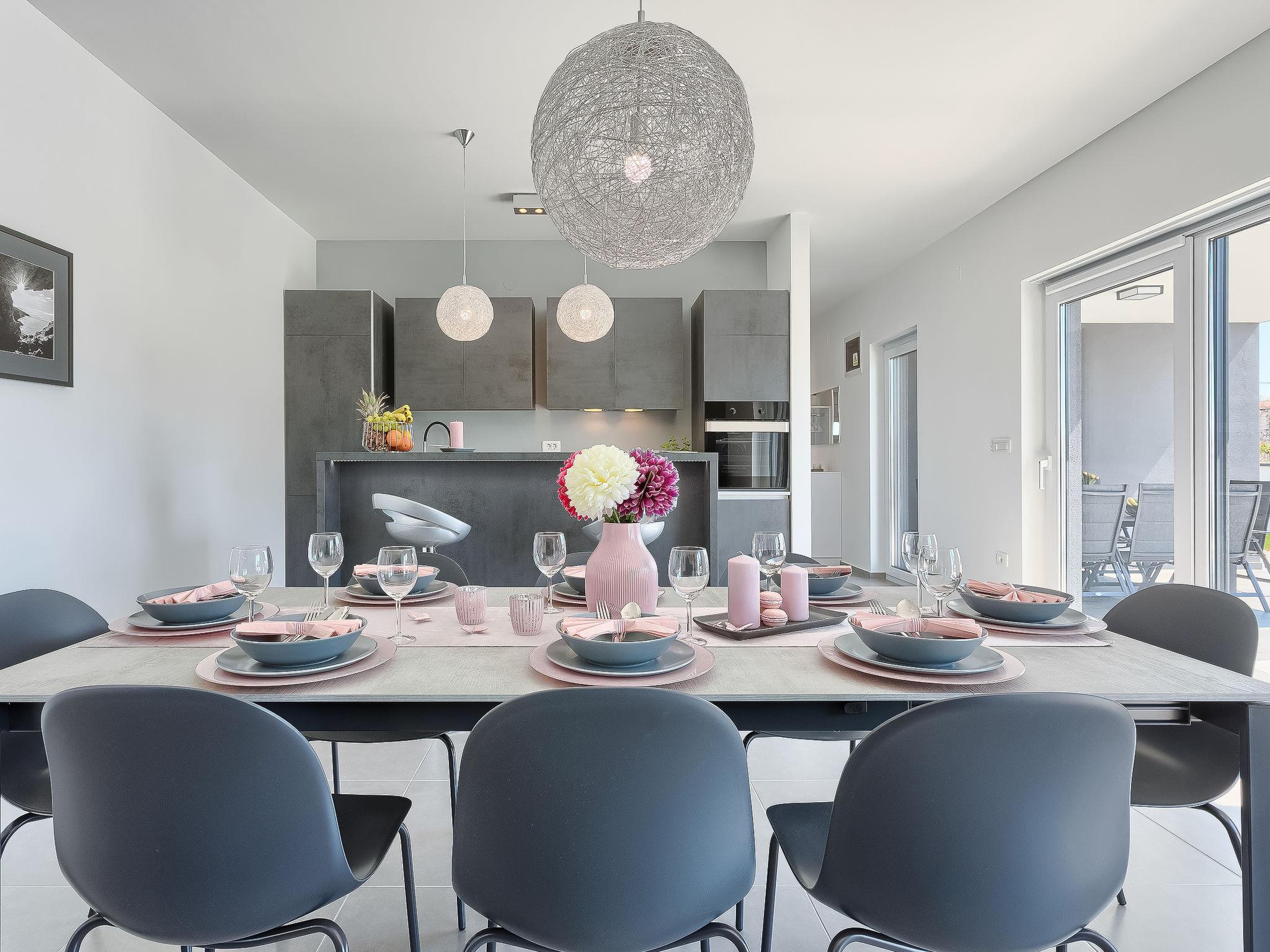 Premantura 11 km from Pula: Beautiful villa "Ella Premantura", 2 storeys, built in 2018. 250 m from the centre of Premantura, in a sunny position, 500 m from the sea, 500 m from the beach. Private: property 600 m2 (fenced), beautiful garden with lawn, swimming pool angular (8 x 4 m, depth 140 cm, seasonal availability: 04.Apr. - 10.Oct.) with internal staircase. Outdoor shower, barbecue. In the house: internet access, washing machine. Parking (for 2 cars) at the house on the premises. Shop 250 m, supermarket 4.5 km, restaurant 50 m, bus stop 220 m, pebble beach 2.5 km, rocky beach 500 m. Surf school 2.5 km, tennis 750 m, riding stable 10 km, walking paths from the house 100 m, cycle lane 150 m. Nearby attractions: Nature park Kamenjak 650 m. Groups of teenagers on request only. Neighbourhood highly sensitive to noise. Quietness and good behaviour expected. Swimming pool with hydromassage.